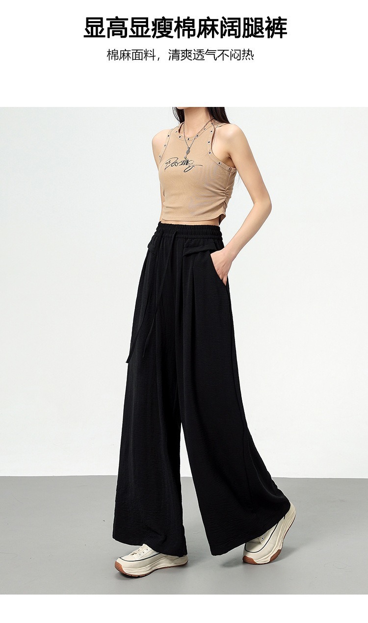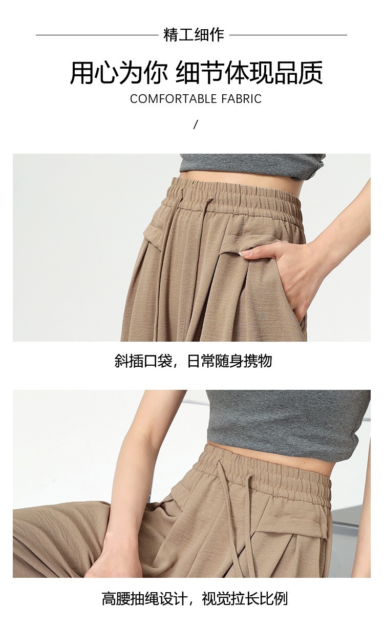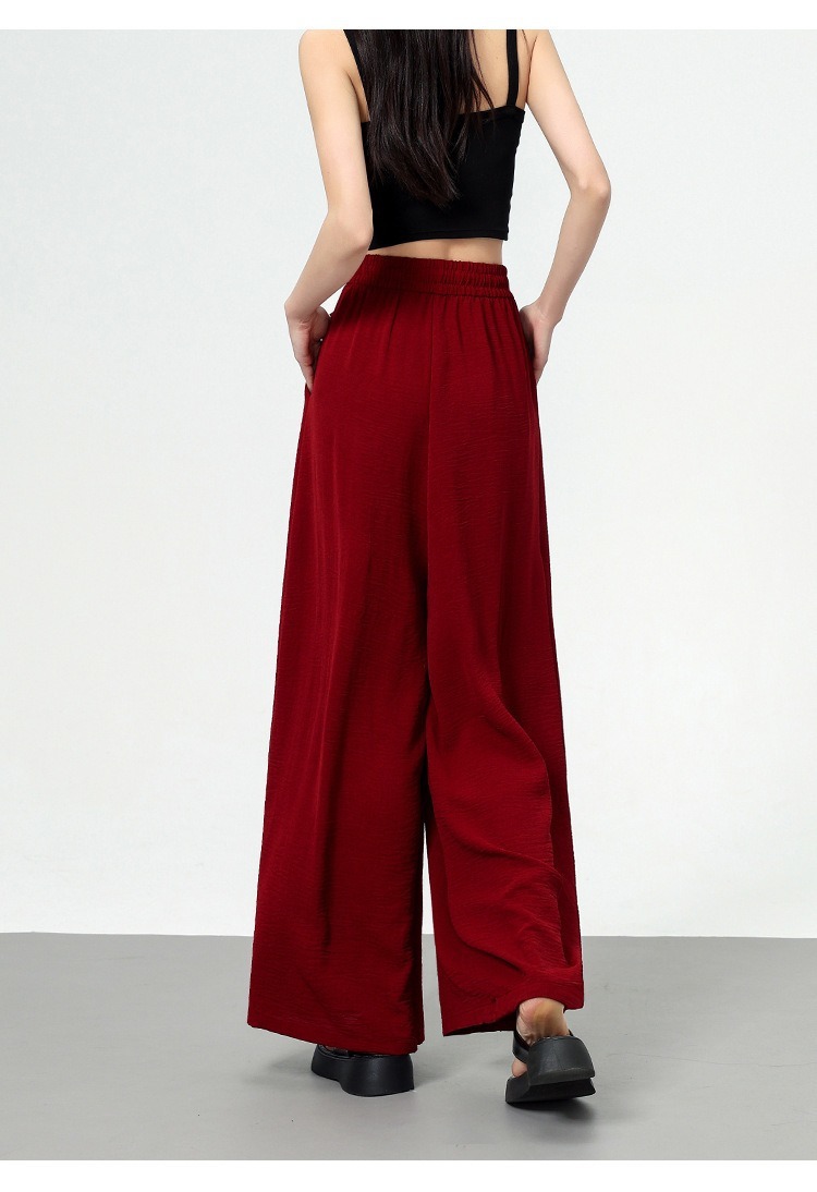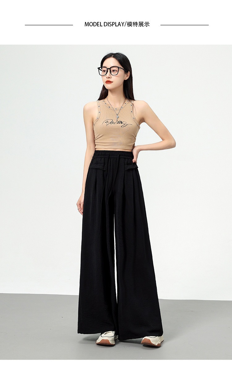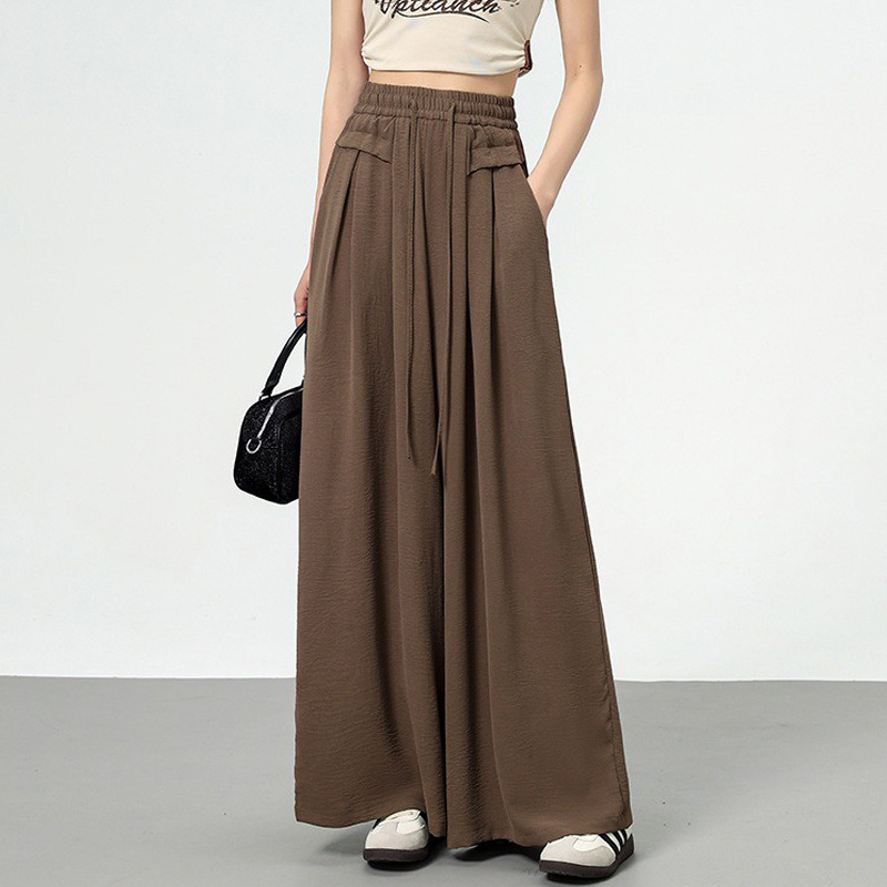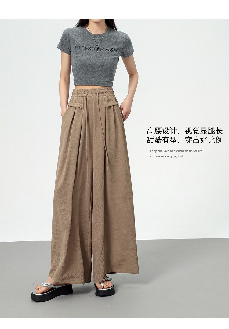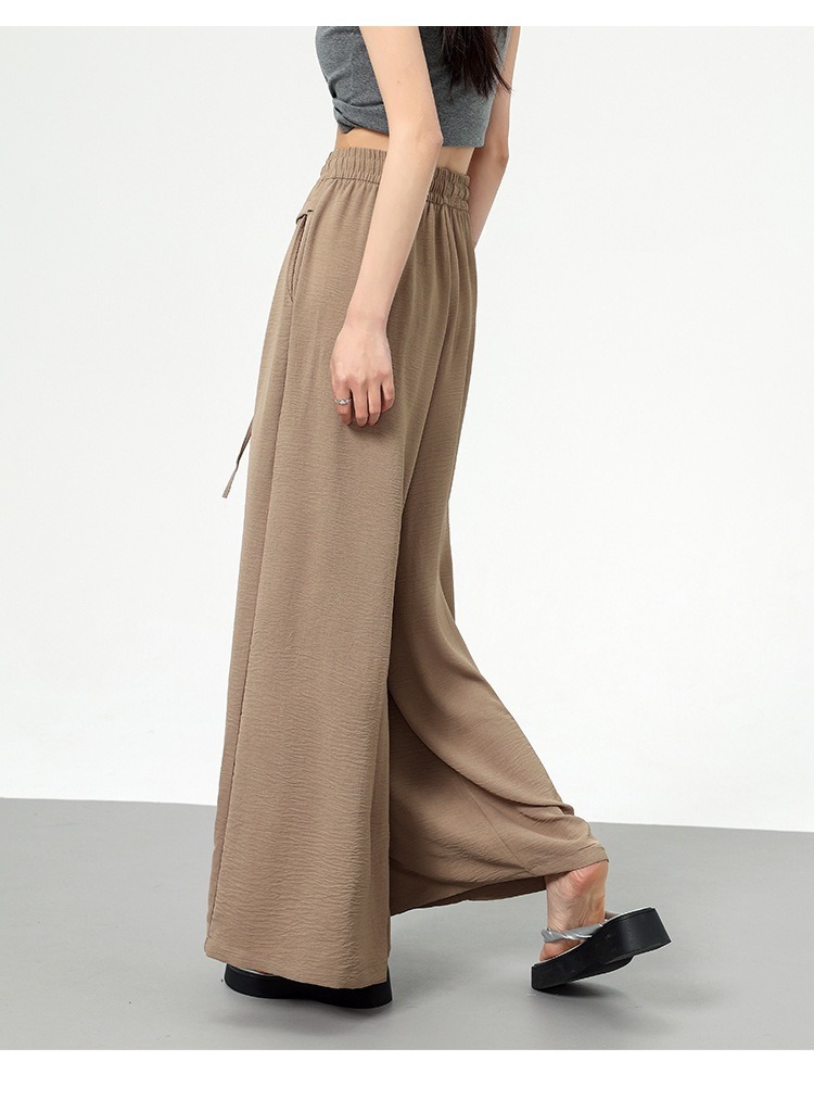 질감 넓은 다리 바지 여성용 높은 허리 여름 새로운 스트레이트 다리 느슨한 넓은 다리 바지 얇은 대형 스윙 캐주얼 슬림 룩 컬롯