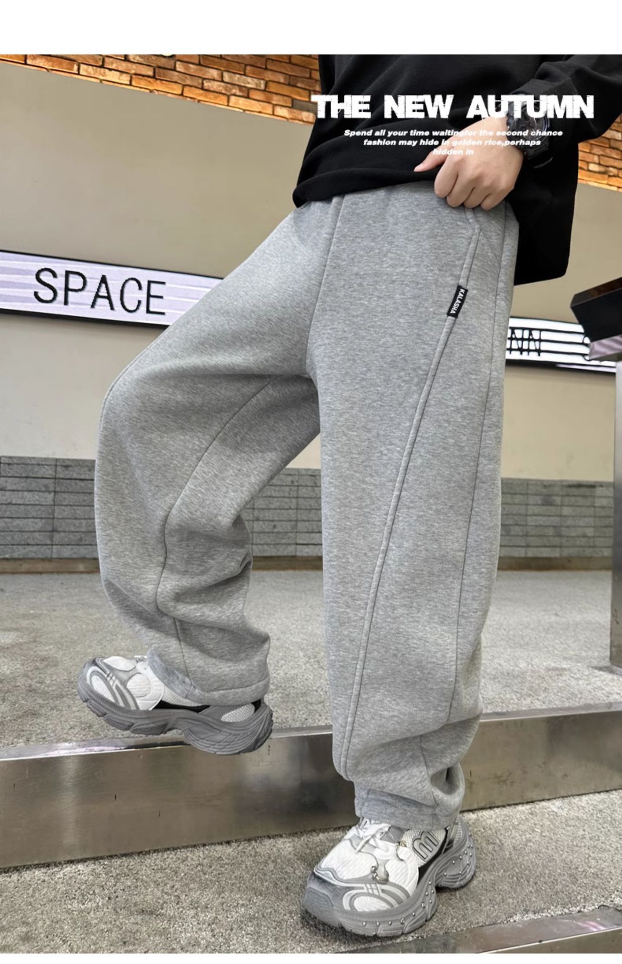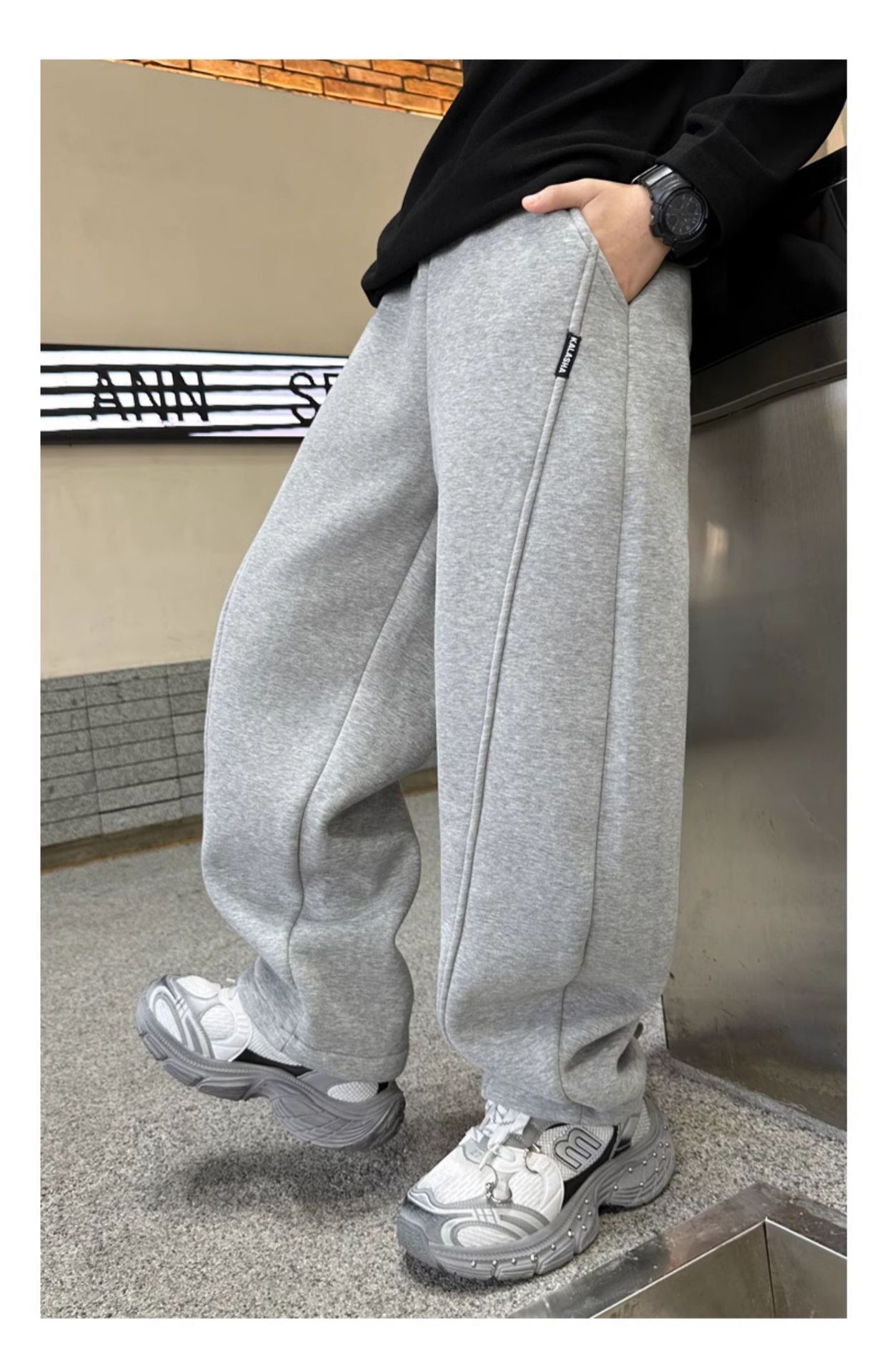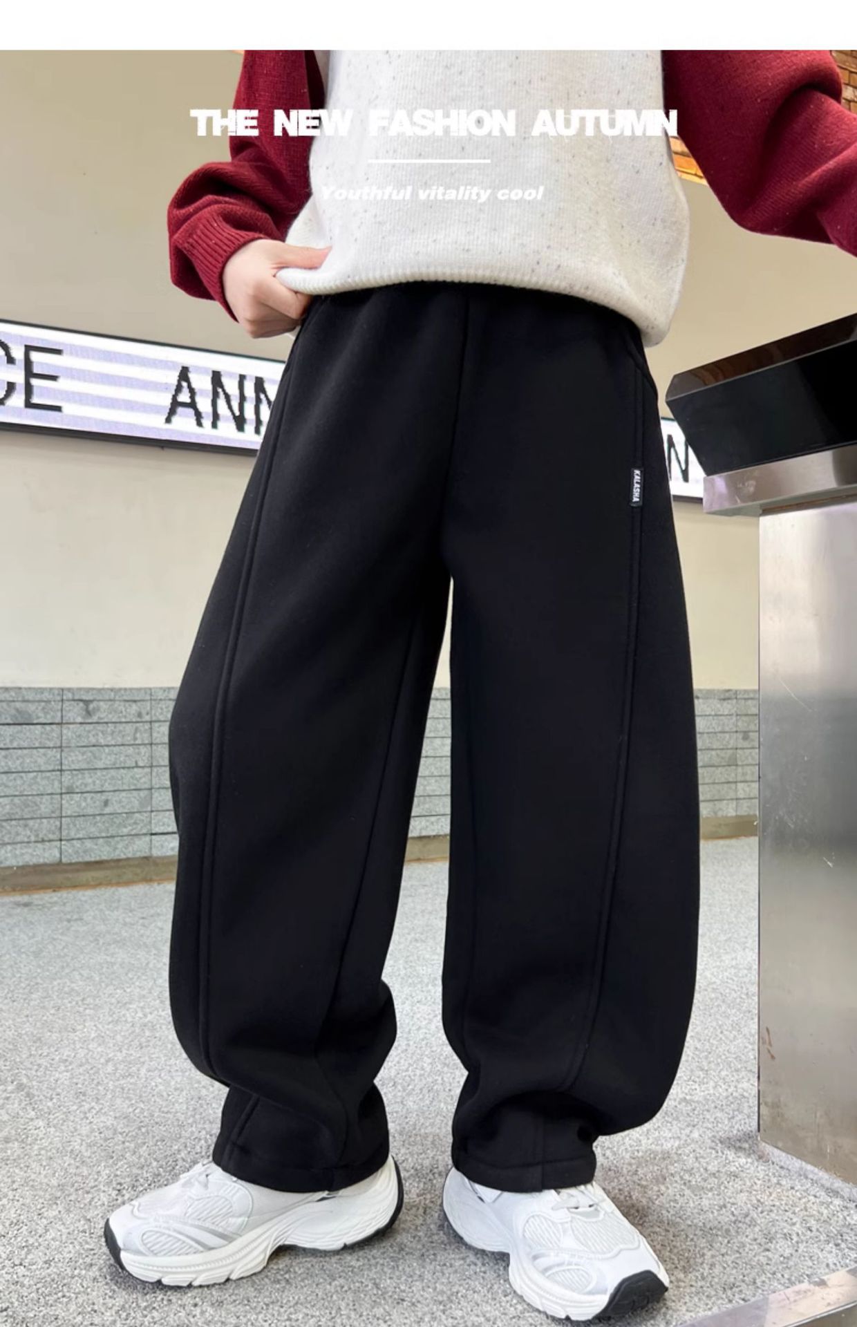 남학생의 겨울 기모 바지 한 조각 양털 2024 가을 겨울 새로운 어린이 스포츠 바지 큰 어린이 얇은 양털 운동복