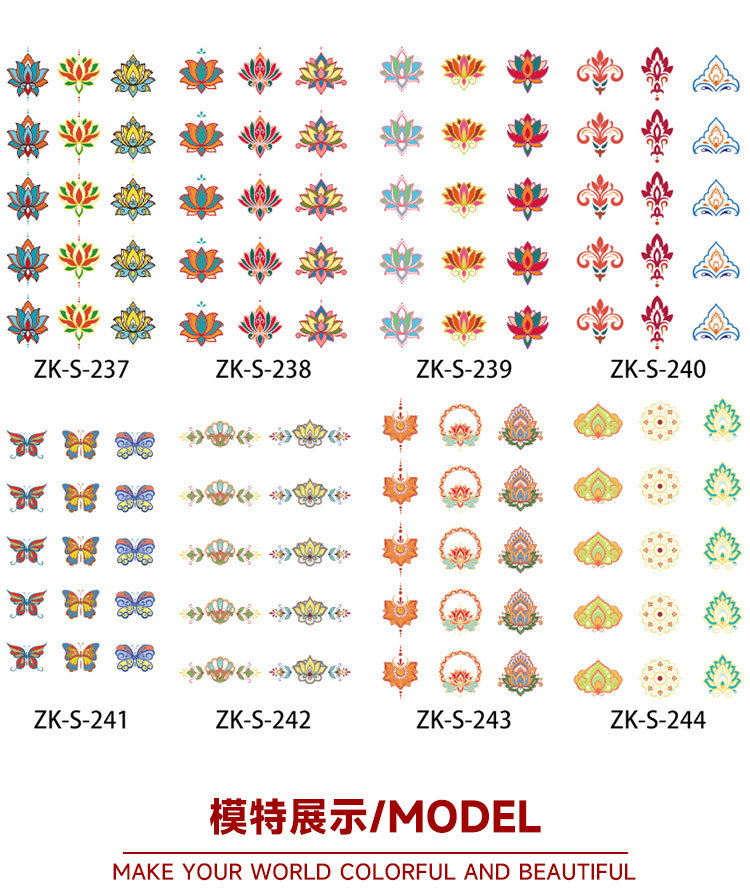 ✅둔황 눈썹 스티커 문신 스티커 고대 서양 스타일 소녀의 이마 인쇄 방수 땀 임시 문신 스티커