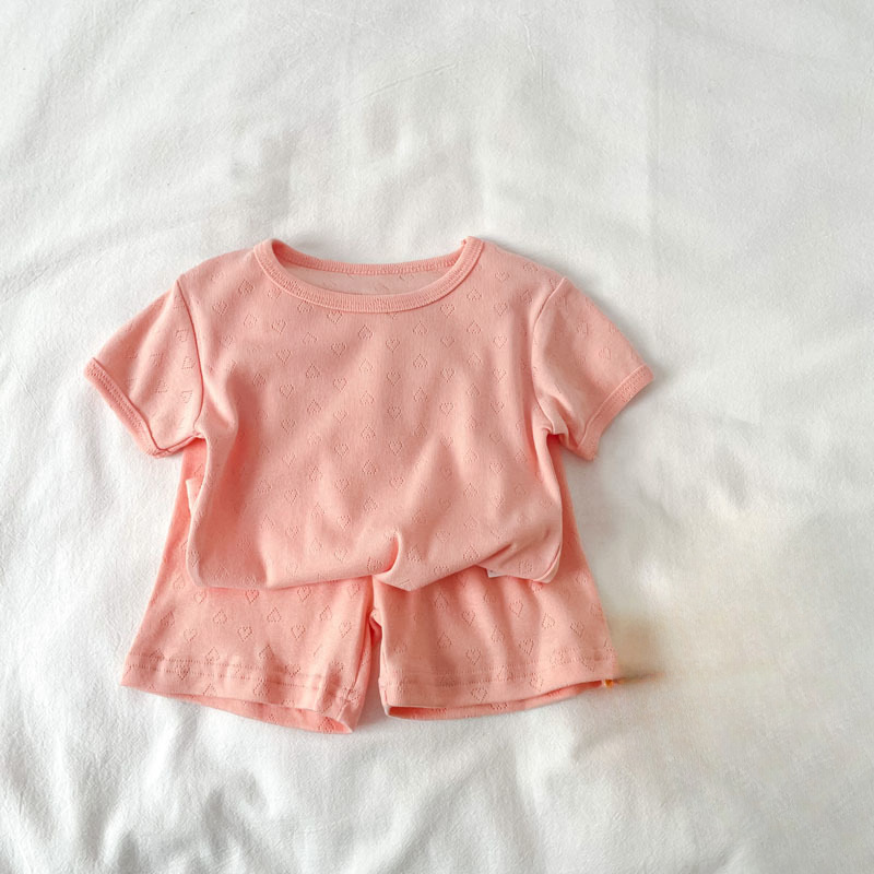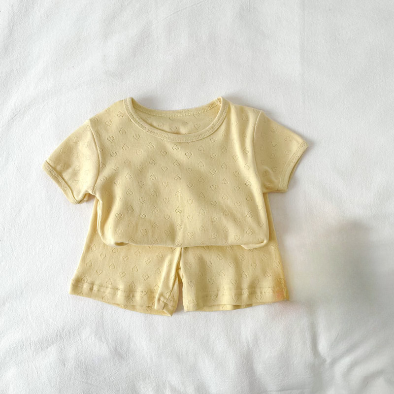어린이 홈 잠옷 여름 소녀 얇은 반팔 반바지 호흡 면 세트 통기성 홈 에어컨