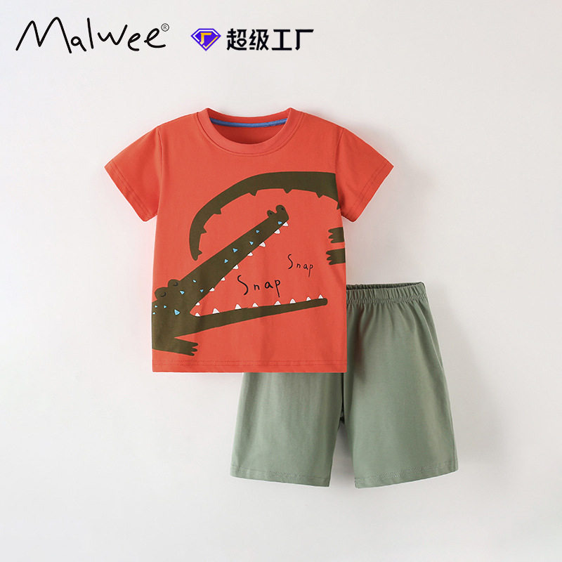 여름 새로운 유럽과 미국 어린이 반팔 티셔츠 외국 스타일의 투피스 세트 세트 말위 소년을위한 국경 전용스토어 가기
