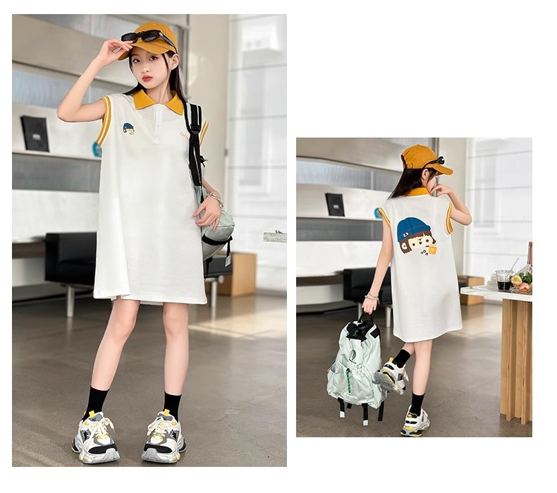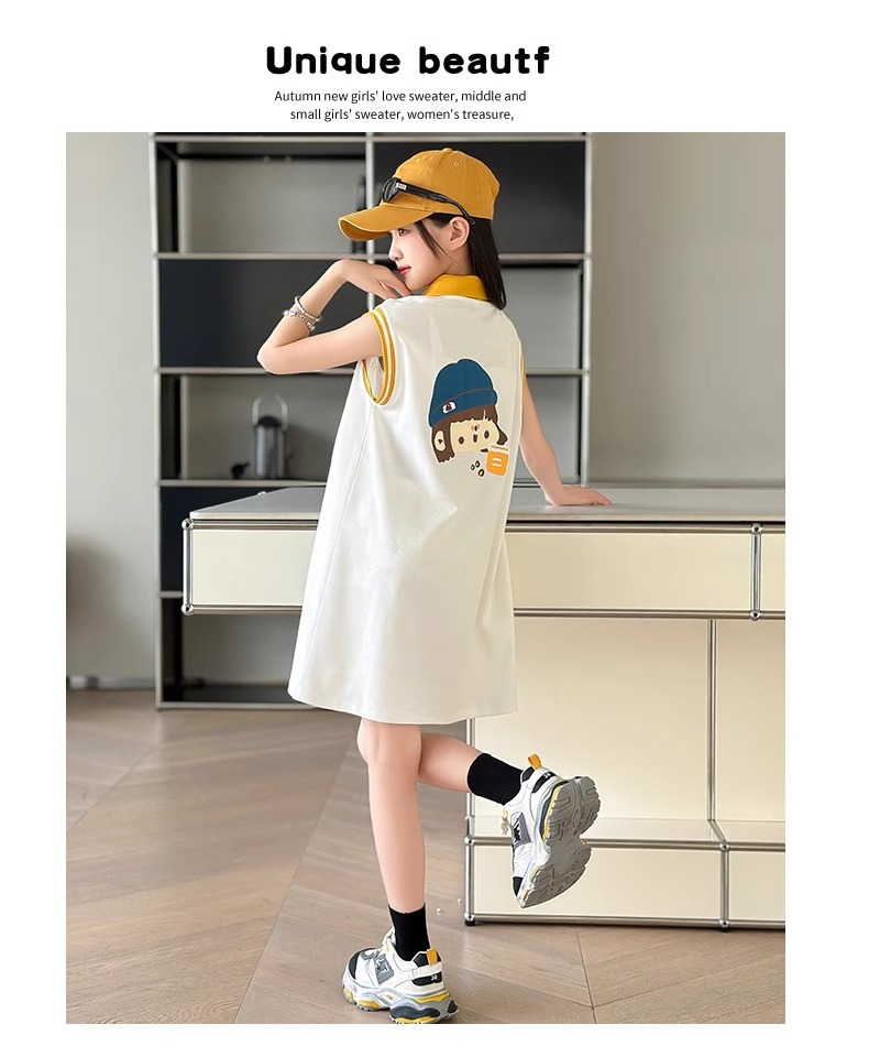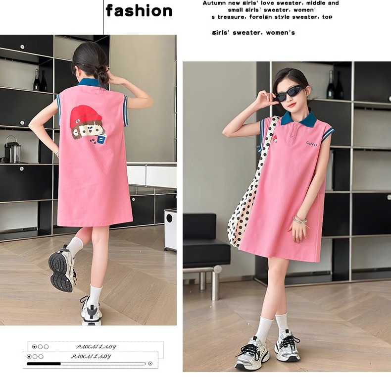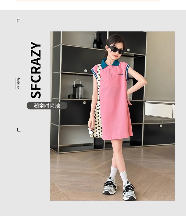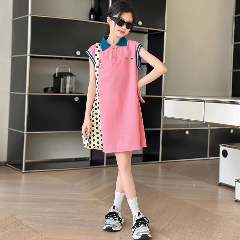 소녀들의 여름 2025 년 새 중 · 대형 아동복 반팔 티셔츠 스커트 어린이 소녀 사이버 연예인 거리 톱 원피스