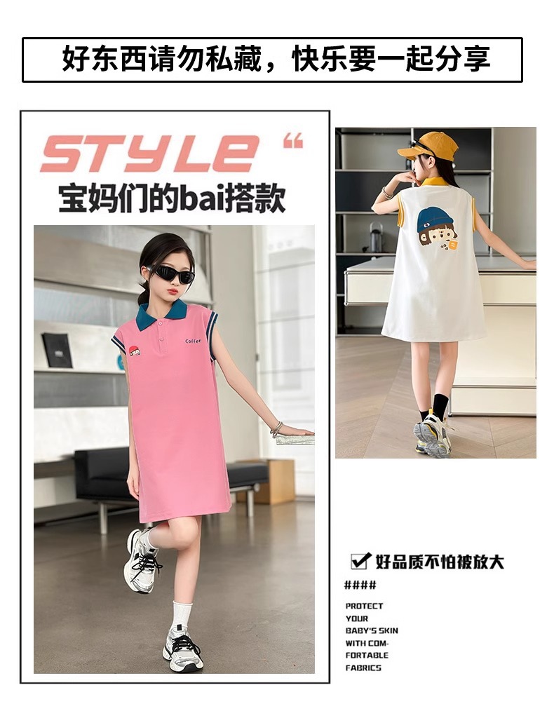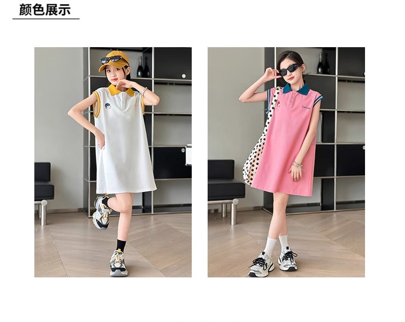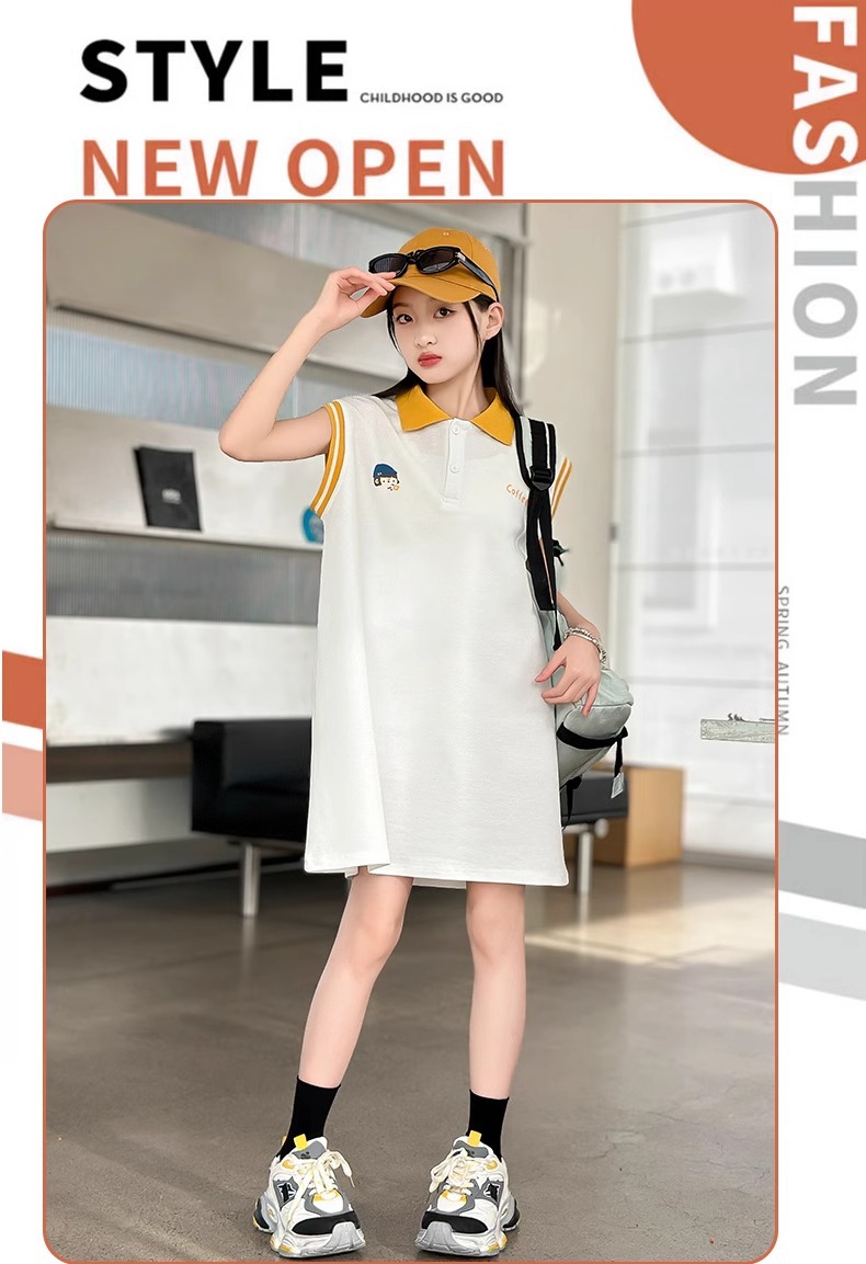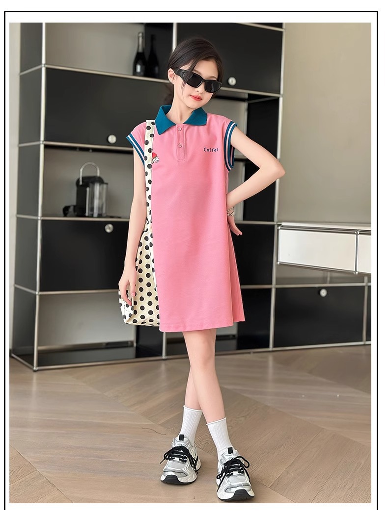 소녀들의 여름 2025 년 새 중 · 대형 아동복 반팔 티셔츠 스커트 어린이 소녀 사이버 연예인 거리 톱 원피스