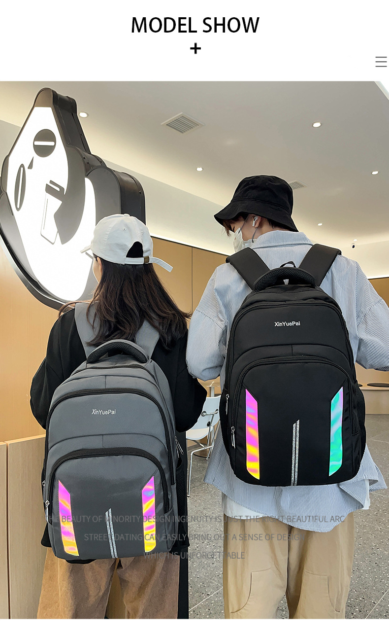새로운 유행 캐주얼 대용량 중학교 고등학교 고등학교 대학생 컴퓨터 배낭 반사 스트립 남녀 여행 배낭스토어 가기