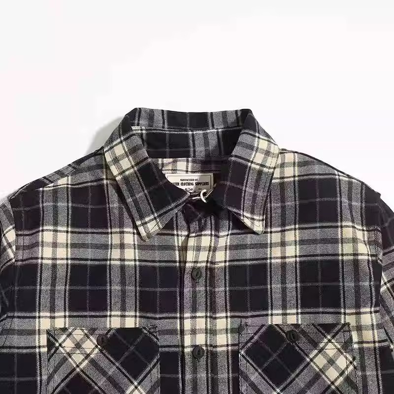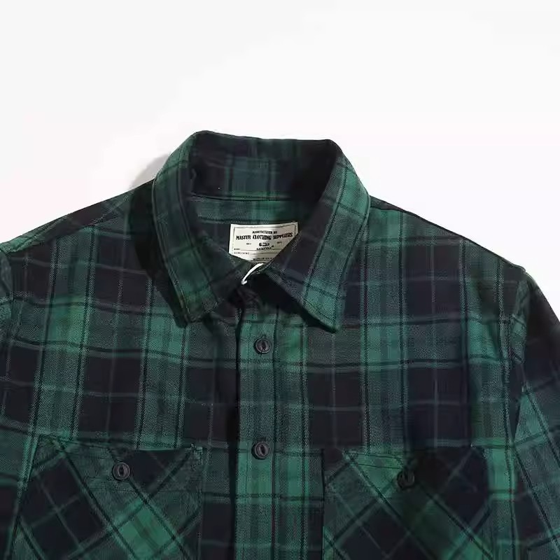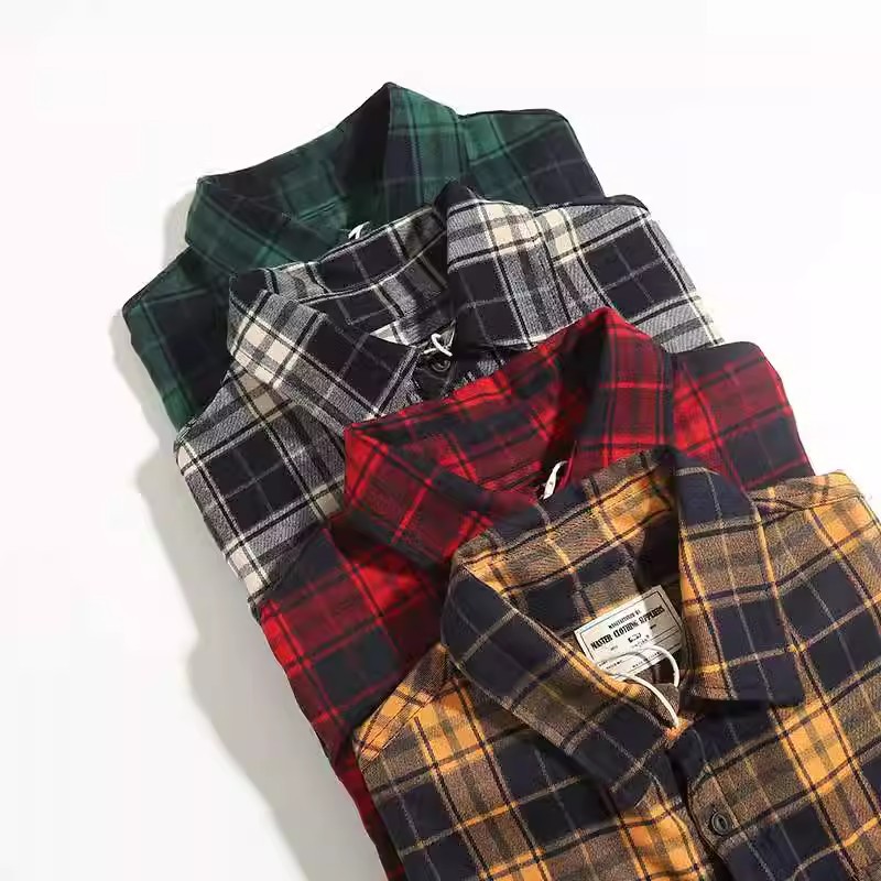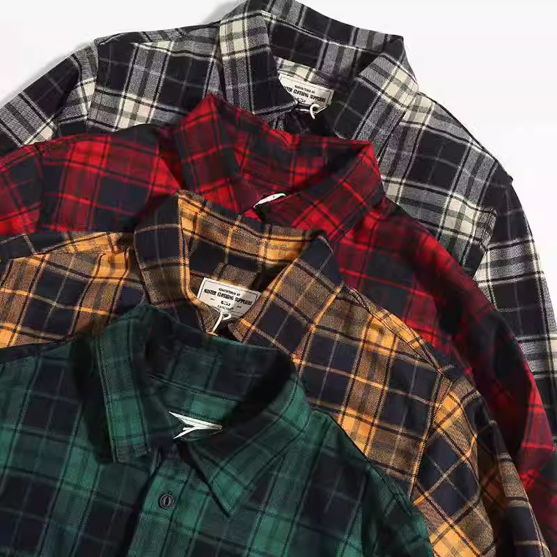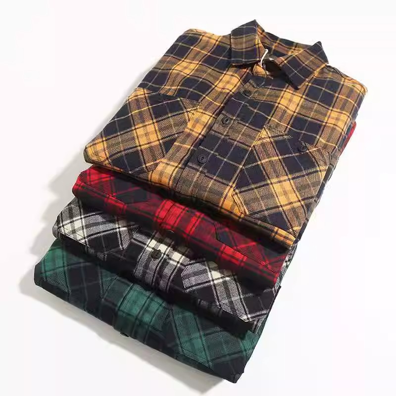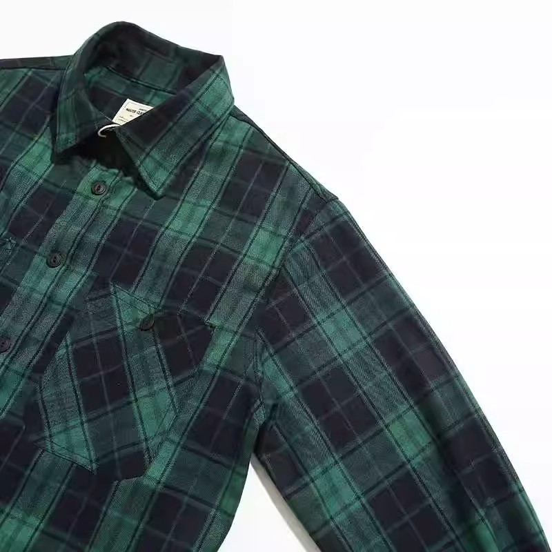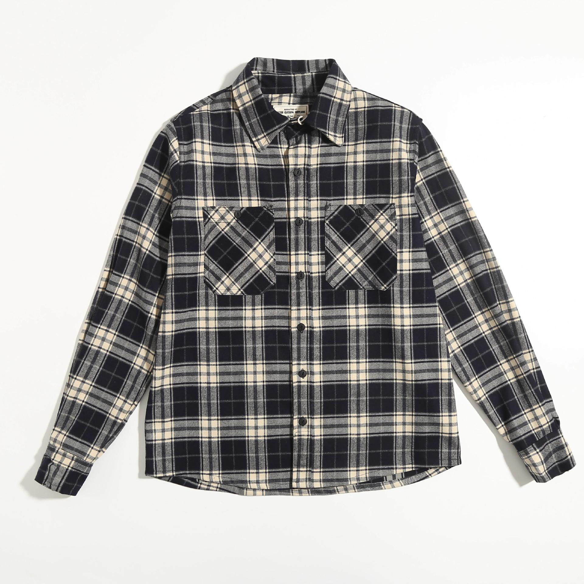 무거운 300g 미국 복고풍 격자 무늬 셔츠 유행 Ami Kaji 두꺼운 더블 포켓 작업복 긴 소매 셔츠 남자스토어 가기