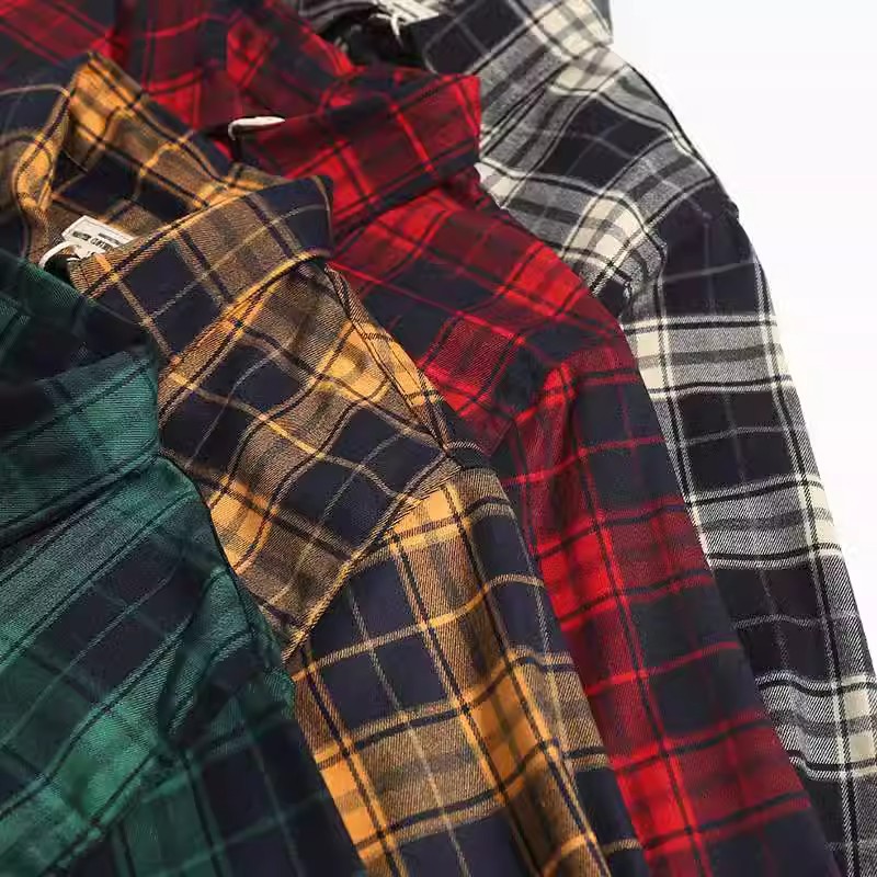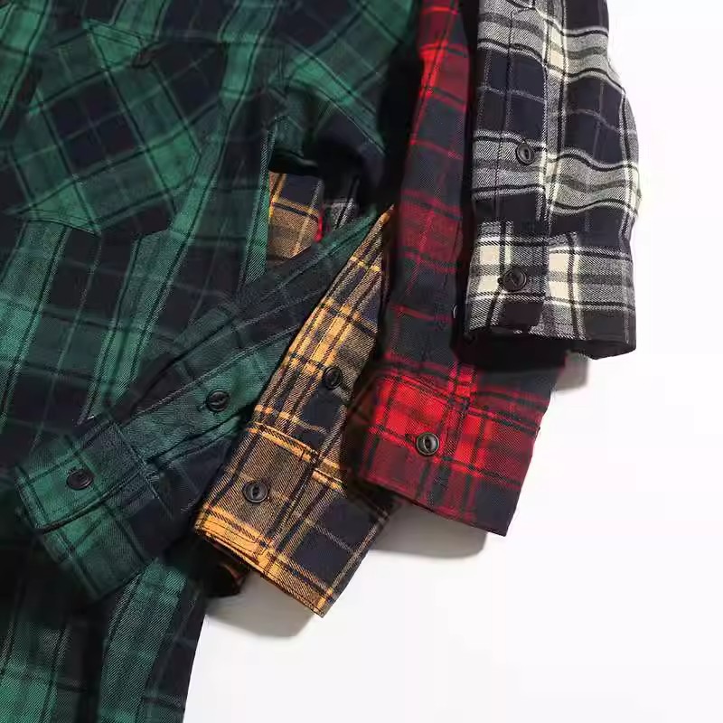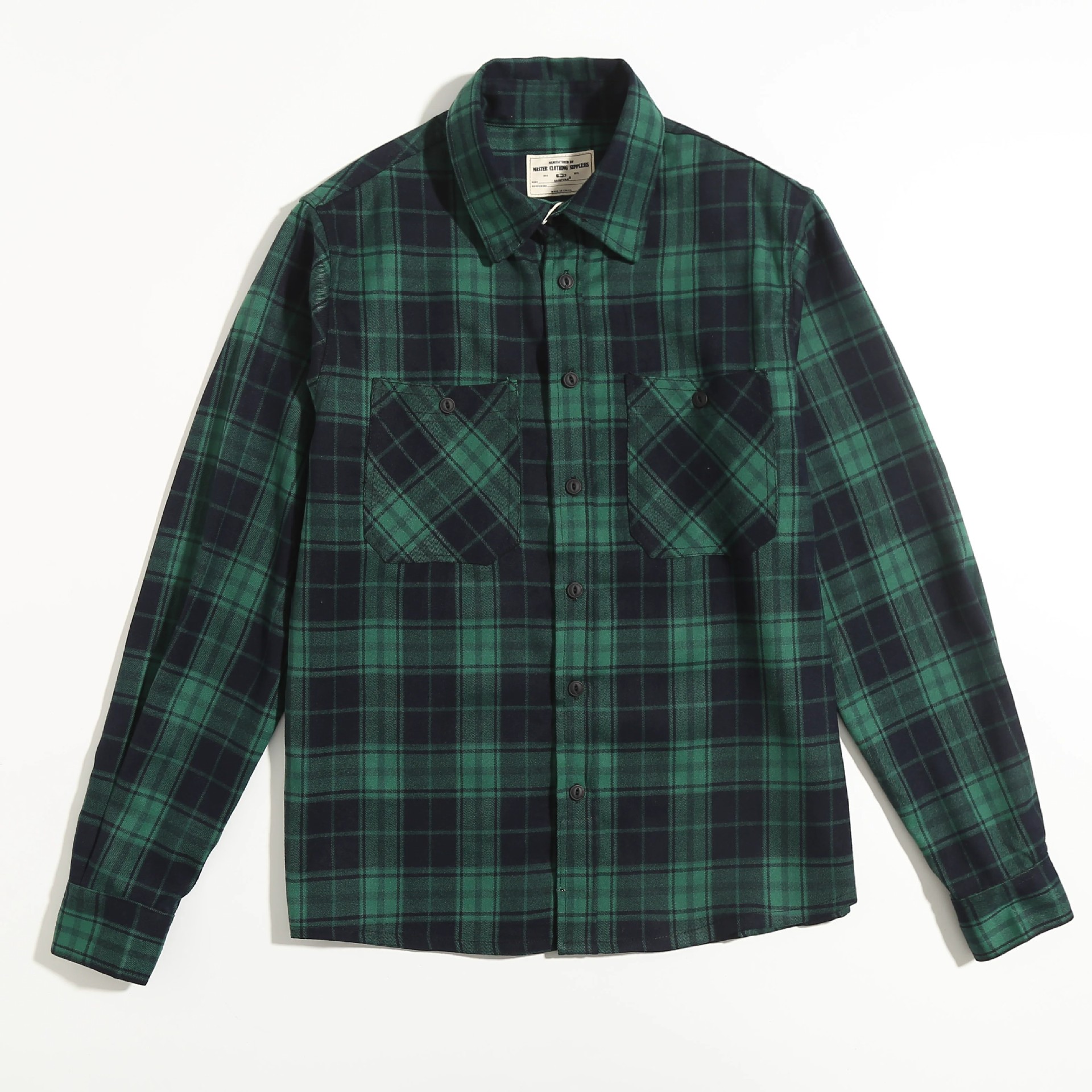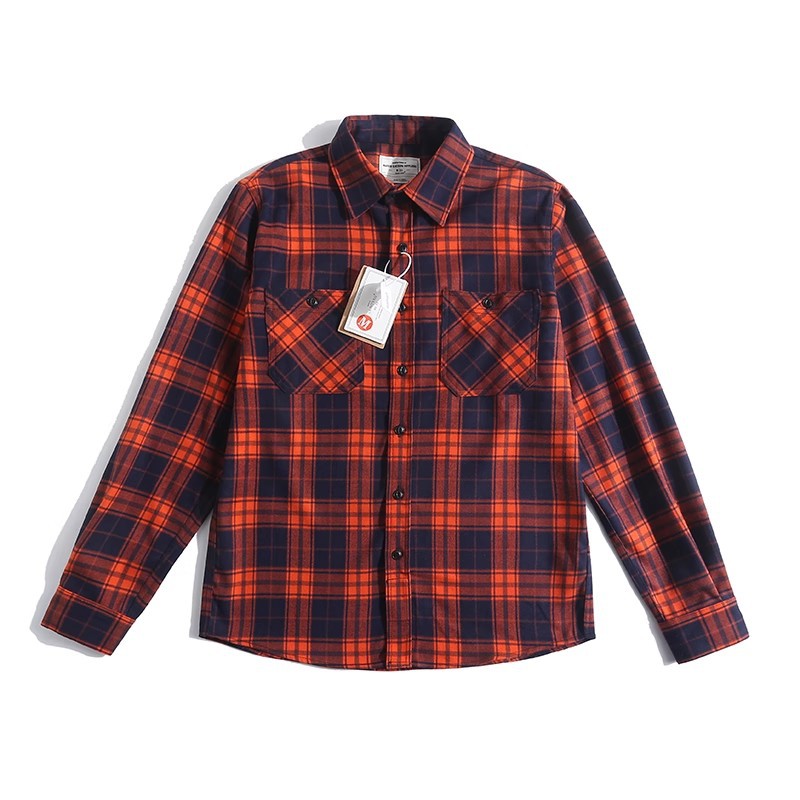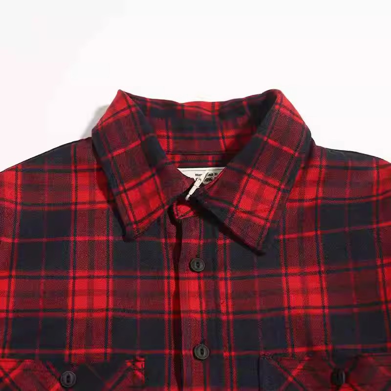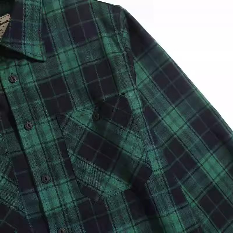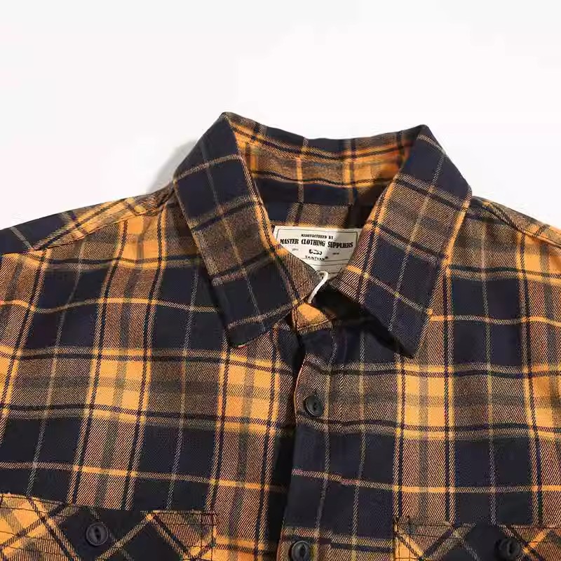 무거운 300g 미국 복고풍 격자 무늬 셔츠 유행 Ami Kaji 두꺼운 더블 포켓 작업복 긴 소매 셔츠 남자스토어 가기