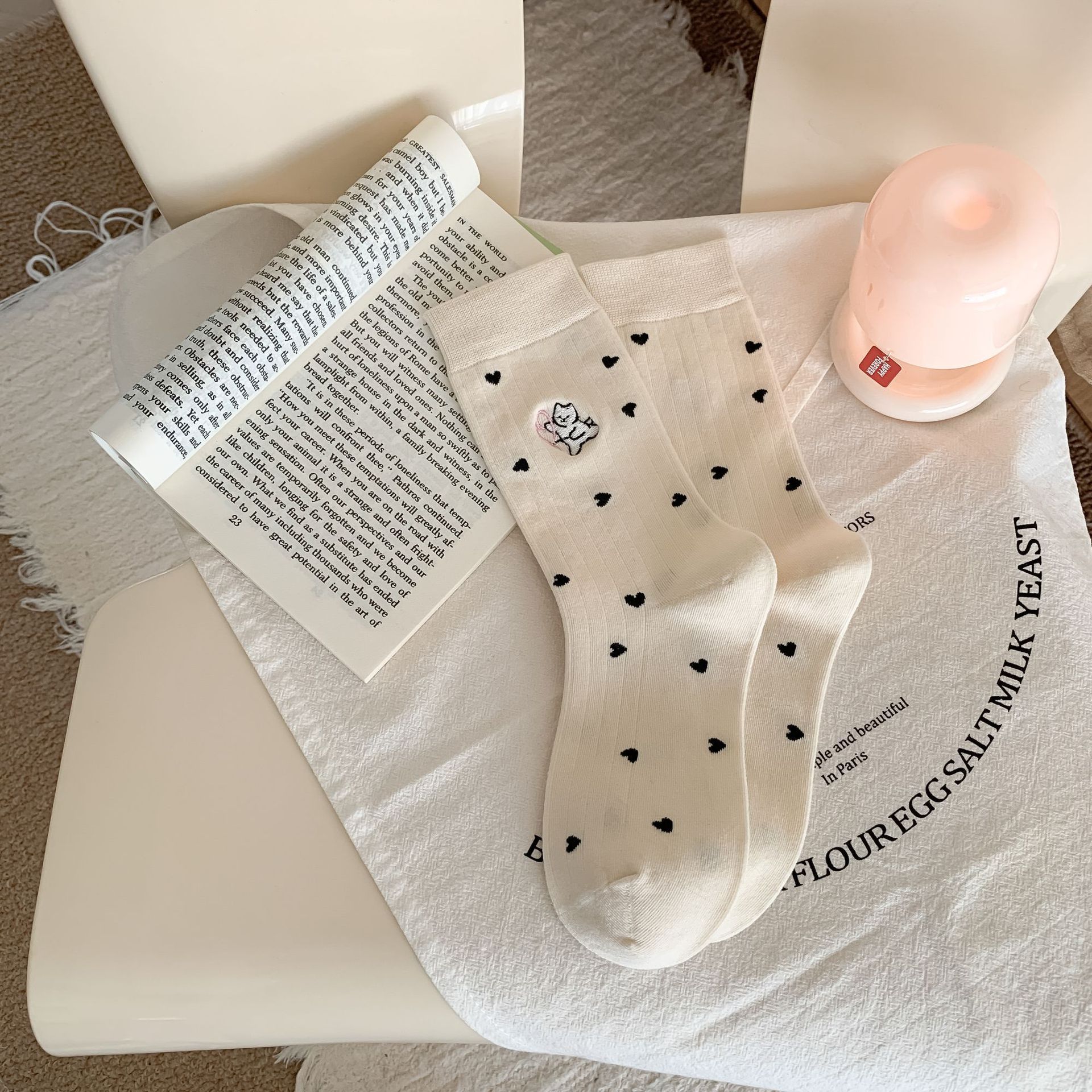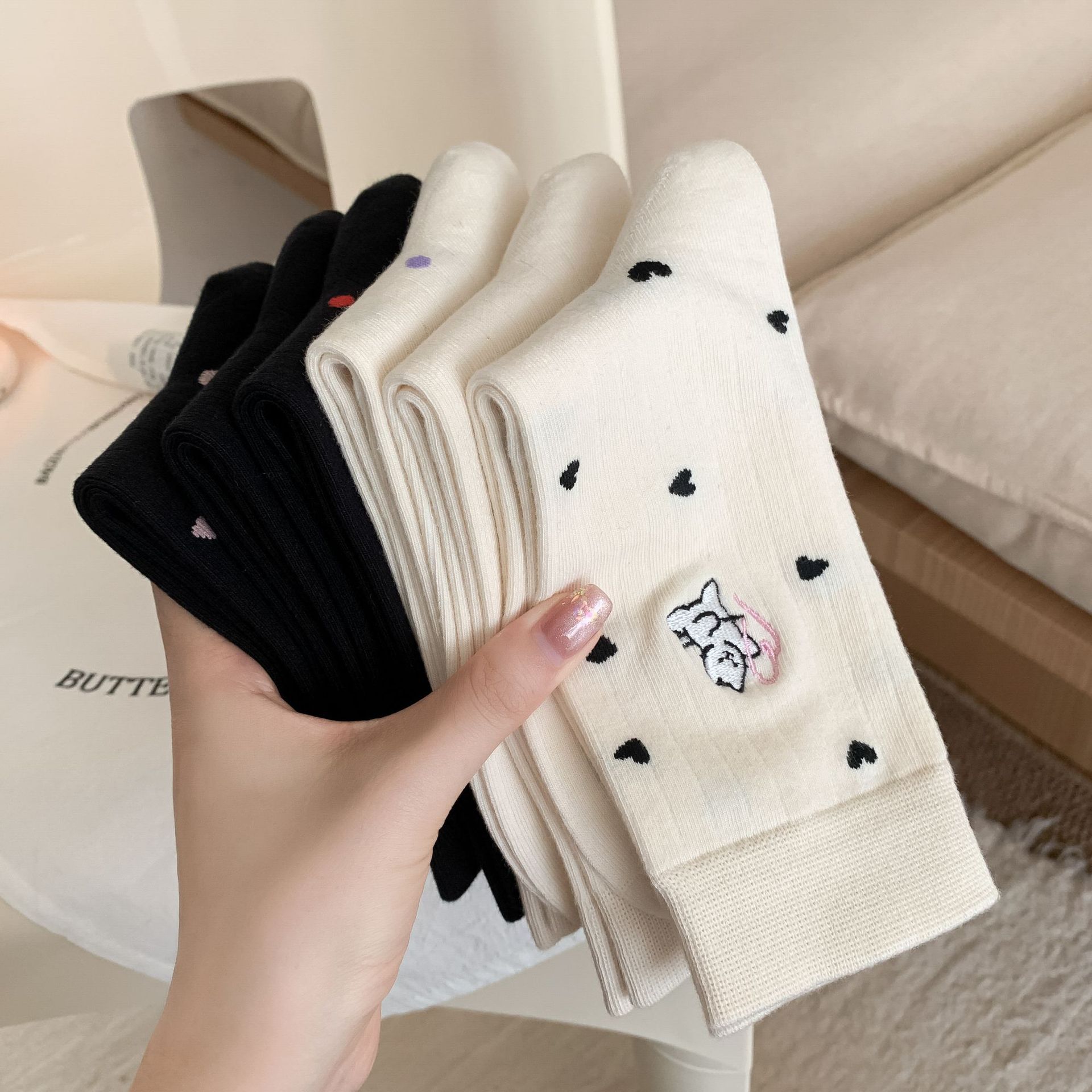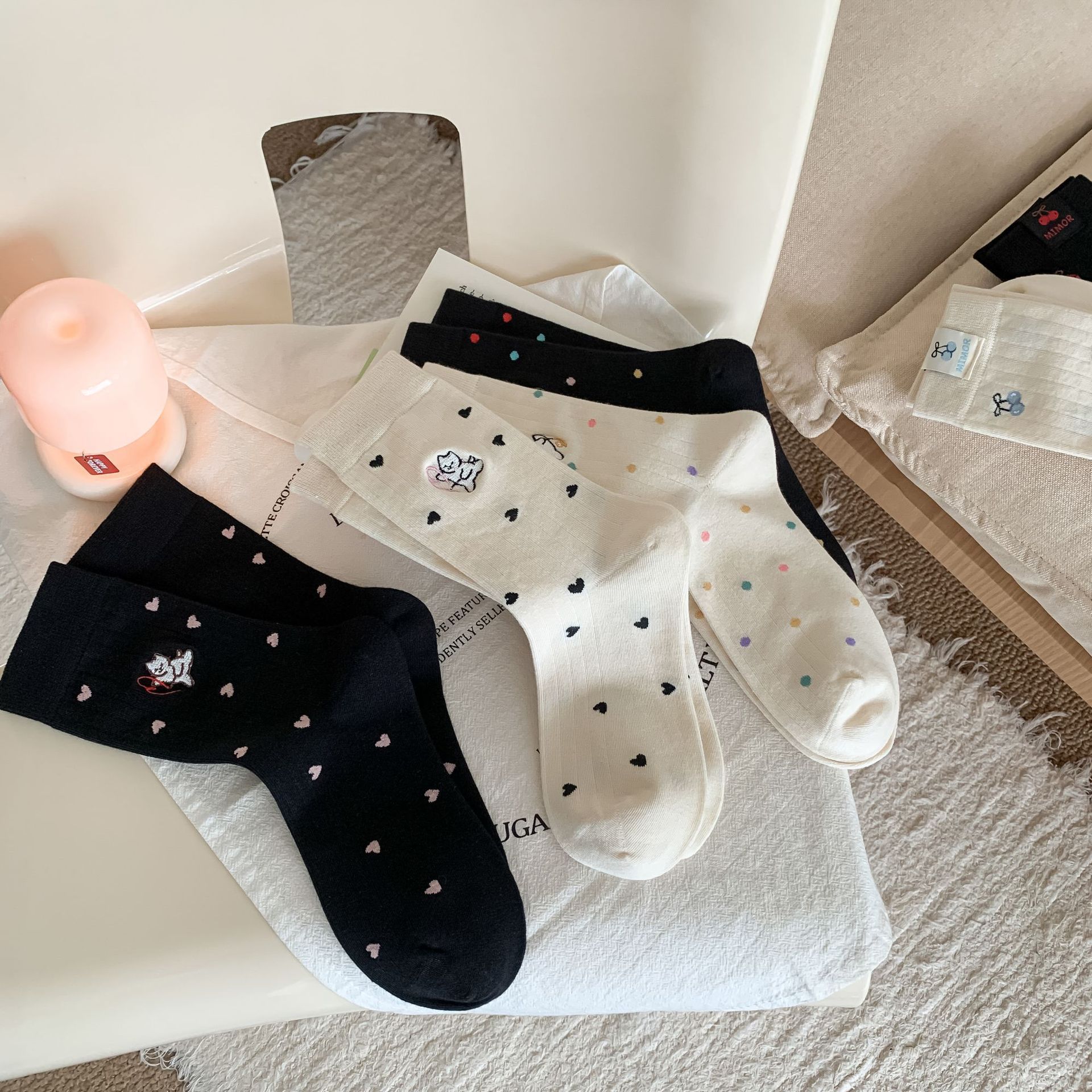 Zhuji 양말 여성 미드 튜브 양말 봄과 가을 겨울 흑백 한국 스타일 in 조수 학생 웨이브 포인트 러브 올 매치 패션스토어 가기