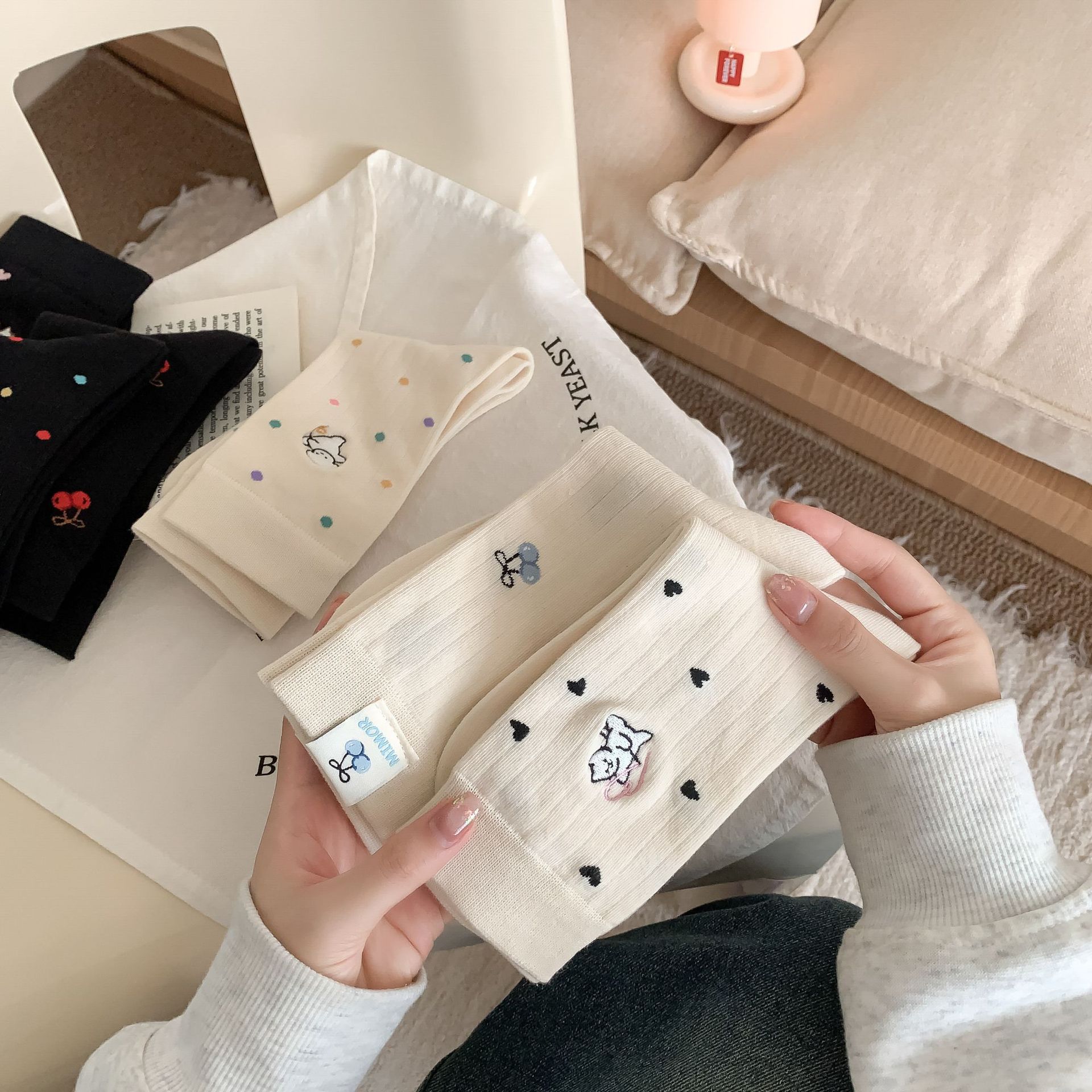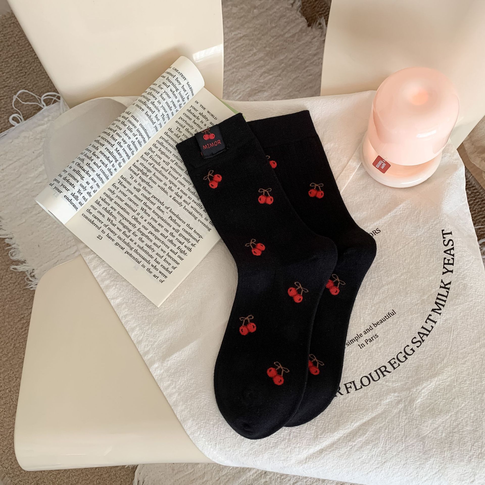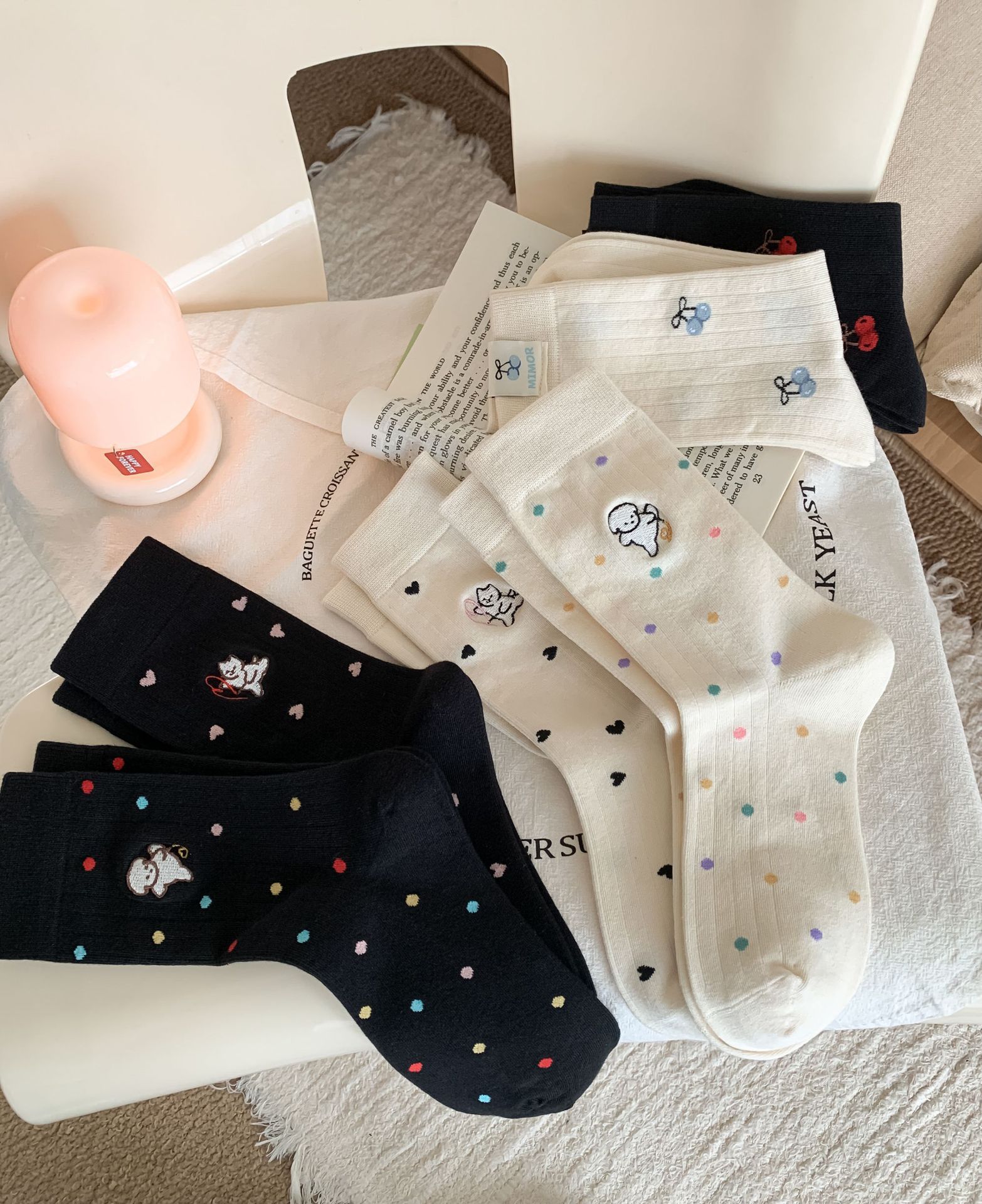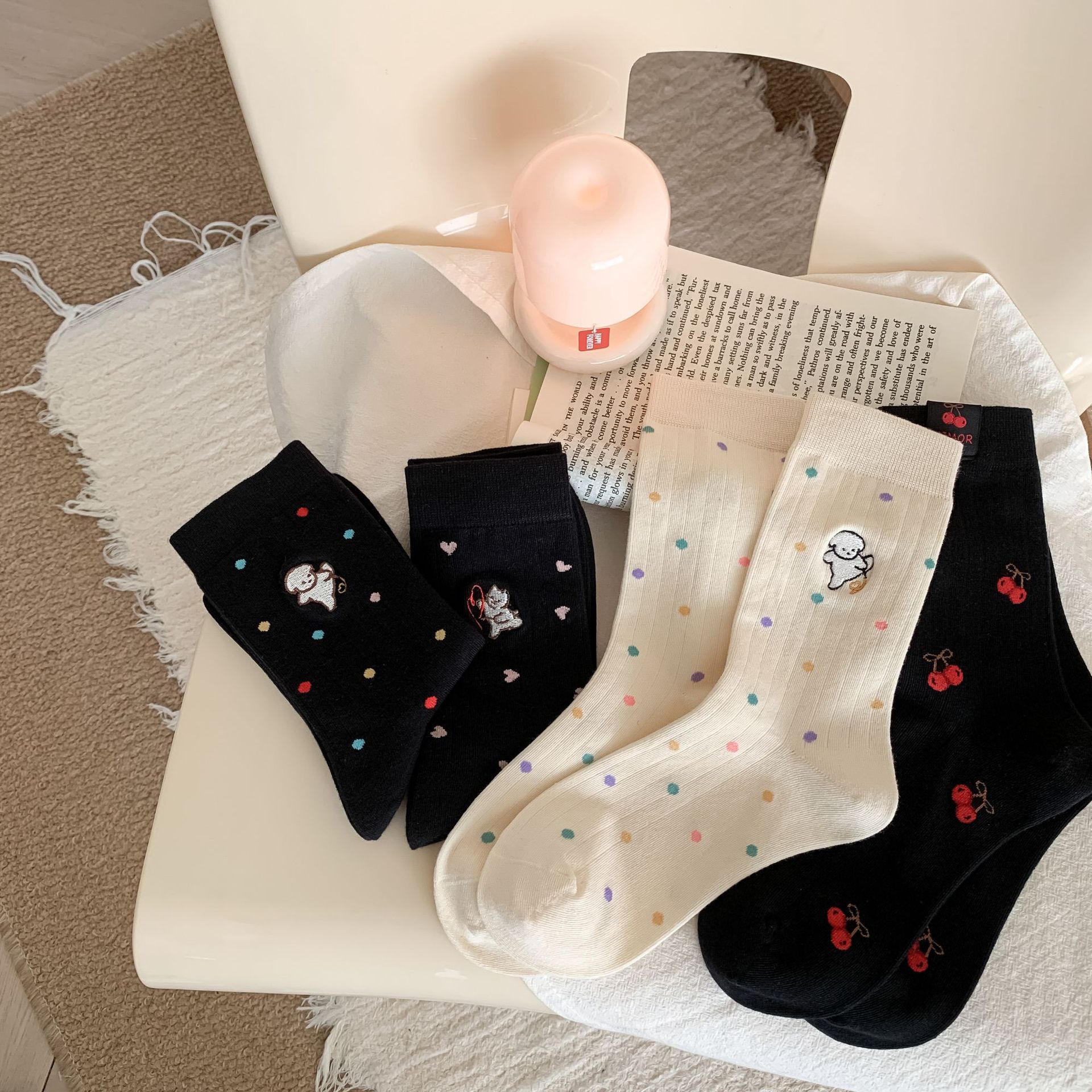 Zhuji 양말 여성 미드 튜브 양말 봄과 가을 겨울 흑백 한국 스타일 in 조수 학생 웨이브 포인트 러브 올 매치 패션스토어 가기
