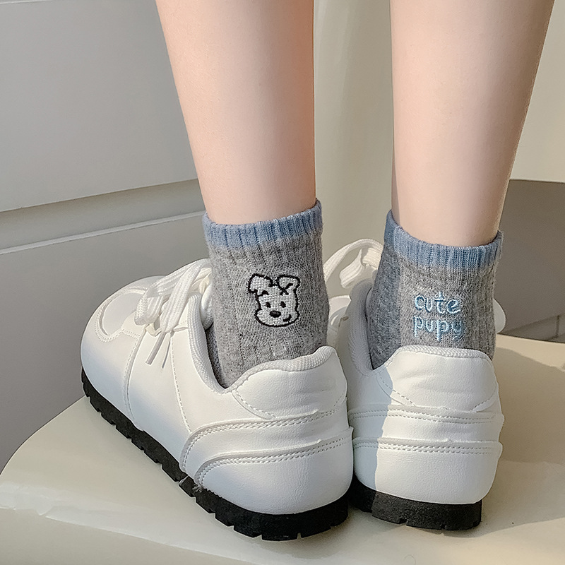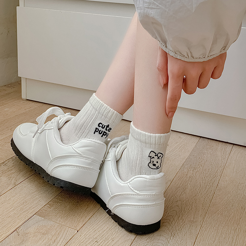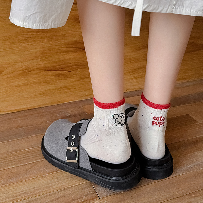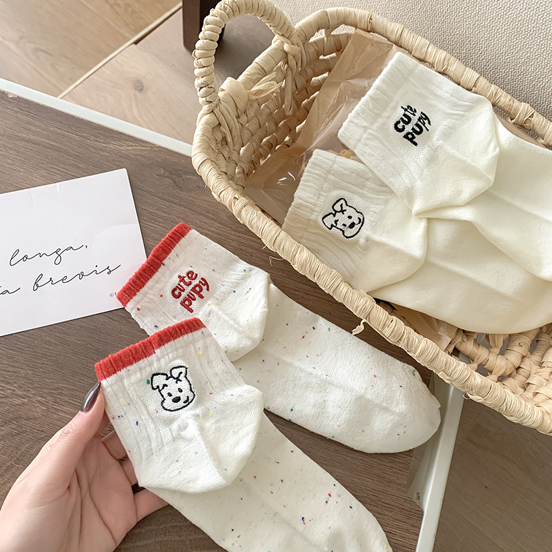 화이트 양말 여성 짧은 양말 여름 얇은 귀여운 만화 일본 스타일 Ins 트렌디 한 강아지 메쉬 통기성 도트 거즈