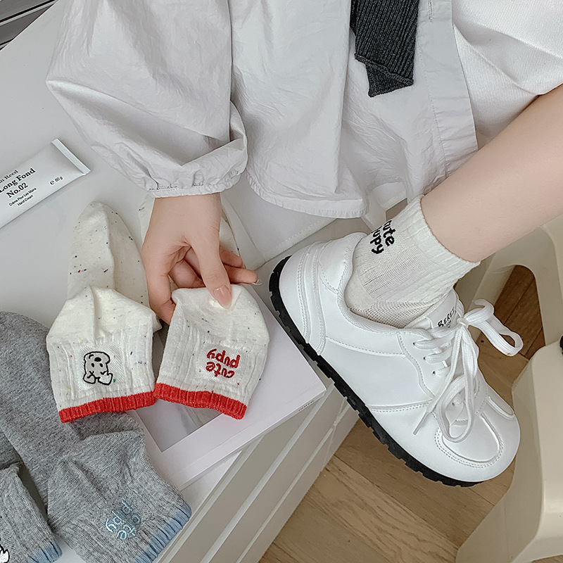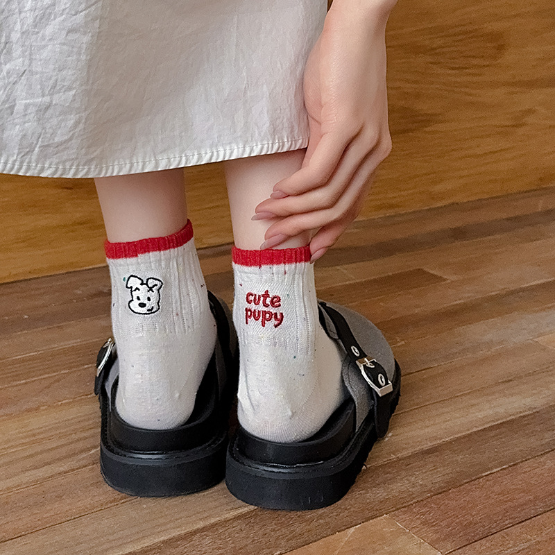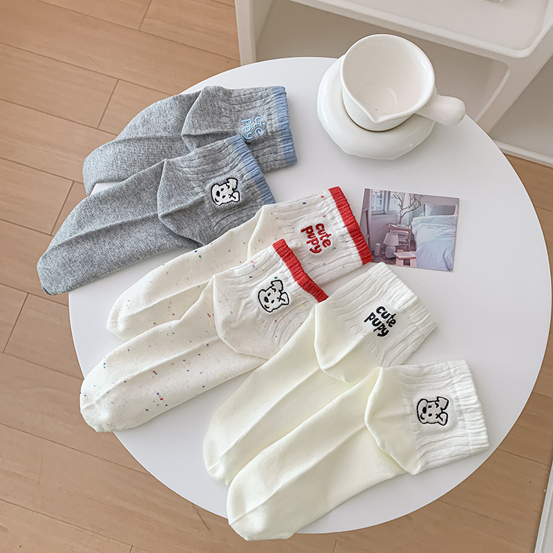 화이트 양말 여성 짧은 양말 여름 얇은 귀여운 만화 일본 스타일 Ins 트렌디 한 강아지 메쉬 통기성 도트 거즈스토어 가기