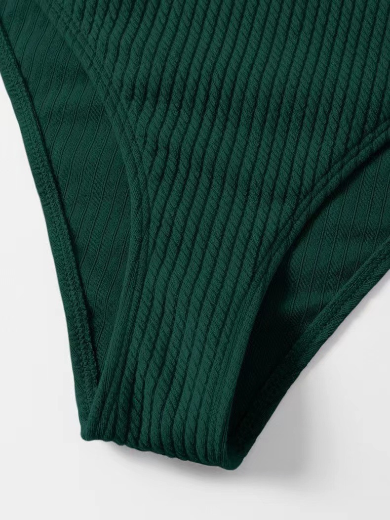 2025 새로운 솔리드 컬러 스트라이프 특수 원단 비키니 여성 섹시한 백리스 하이 허리 크로스 스트랩 수영복 대외 무역스토어 가기
