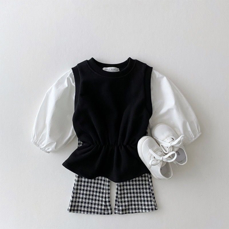 • 체크무늬 나팔바지 + 블랙 나팔바지