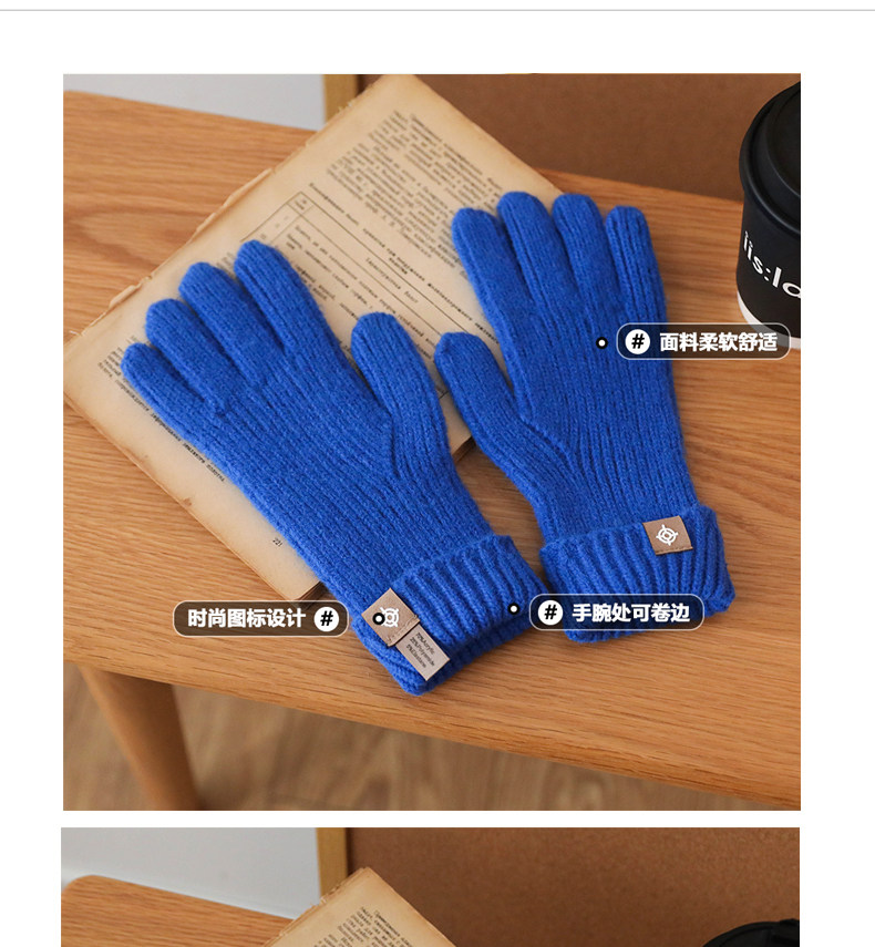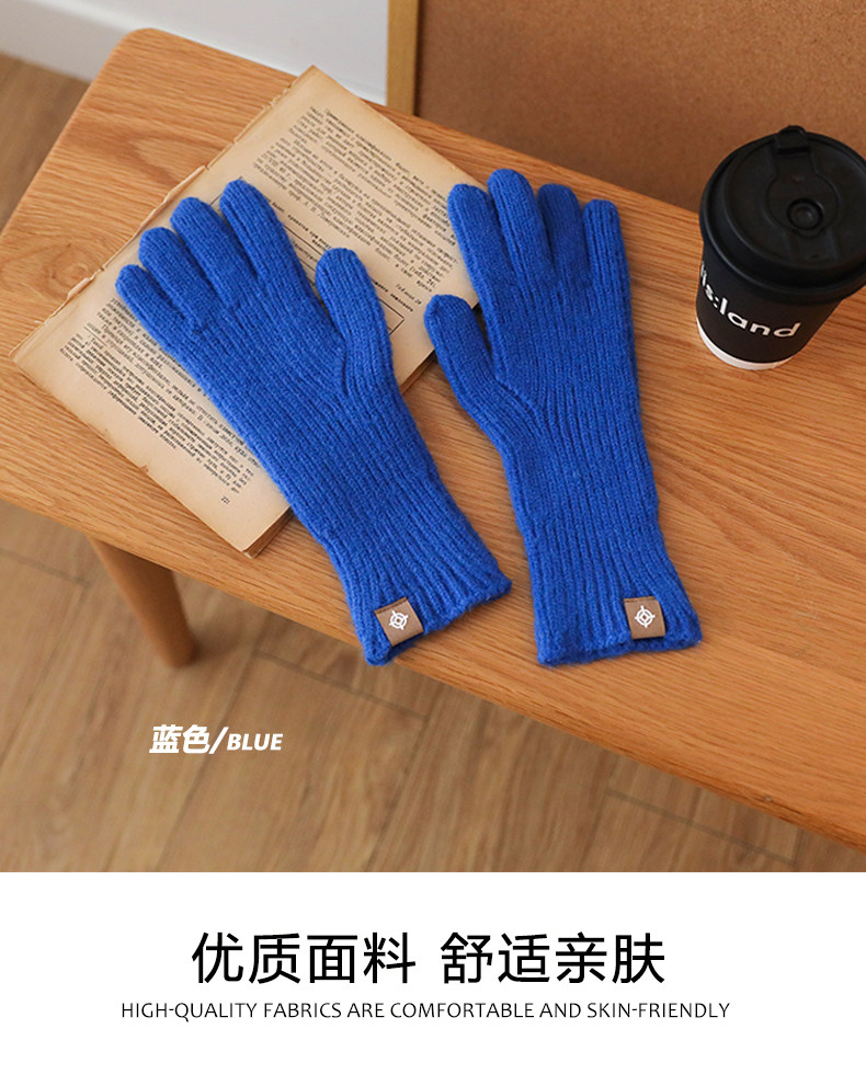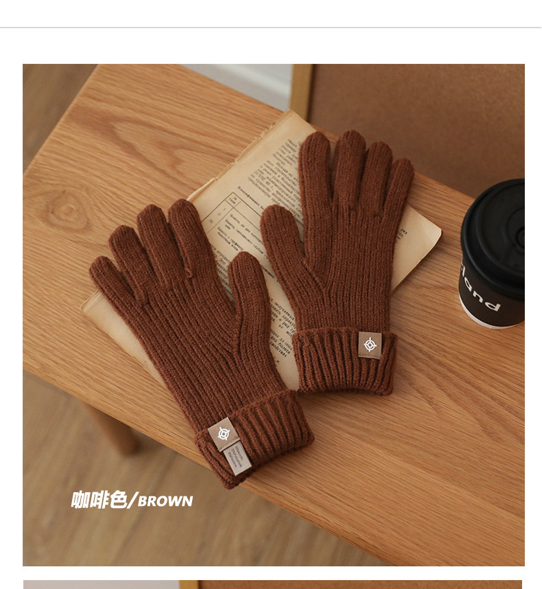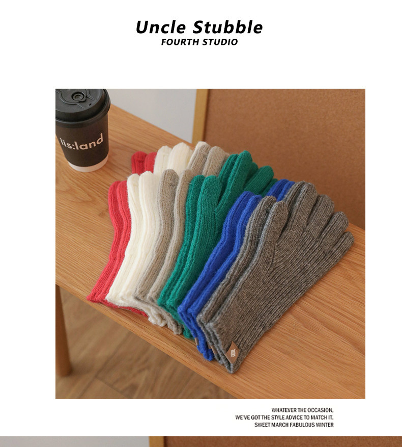 솔리드 컬러 핑거 장갑 2024 겨울 두꺼운 터치 스크린 플레이 휴대 전화 라이드 방풍 따뜻한 니트 울 남성과 여성스토어 가기