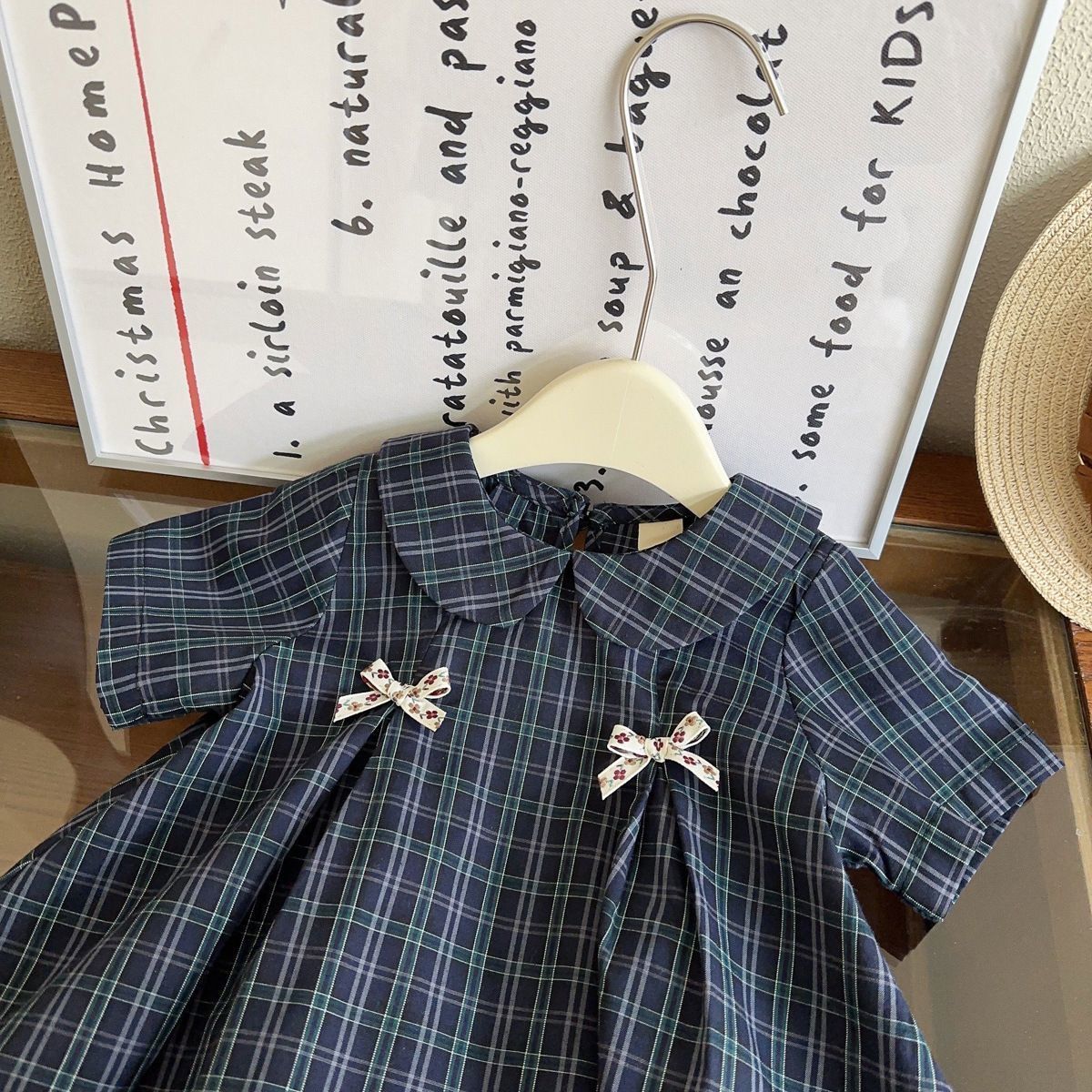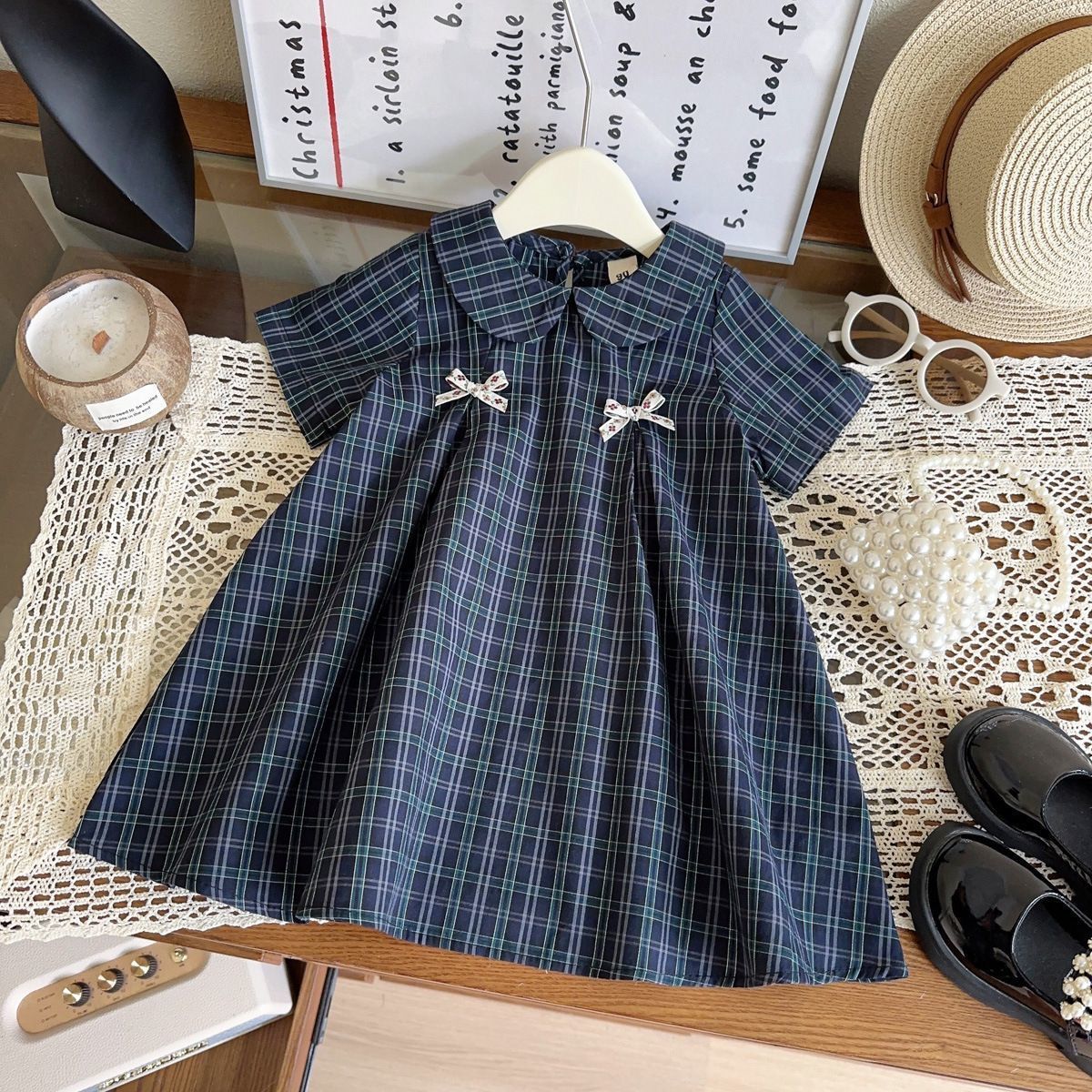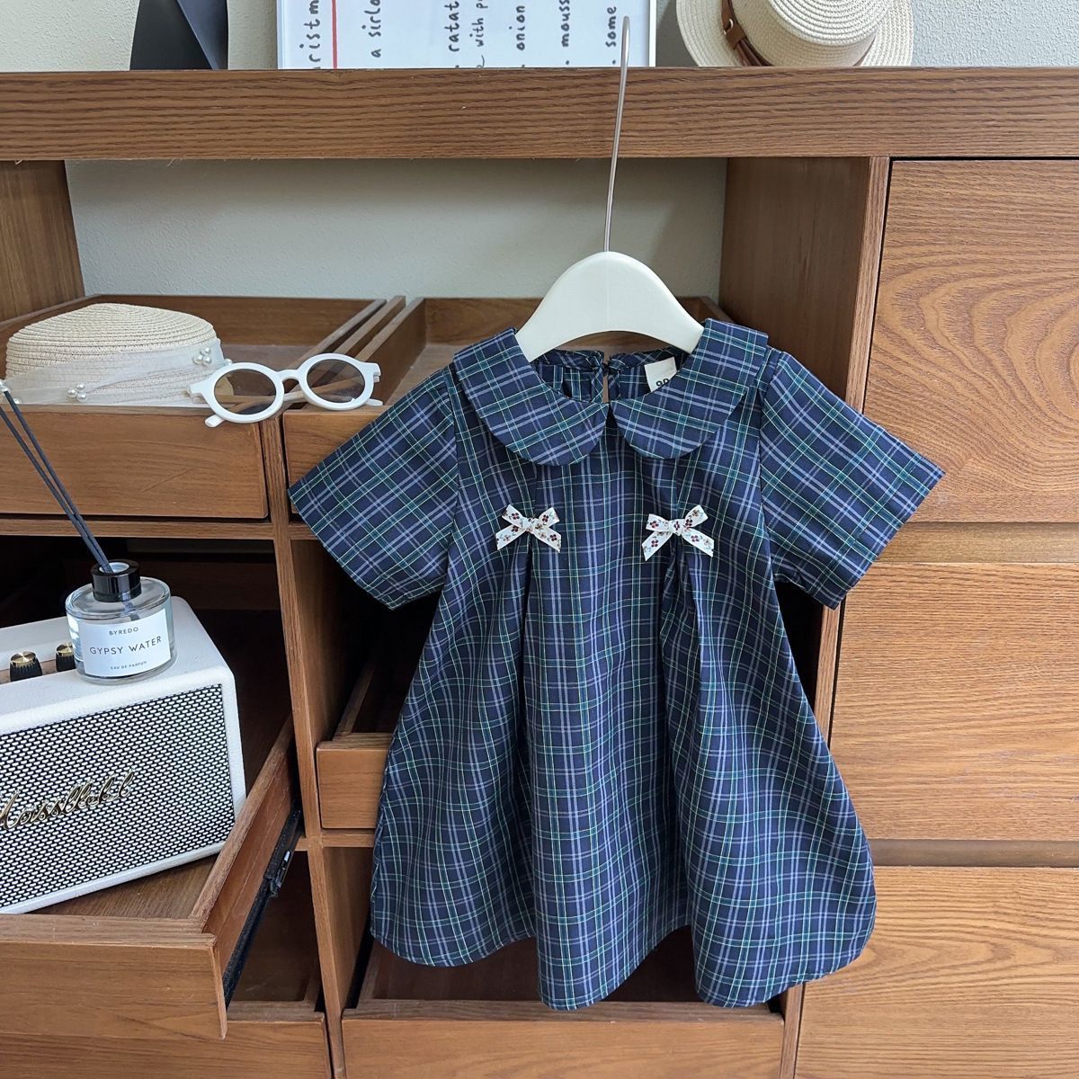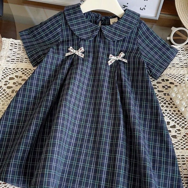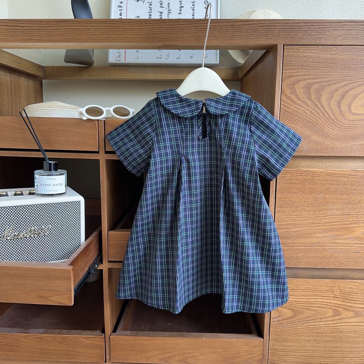 새로운 2025 여자 격자 무늬 원피스 여름 한국 스타일 소녀 아기 소녀 스타일러스 사이버 축하 활 공주 원피스스토어 가기