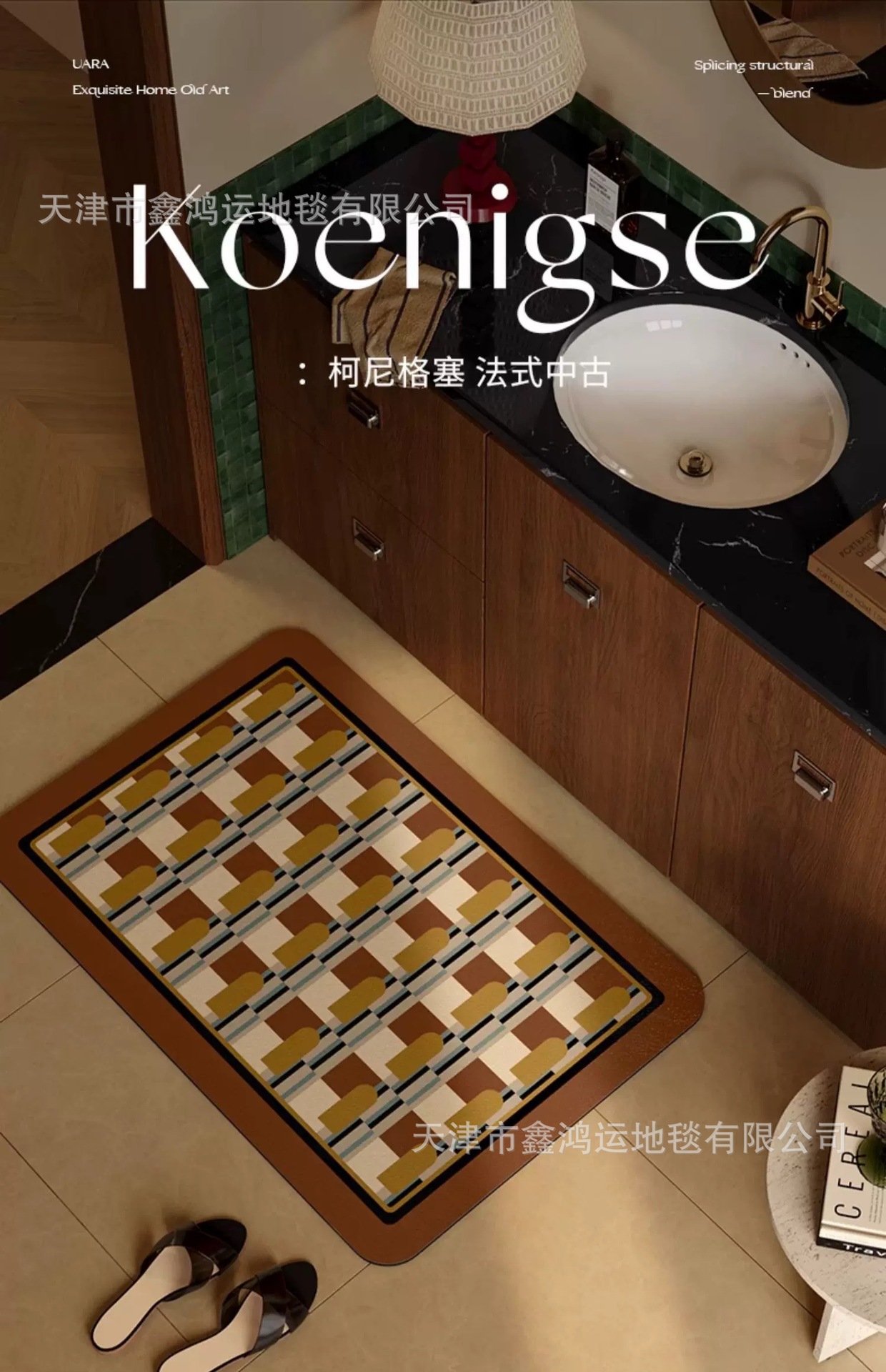 Koniggese 중간 스타일 욕실 흡수성 바닥 매트 빠른 건조 화장실 문 미끄럼 방지 매트스토어 가기