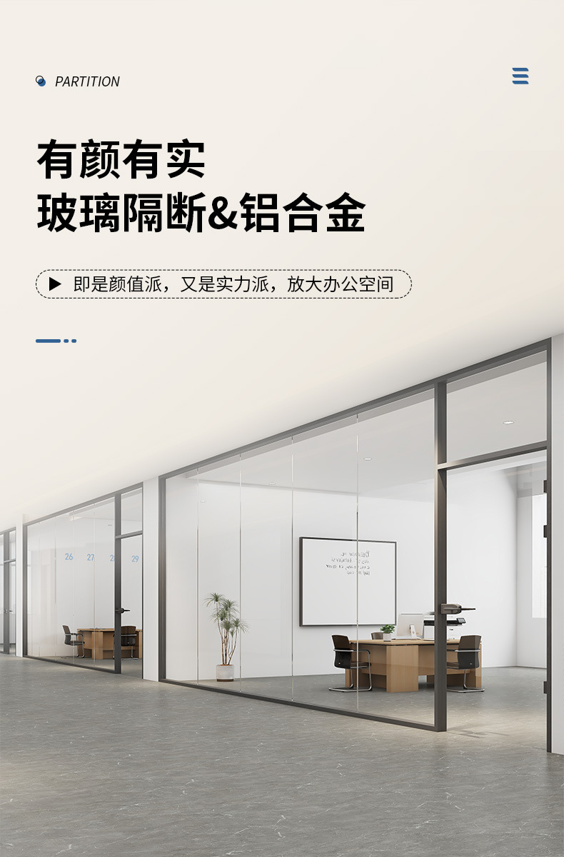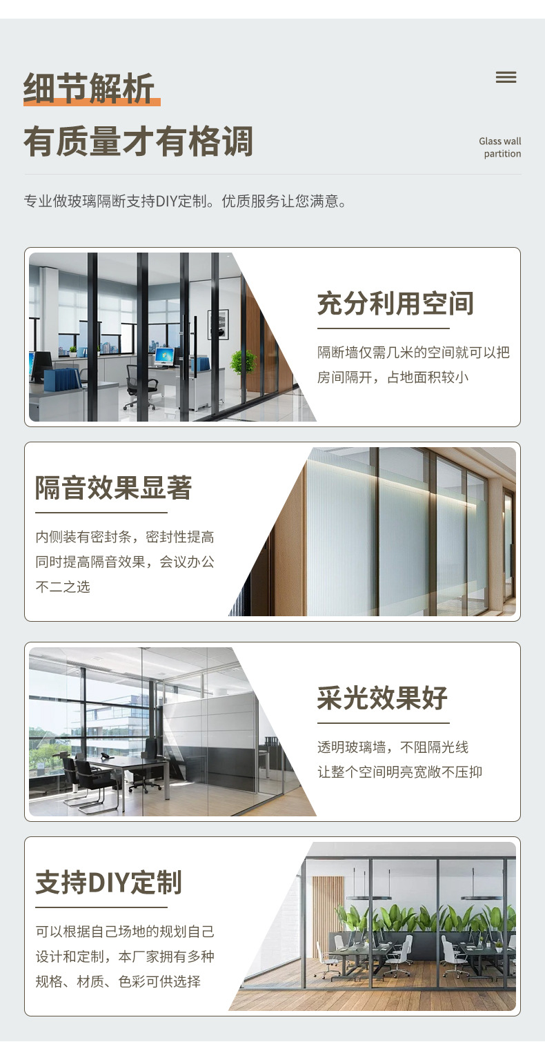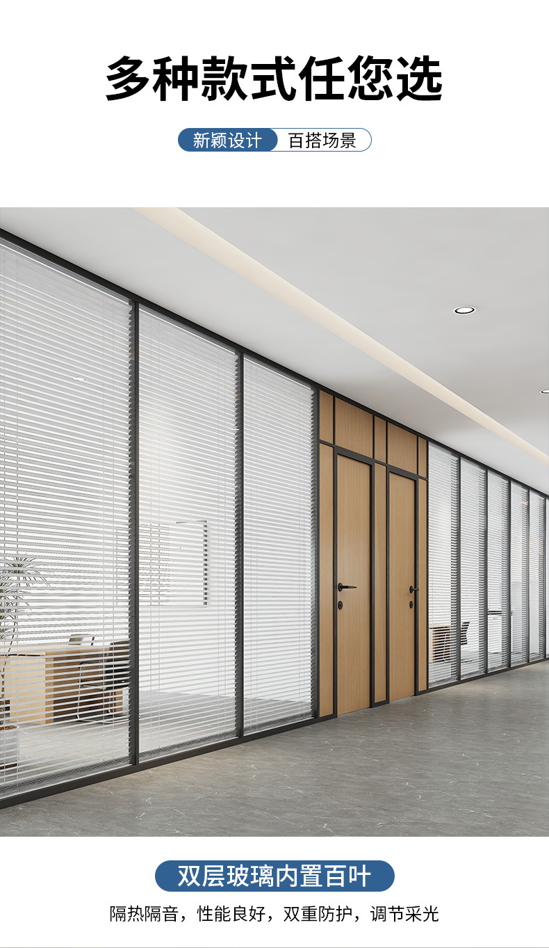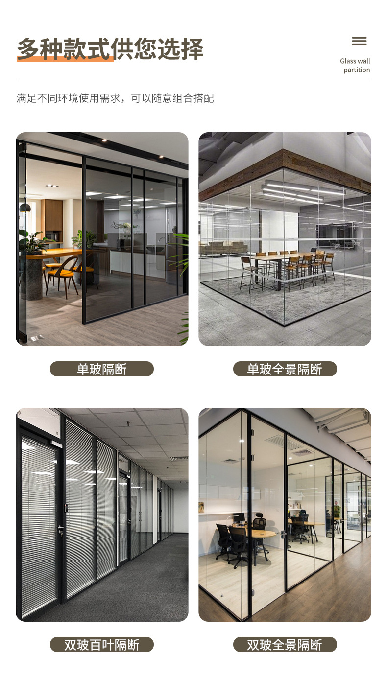 도매 사무실 유리 파티션 알루미늄 합금 루버 유리 벽 단일 레이어 강화 유리 파티션 벽 높은 파티션스토어 가기