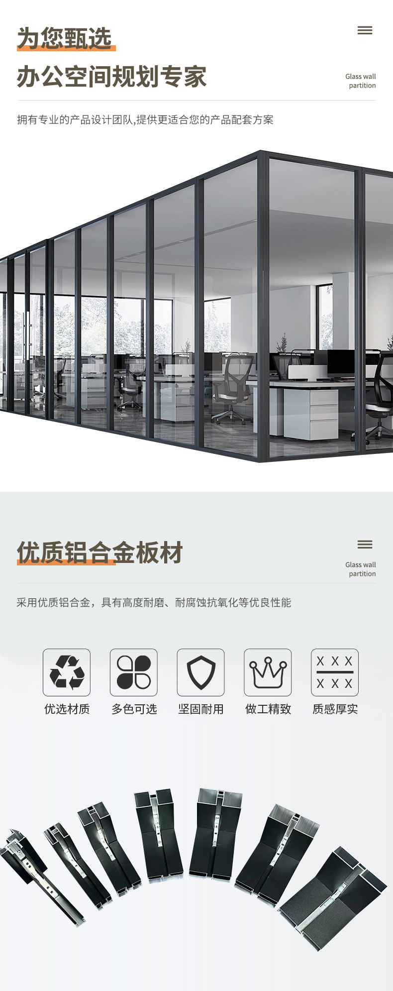 도매 사무실 유리 파티션 알루미늄 합금 루버 유리 벽 단일 레이어 강화 유리 파티션 벽 높은 파티션