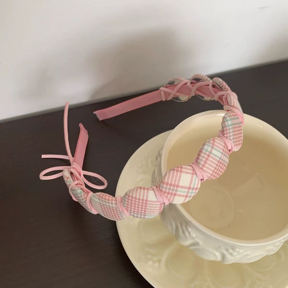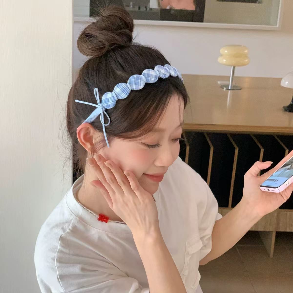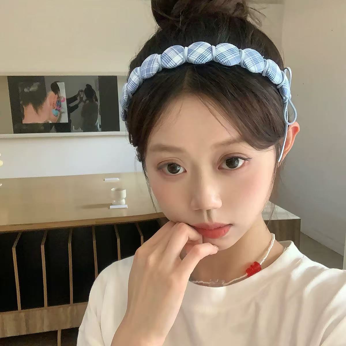 귀여운 소녀 심장 달콤한 체크 무늬 머리띠 간단한 바람 직물 주름진 머리띠 봄과 여름 새로운 머리 보석 도매스토어 가기