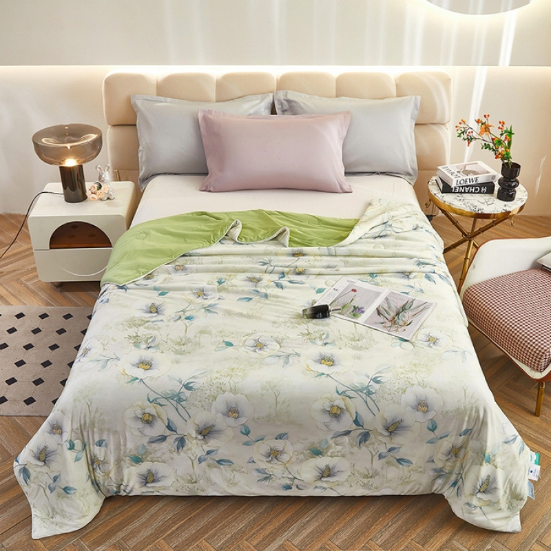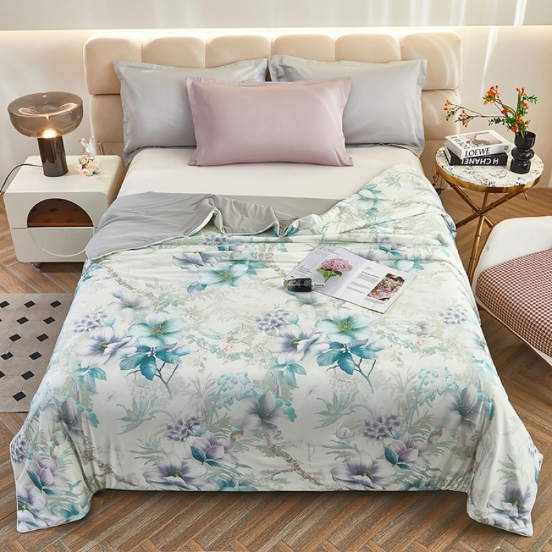 봄/여름 2025 새로운 니트 쿨 실크 에어컨 퀼트 목회 꽃 인쇄 여름 퀼트 싱글 기숙사 여름 퀼트