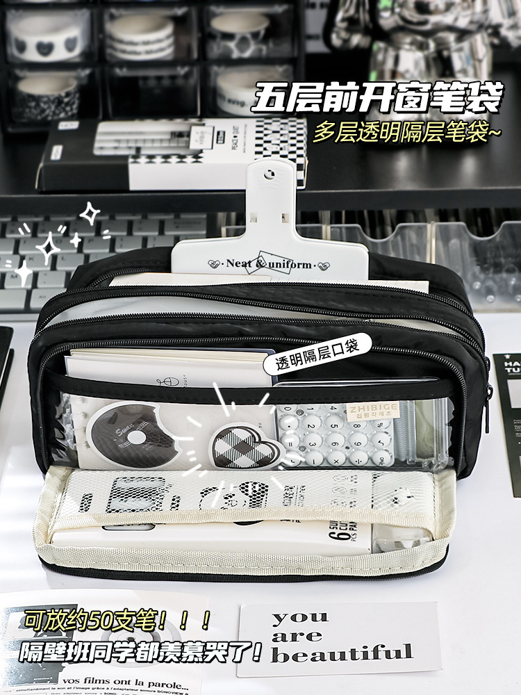 -5 층 대용량 투명 연필 케이스 소녀의 문구 케이스 중학생 남학생과 여학생 문구용 고등학교 연필 케이스