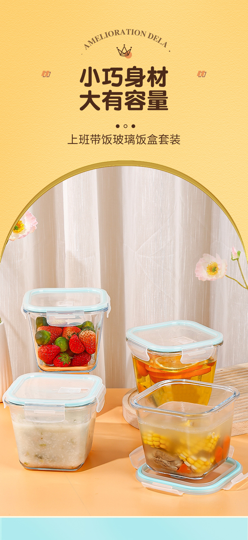 -유리 수프 그릇 가구 밀봉 광장 전자 레인지 난방 그릇 사무실 노동자 뚜껑이 달린 성인 도시락스토어 가기