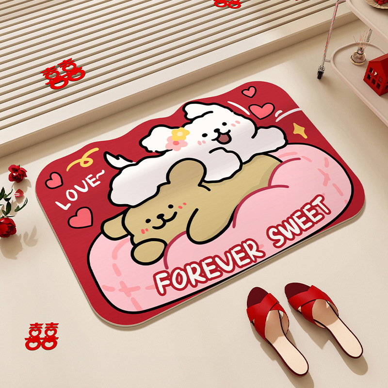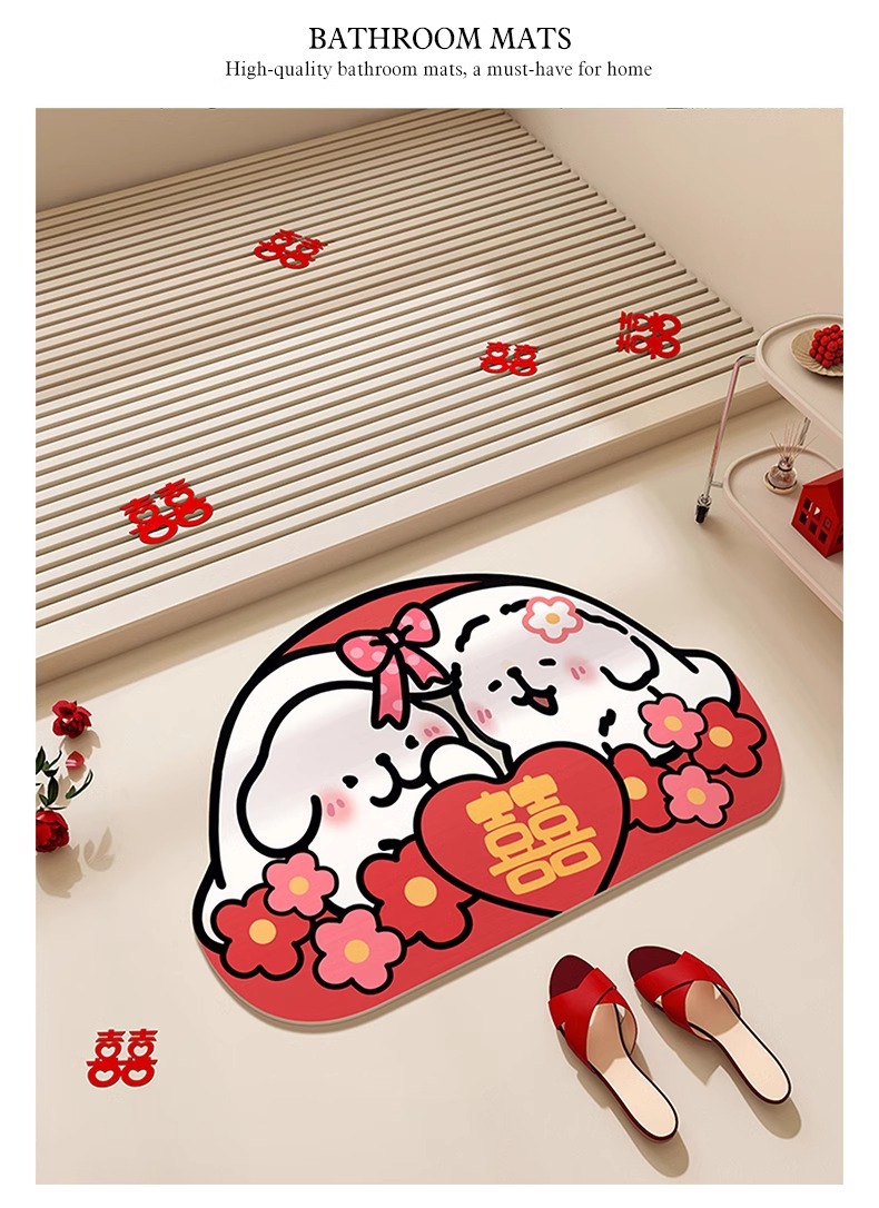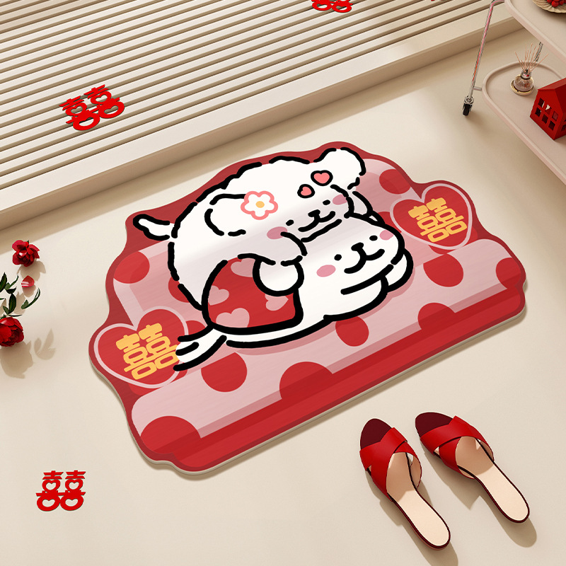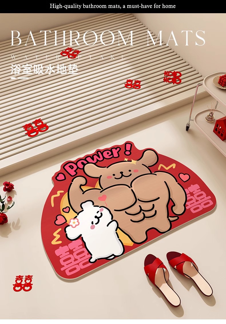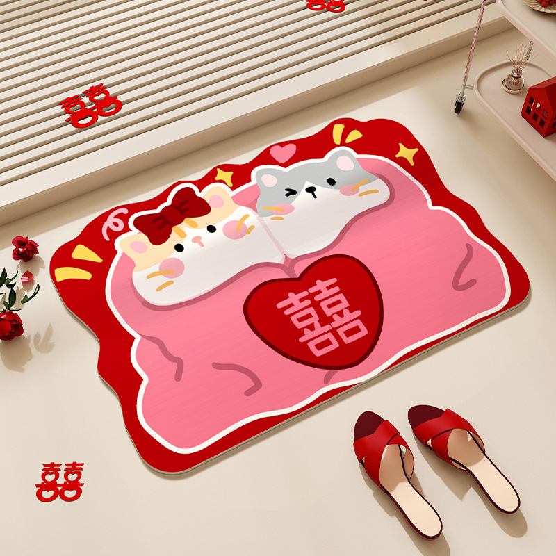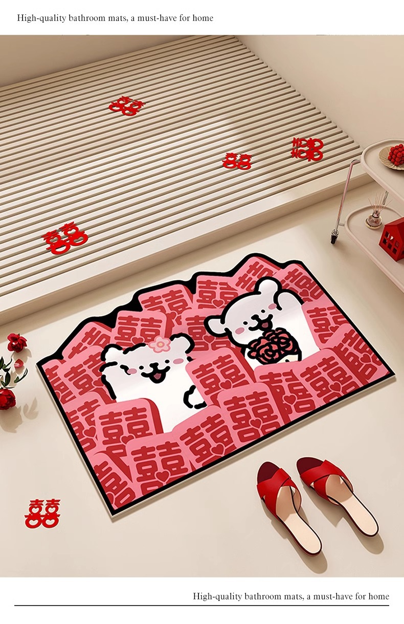 축제 붉은 욕실 바닥 매트 화장실 문 만화 카펫 Diatom 진흙 흡수성 빠른 건조 미끄럼 방지 매트 발 매트스토어 가기