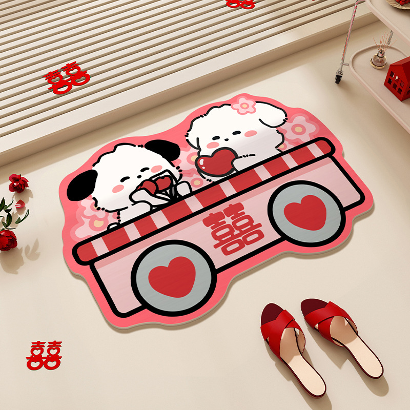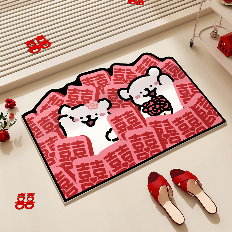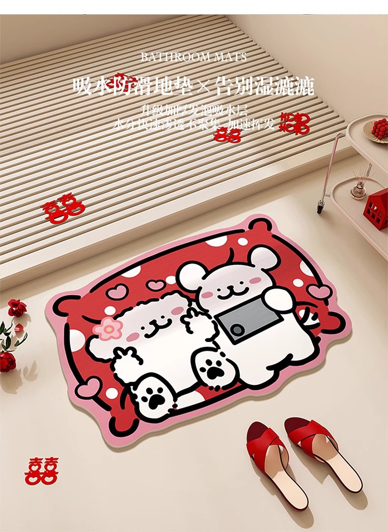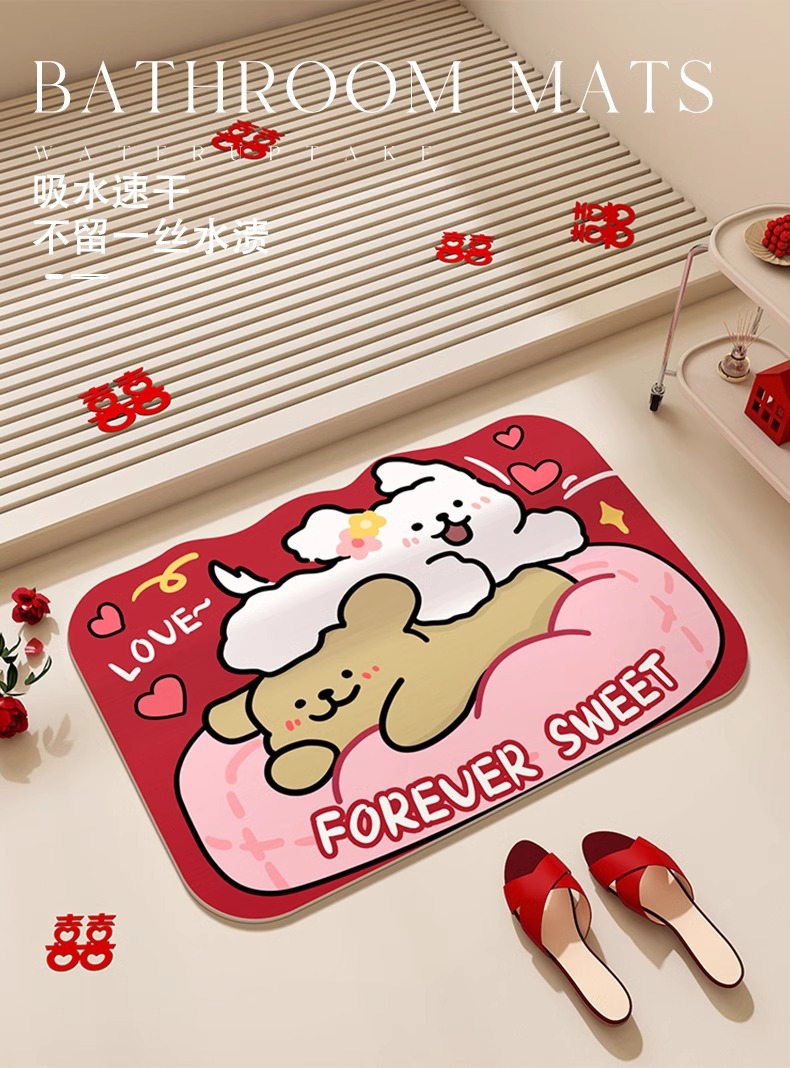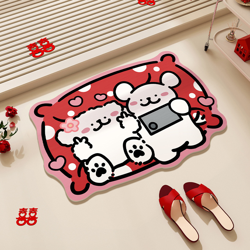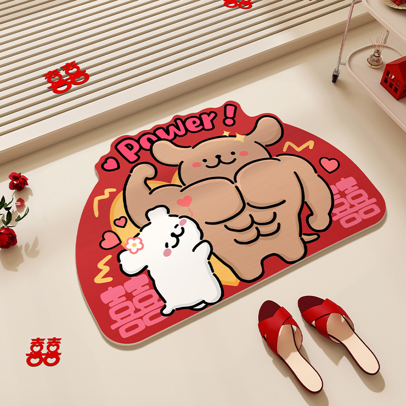 축제 붉은 욕실 바닥 매트 화장실 문 만화 카펫 Diatom 진흙 흡수성 빠른 건조 미끄럼 방지 매트 발 매트스토어 가기