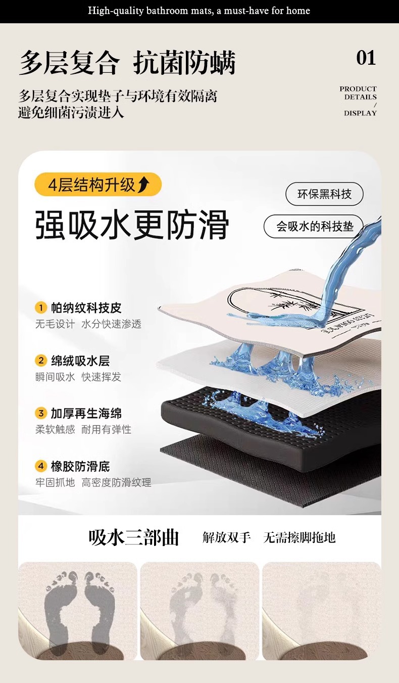 • 40×60cm [흡수성, 미끄럼 방지, 발로 지나간 흔적 없음]