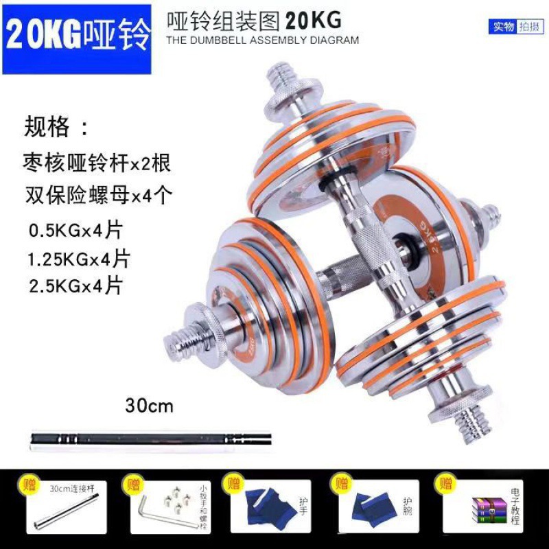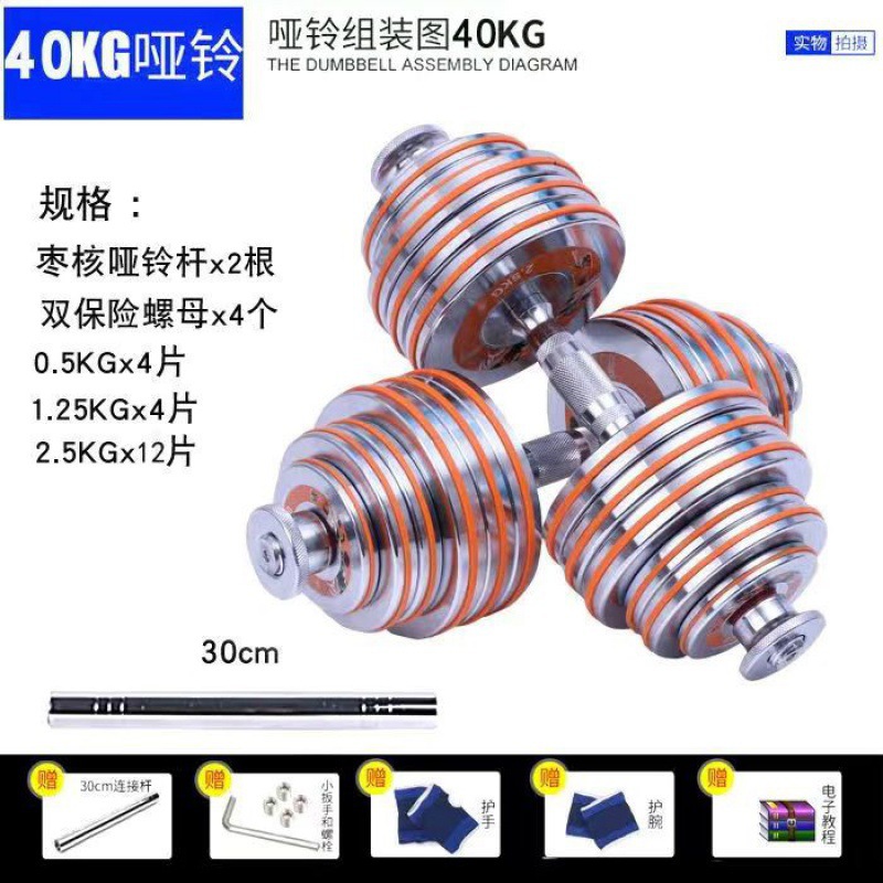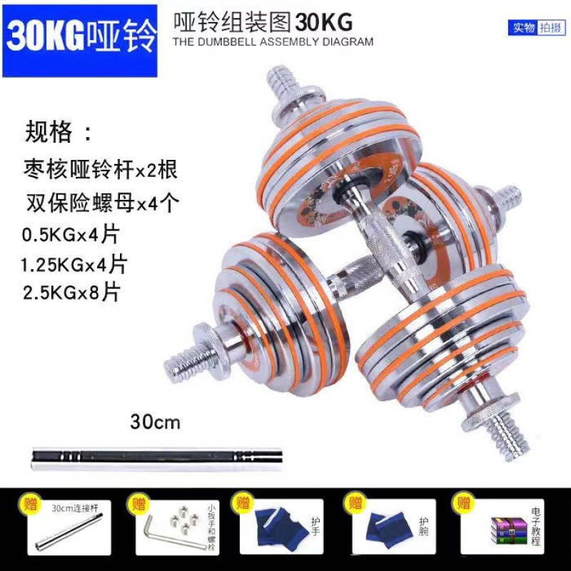 순수 강철 덤벨 남성 홈 피트니스 장비 20kg 30kg 아령 바벨 세트 팔 근육 훈련 지구력스토어 가기