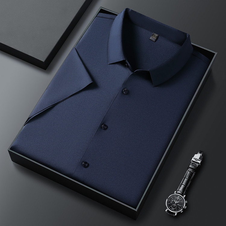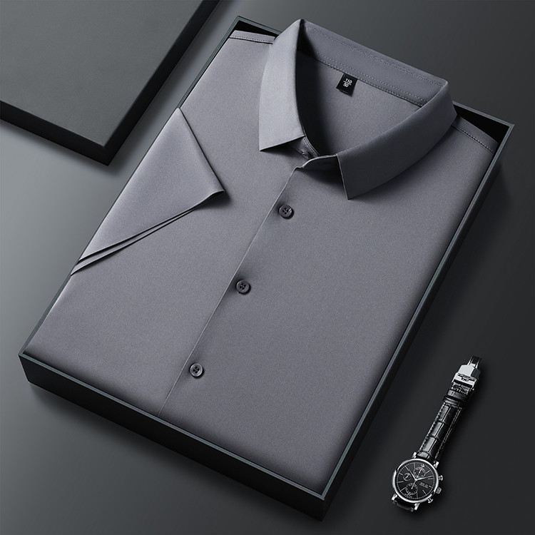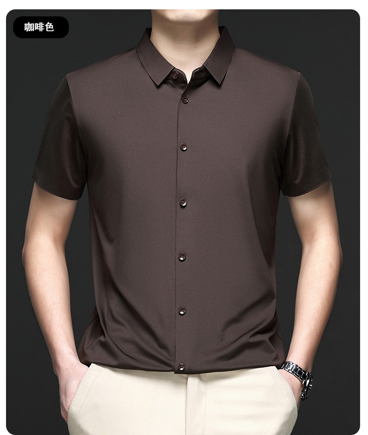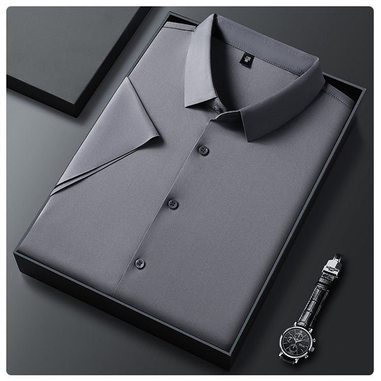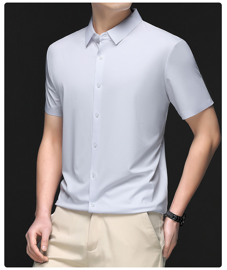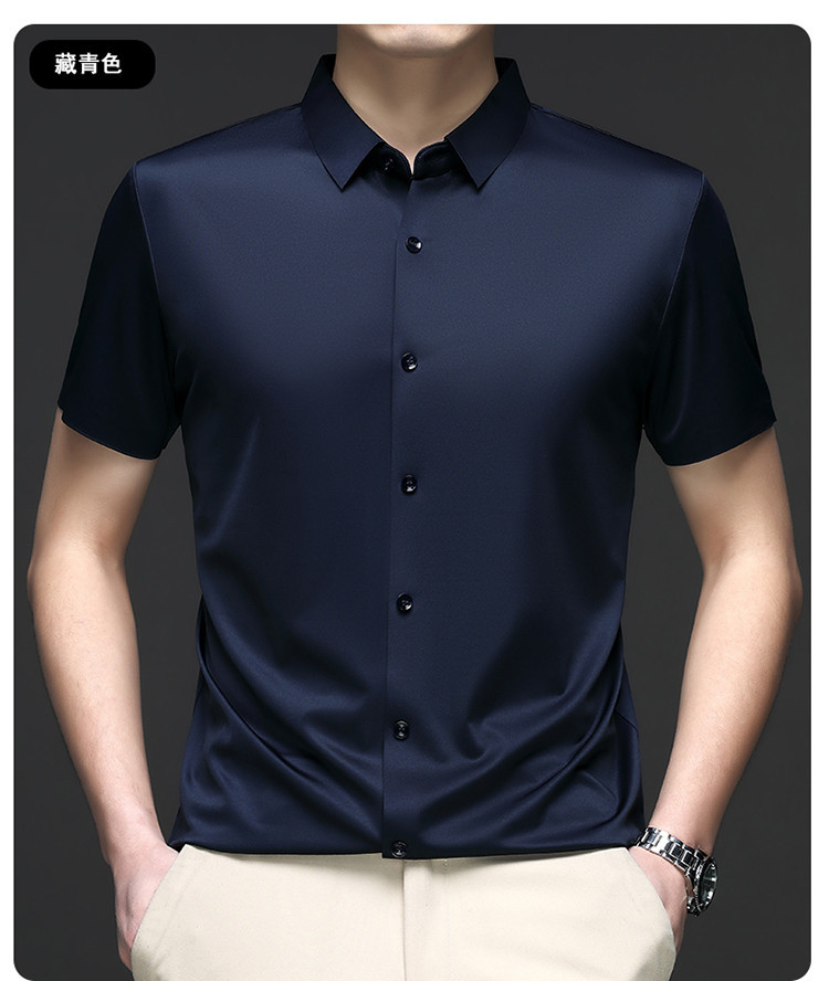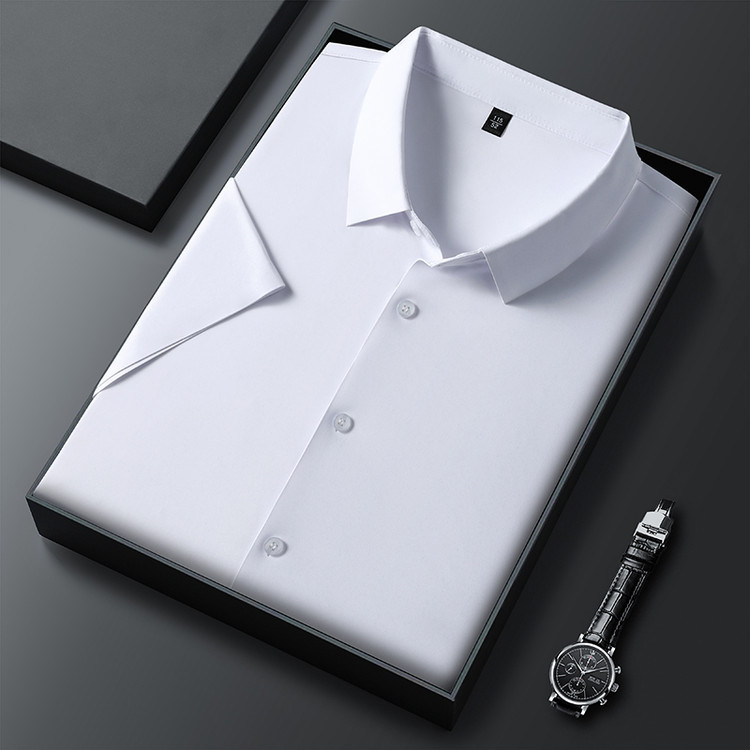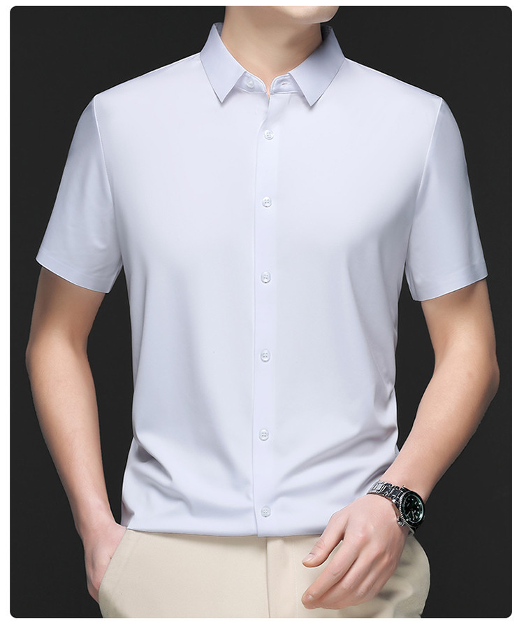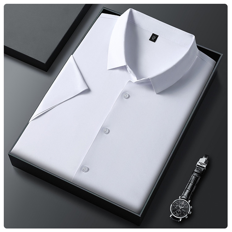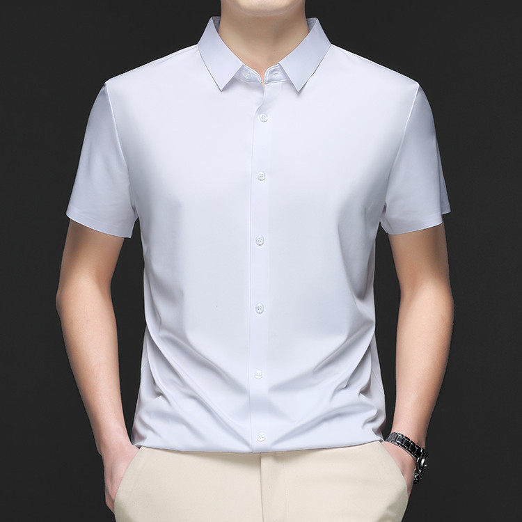 男士高级感衬衫男短袖夏季休闲百搭商务男装爸爸装免烫无痕白衬衣스토어 가기