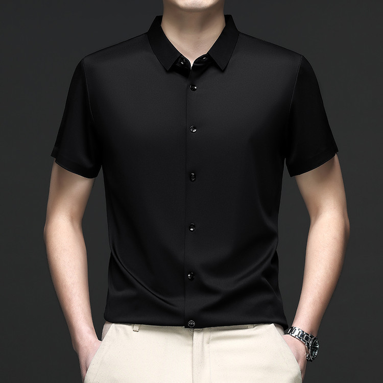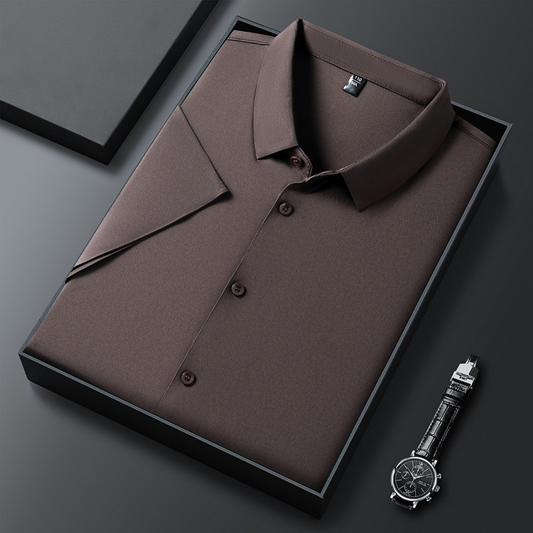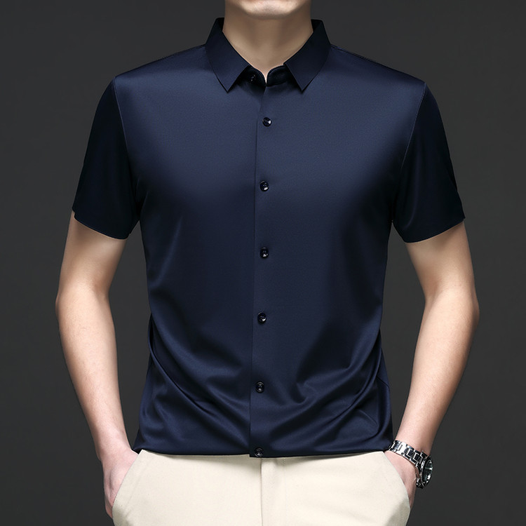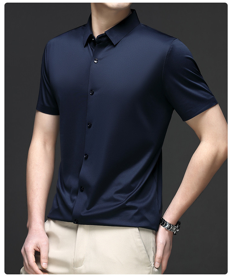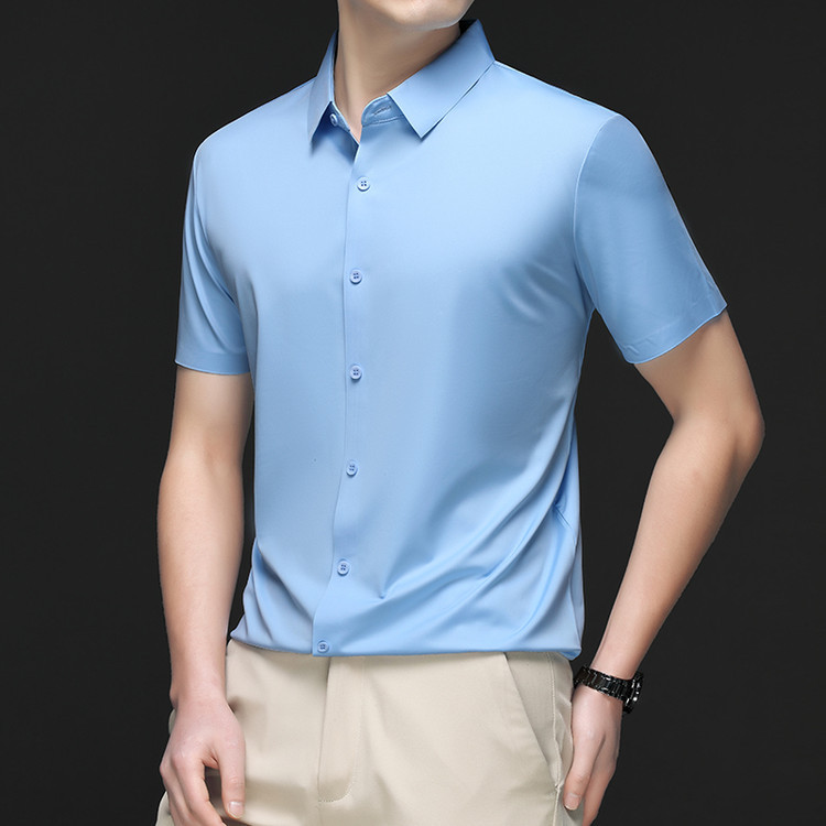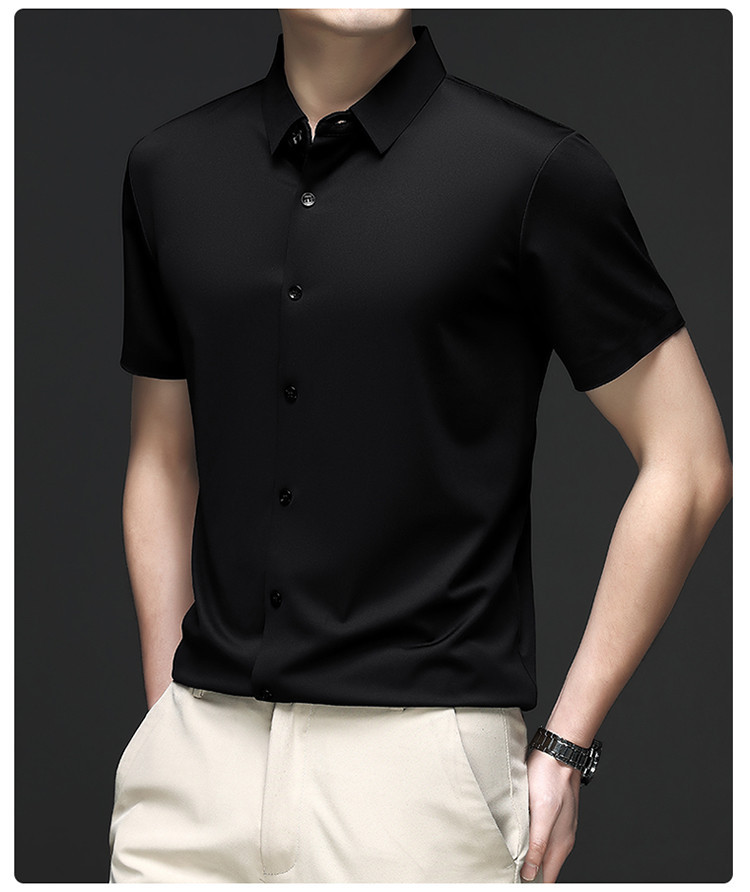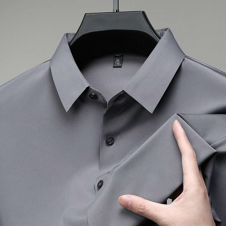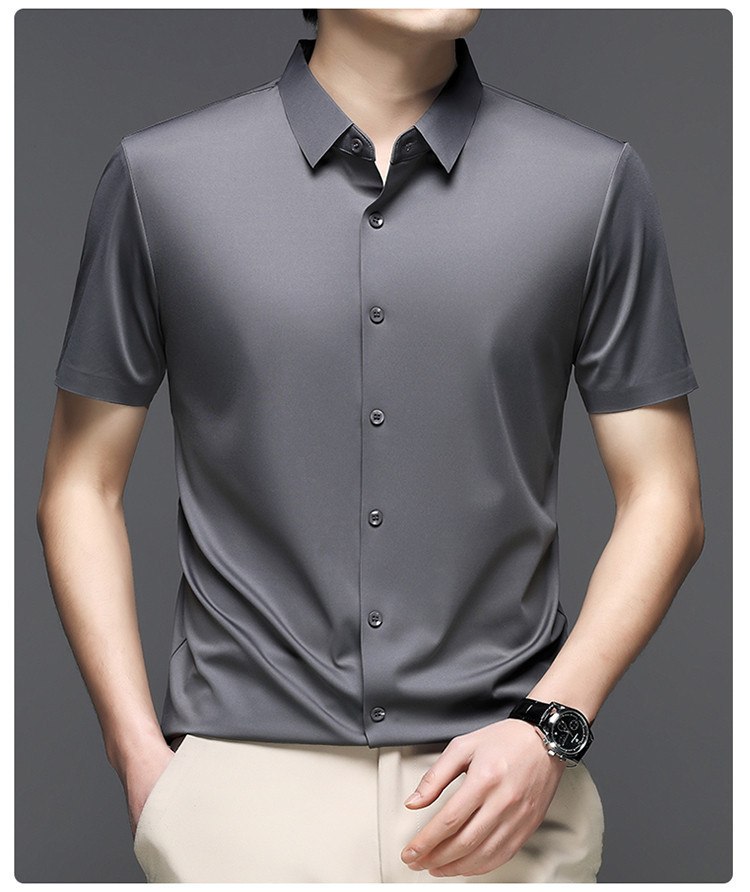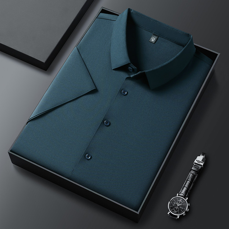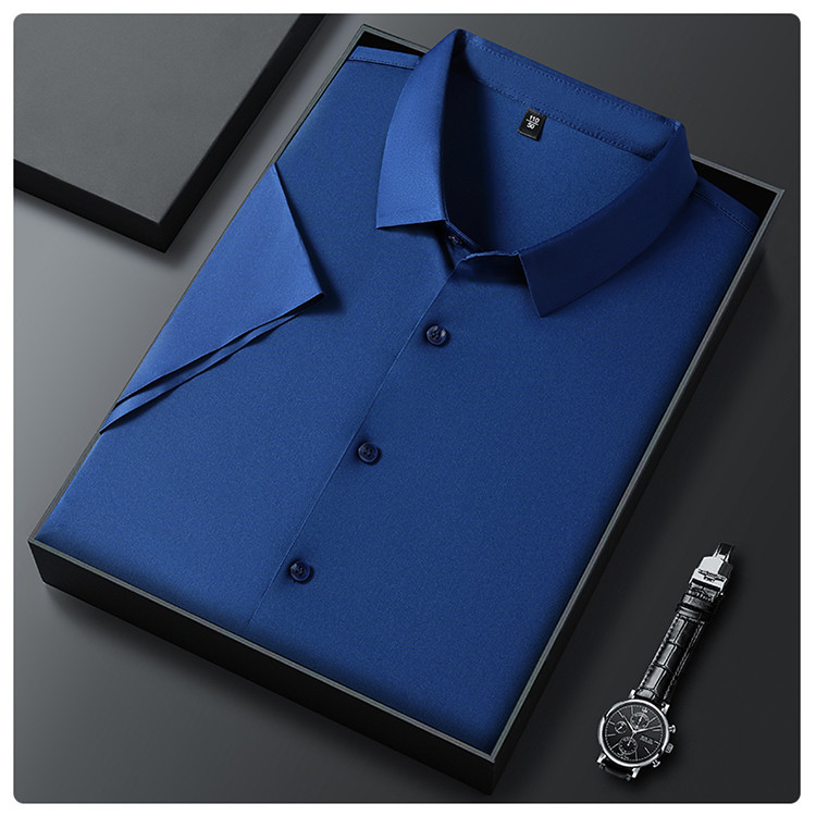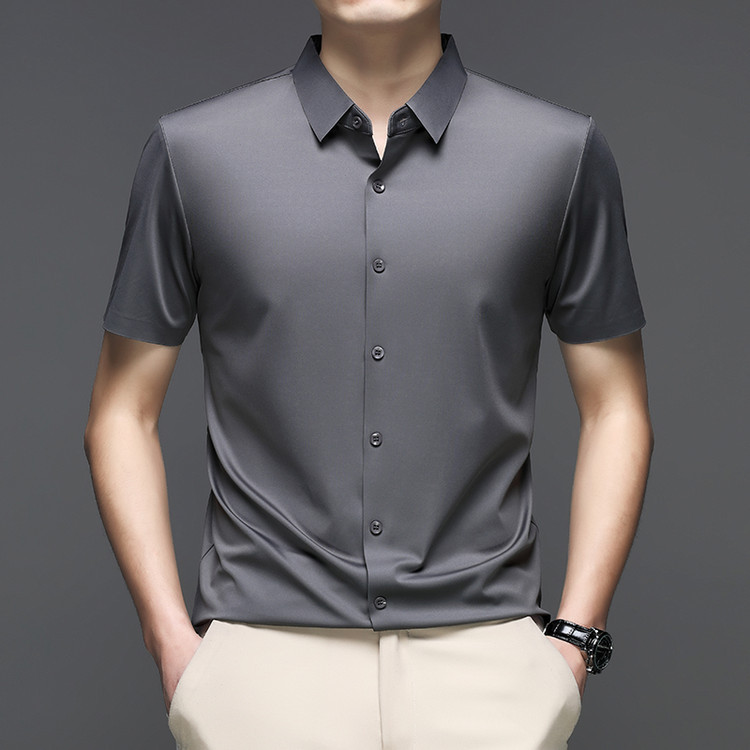 男士高级感衬衫男短袖夏季休闲百搭商务男装爸爸装免烫无痕白衬衣스토어 가기