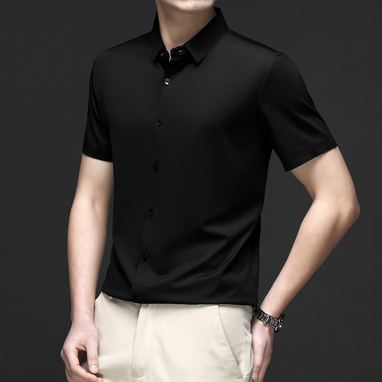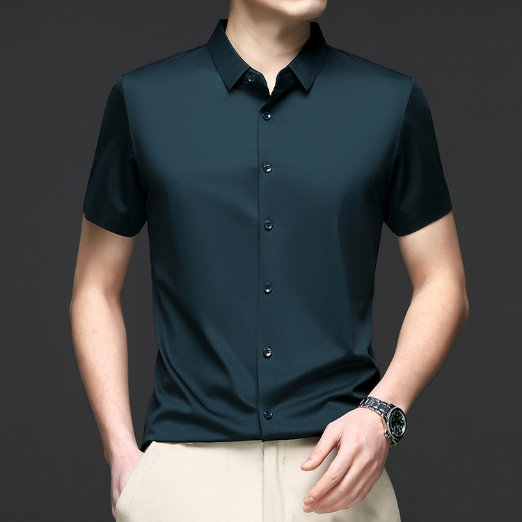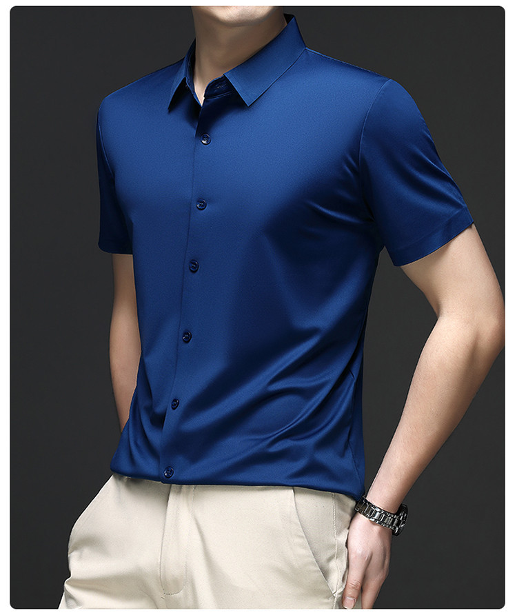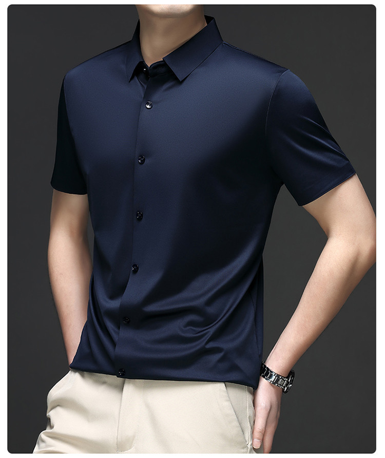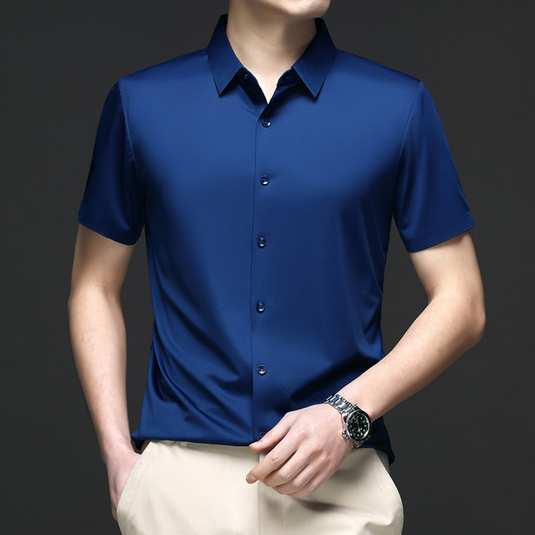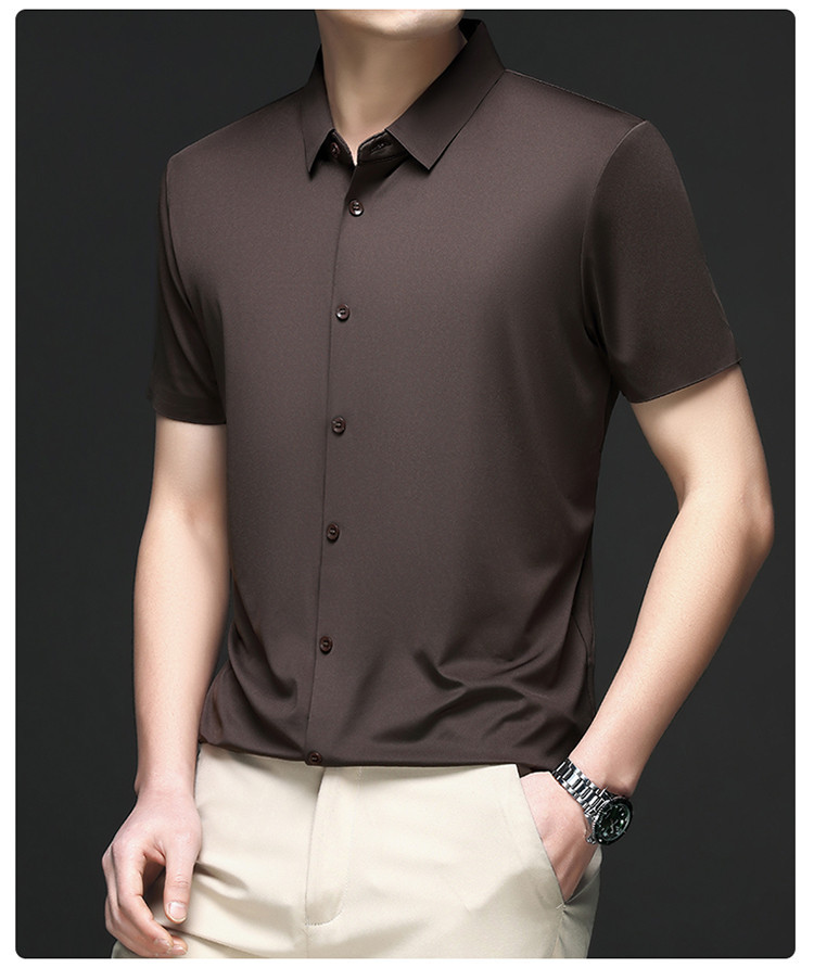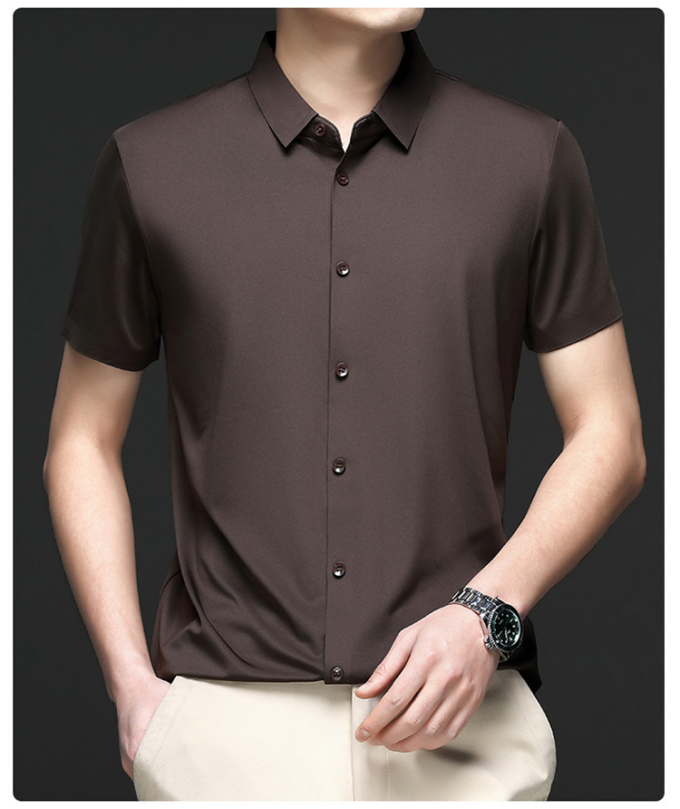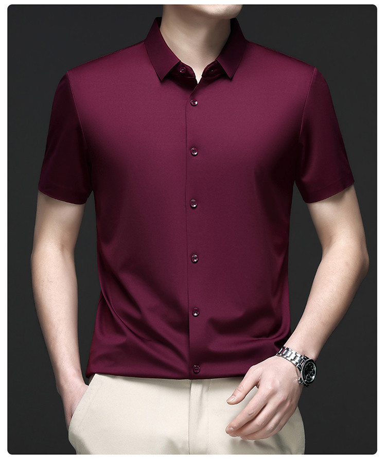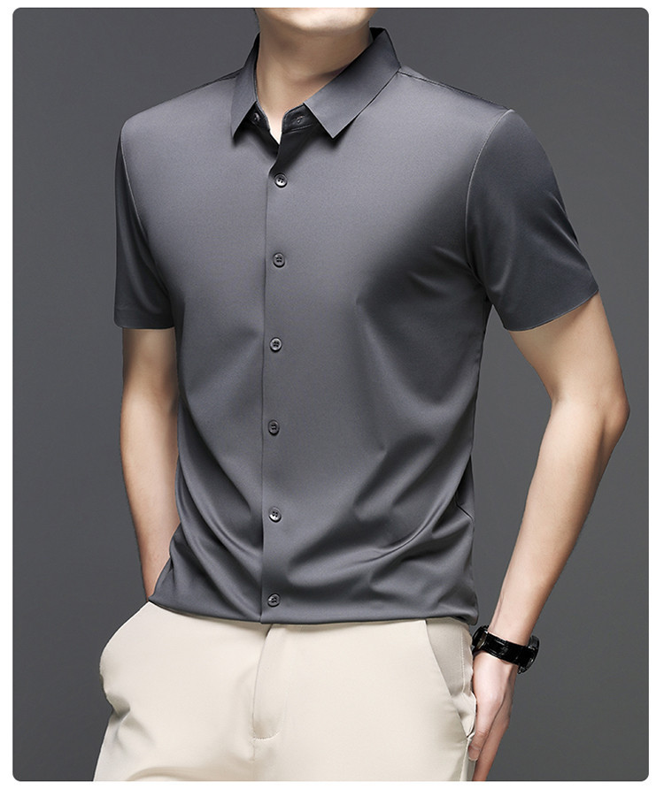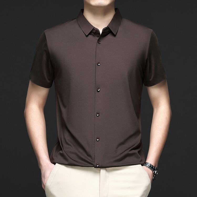 男士高级感衬衫男短袖夏季休闲百搭商务男装爸爸装免烫无痕白衬衣스토어 가기