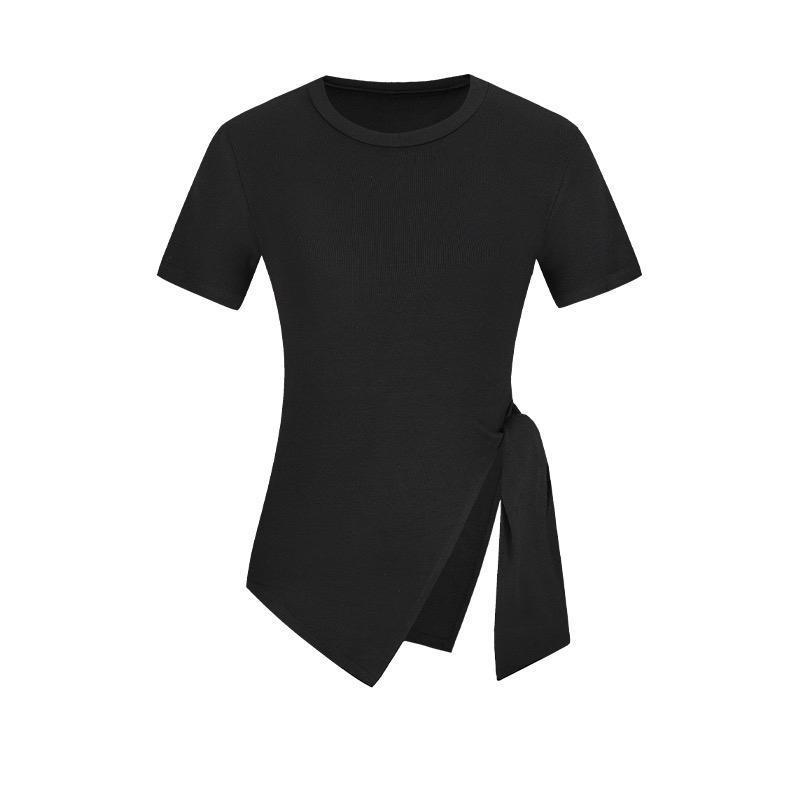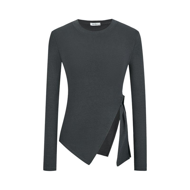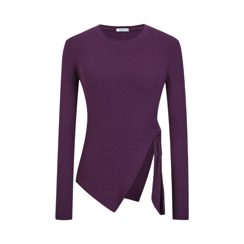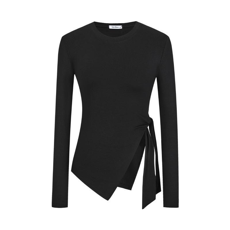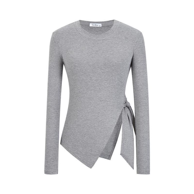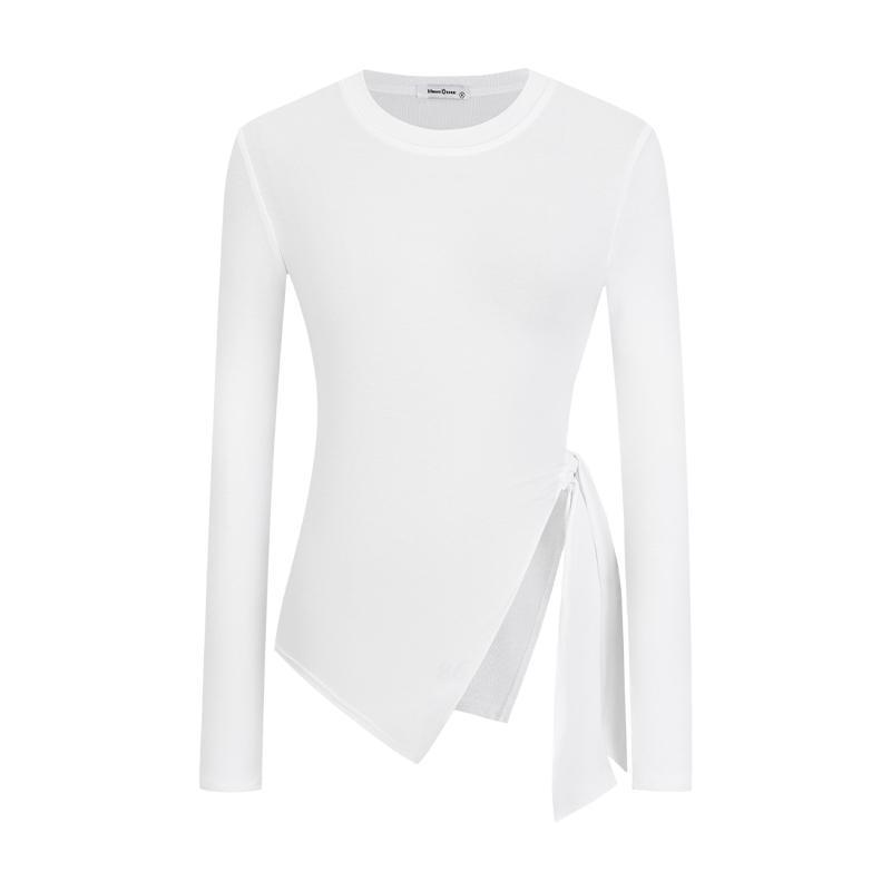 디자인 센스 스트랩 허리 레이스 라운드 넥 긴 소매 어깨 슬리밍 탑 화이트 2025