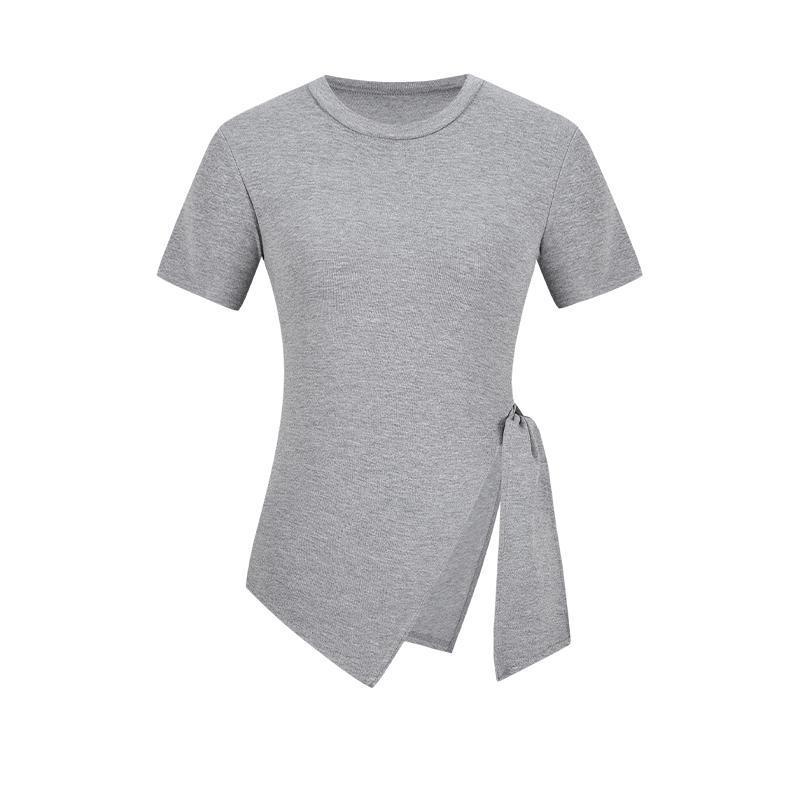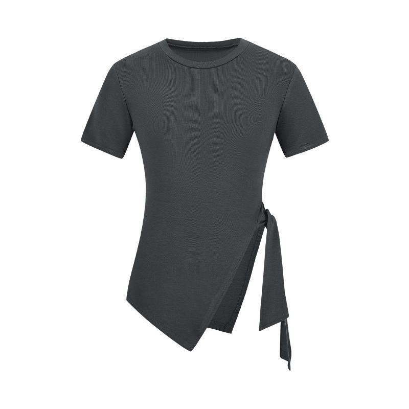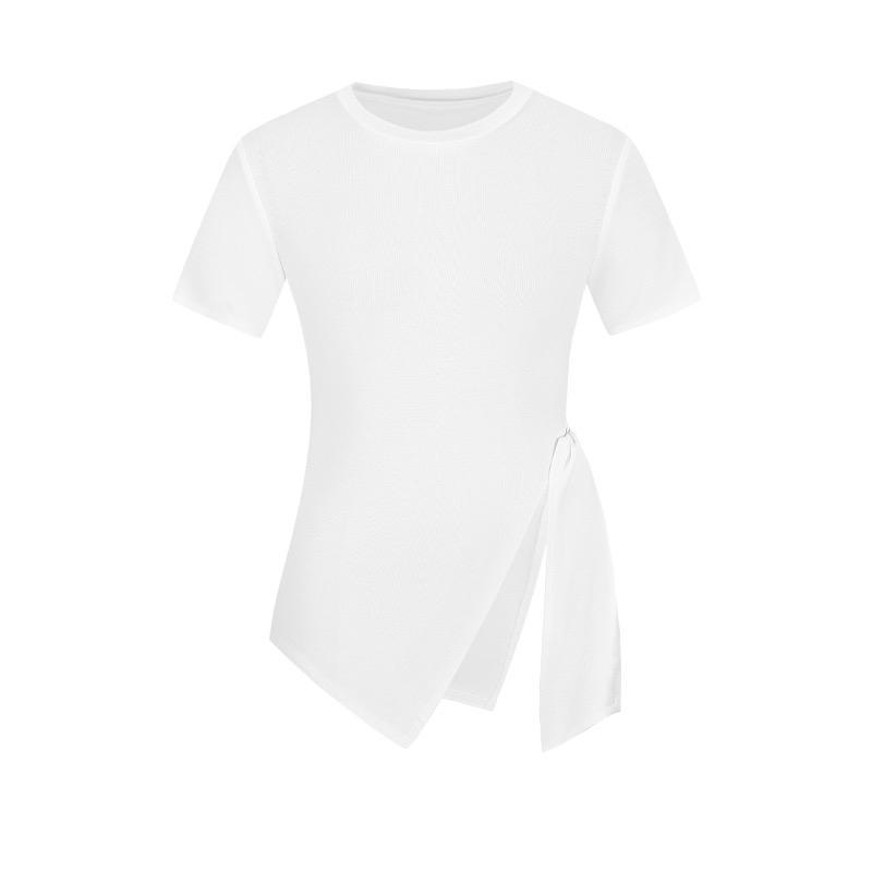 디자인 센스 스트랩 허리 레이스 라운드 넥 긴 소매 어깨 슬리밍 탑 화이트 2025스토어 가기