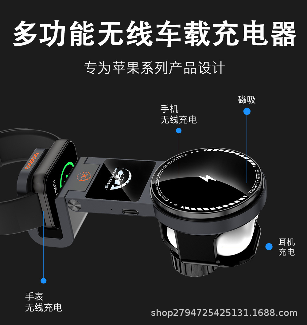 3 대 1 무선 충전 자동차 휴대 전화 브래킷 애플 시계 헤드셋 휴대 전화 자석 브래킷 재고 공급스토어 가기