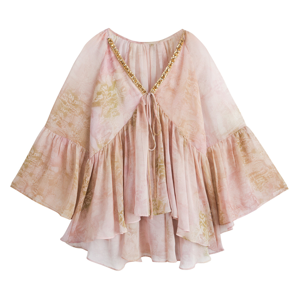 袖口从肘部开衫呈现喇叭状绽放