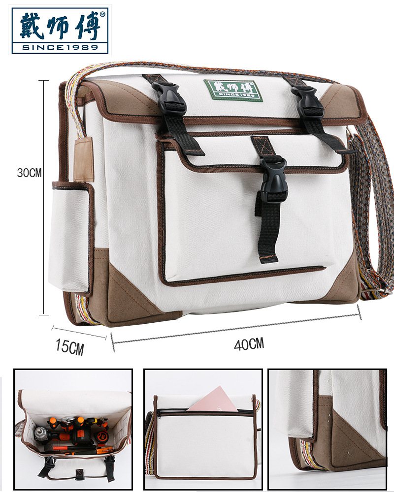 M & 전기 캔버스 가방 다기능 유지 보수 및 설치 전기 가방 하드웨어 도구 내마모성 두꺼운 어깨 크로스 바디
