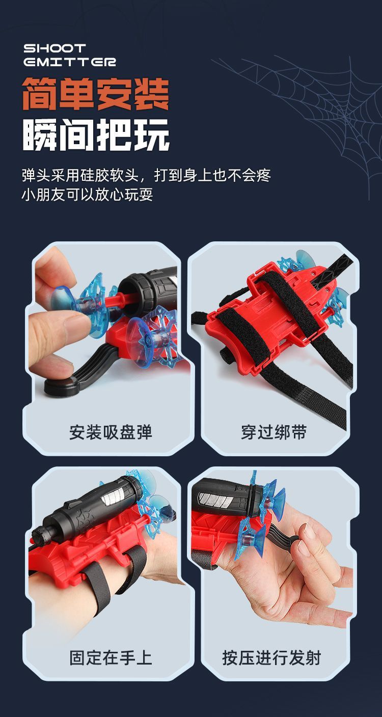 국경 간 거미 빨판 토이 영웅 손목 발사기 실크 거미 발사기 스티커 벽 부드러운 총알 총스토어 가기