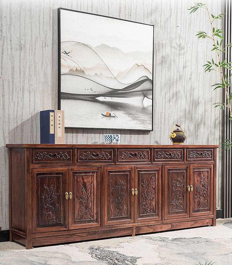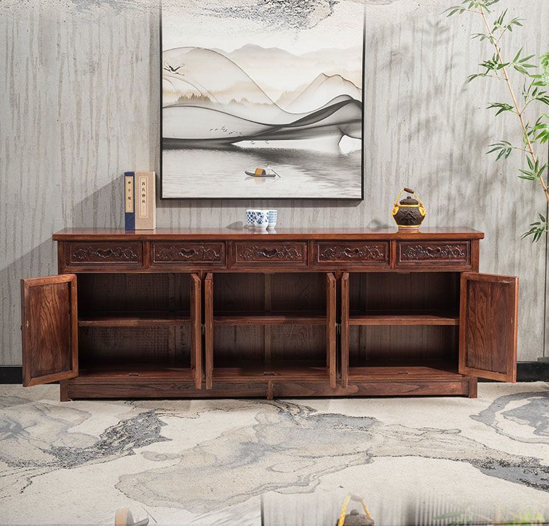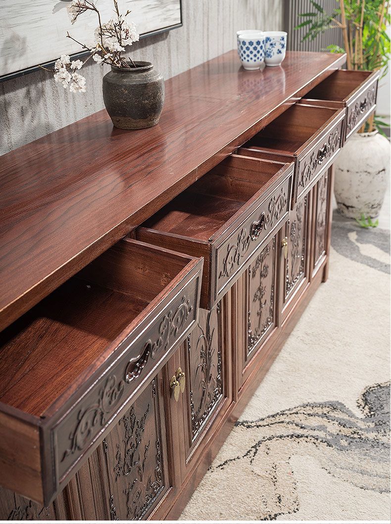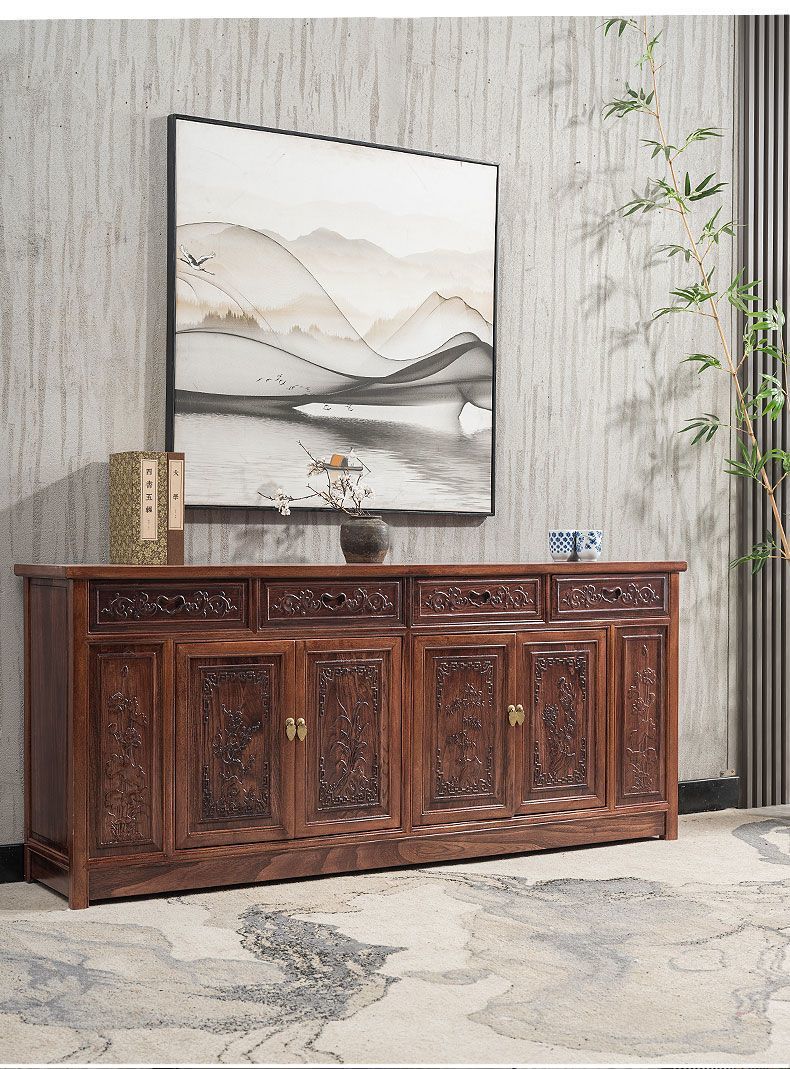 단단한 나무 사이드 보드 중국 저장 캐비닛 거실 주방 다기능 차 캐비닛 입구 캐비닛 통합 벽 가구