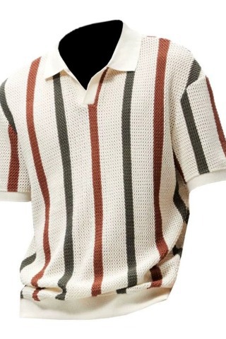 2025 년 봄과 여름 매일 새로운 간단한 대비 컬러 스트라이프 렐 반팔 니트 탑 캐주얼 루즈 플러스 사이즈 티셔츠