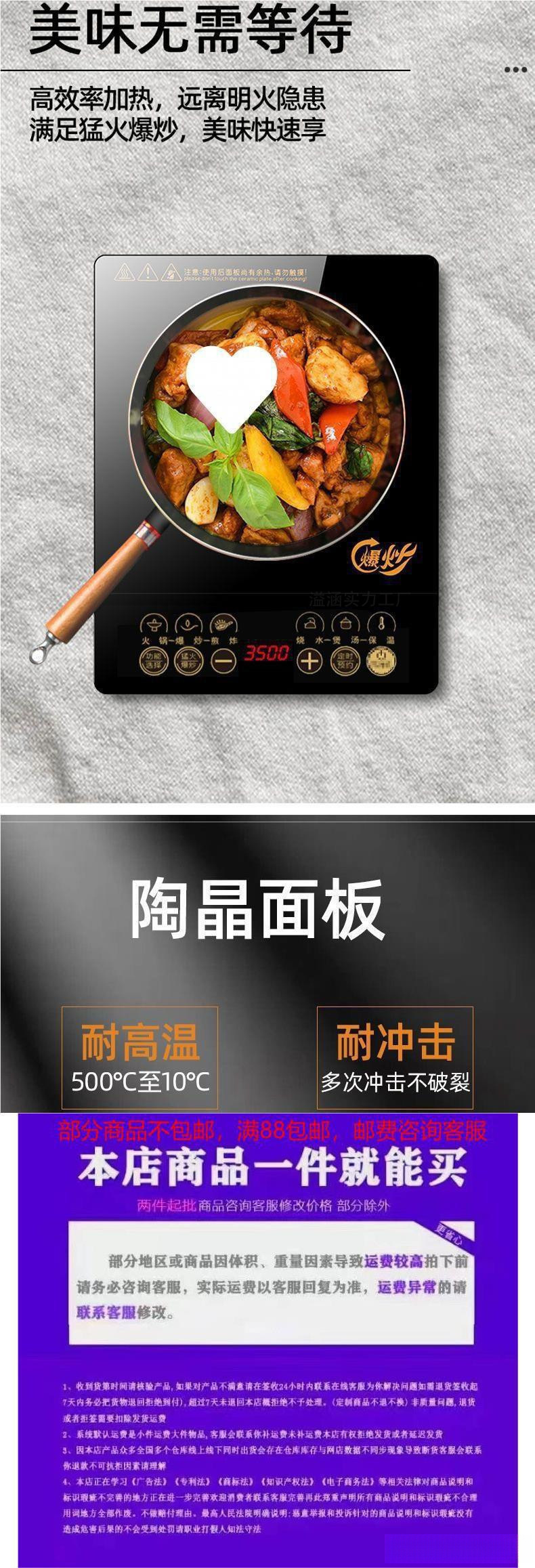 유도 쿠커 가정용 3500W 고출력 볶음 방수 벨트 냄비 다기능 전기 볶음 스토브 새로운 주방 1 세트스토어 가기
