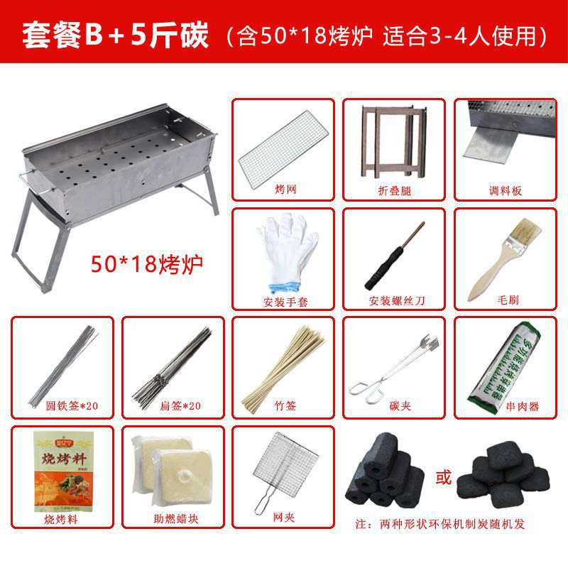 바베큐 그릴 바베큐 랙 가정용 야외 숯 바베큐 접히는 전체 세트 숯 대형 스몰 사이즈 필드 도구 Xiliang스토어 가기
