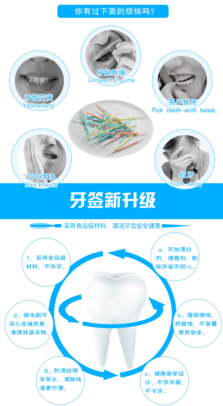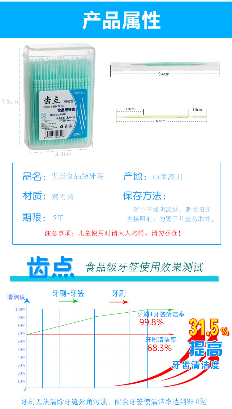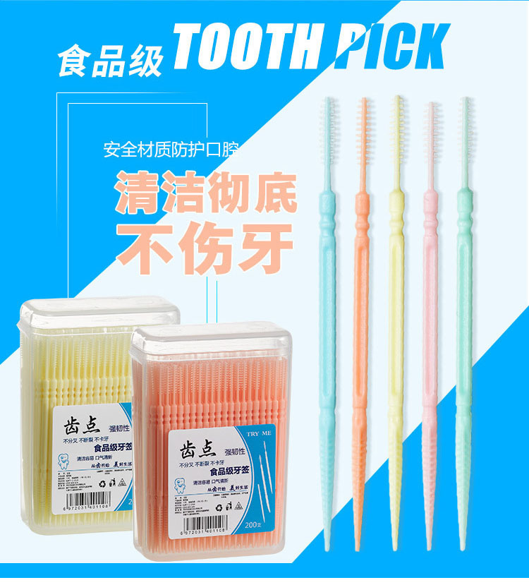 공장 도매 이쑤시개 브러시 200 박스 플라스틱 이쑤시개 일회용 가정용 벌크 이쑤시개 브러시 이쑤시개 라인스토어 가기