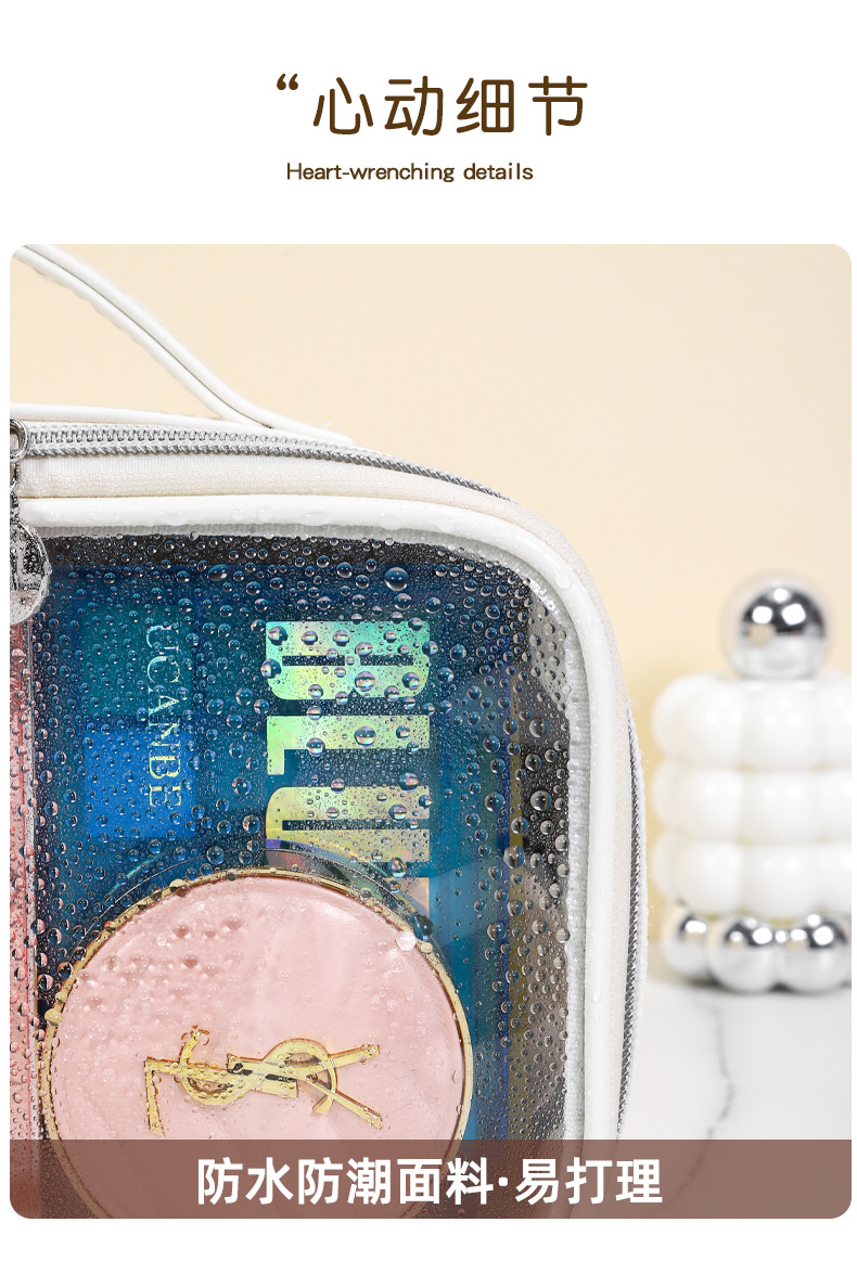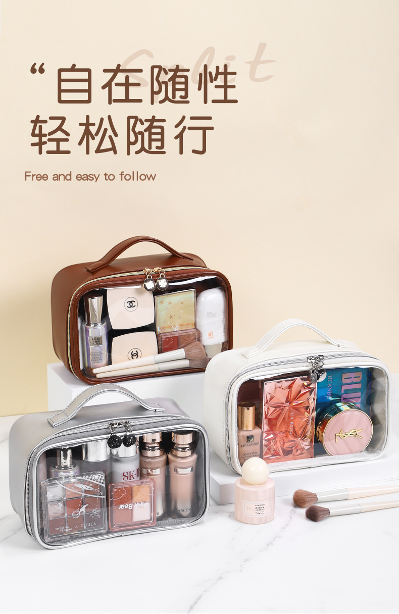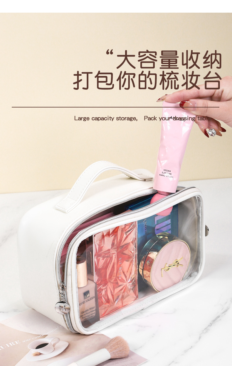 투명 PVC 세면도구 가방, 대용량, 두꺼운 방수, 투명한 휴대용 여행용 다용도 화장품 수납 가방