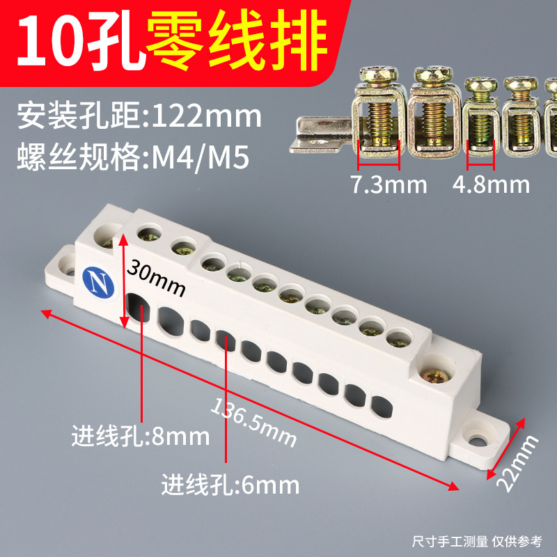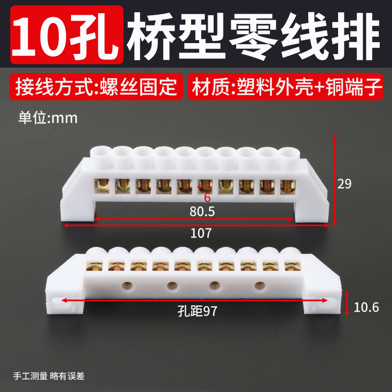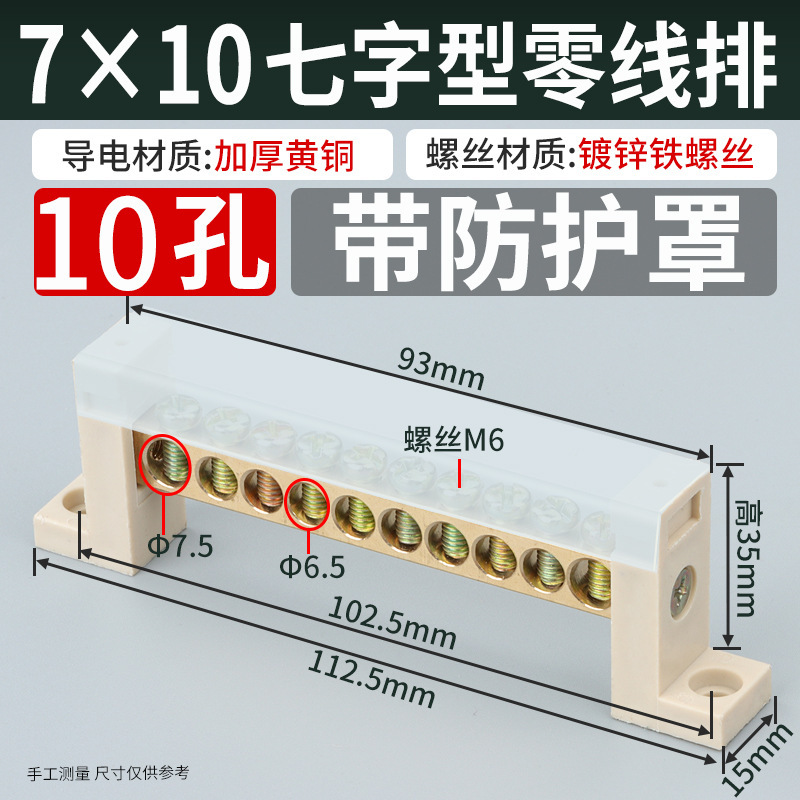 브리지형 제로 라인 스트립 10홀 제로 접지 스트립 접지 구리 스트립 6*9 10홀 배전함 제로 배선 단자 Metabo스토어 가기