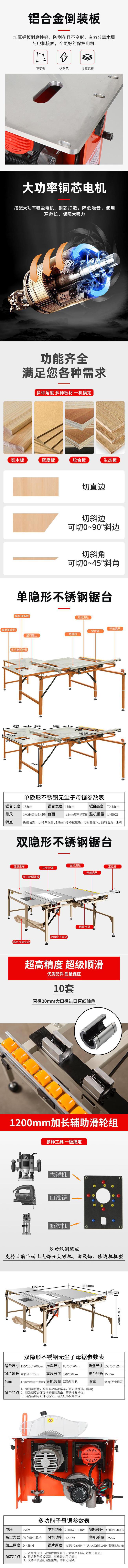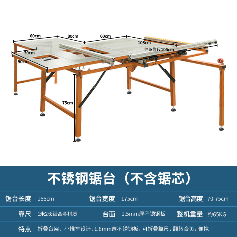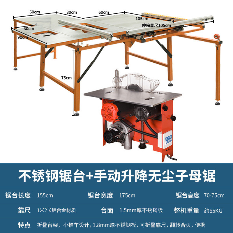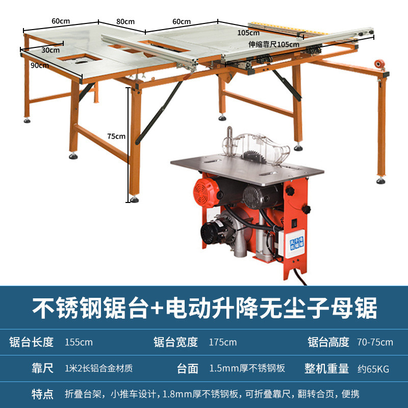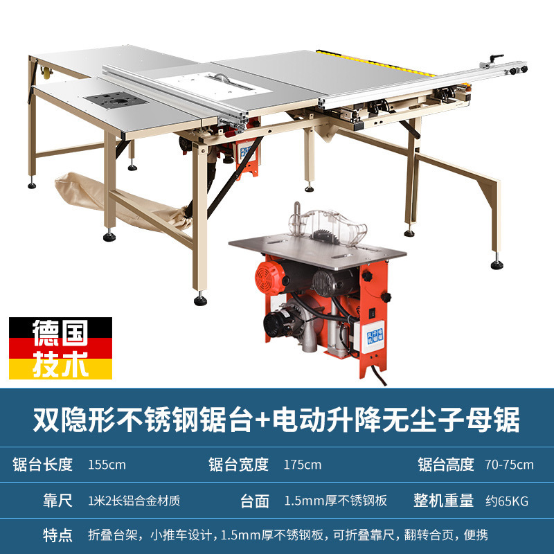 • 독일 모델: 이중 보이지 않는 스테인레스 스틸 톱 테이블 + 전기 리프팅 톱/고출력