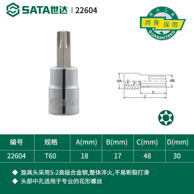 SATA Shida 도구 10MM 시리즈 50MM 긴 중간 구멍 꽃 모양의 나사 소매