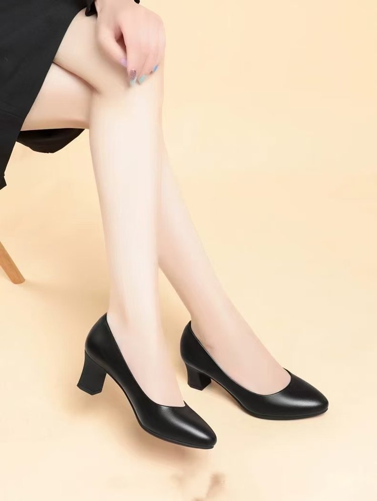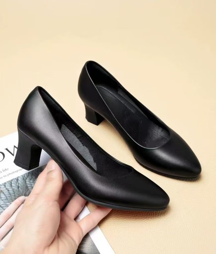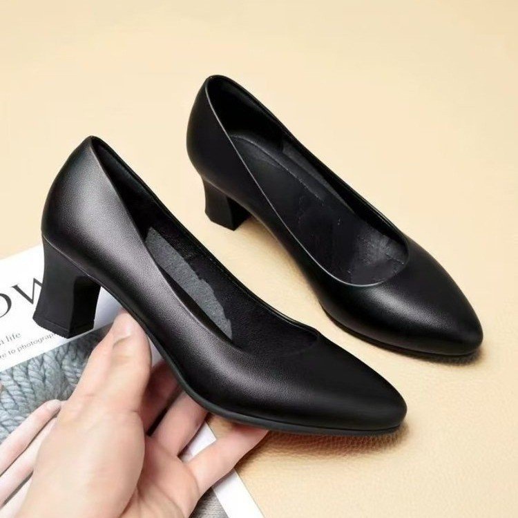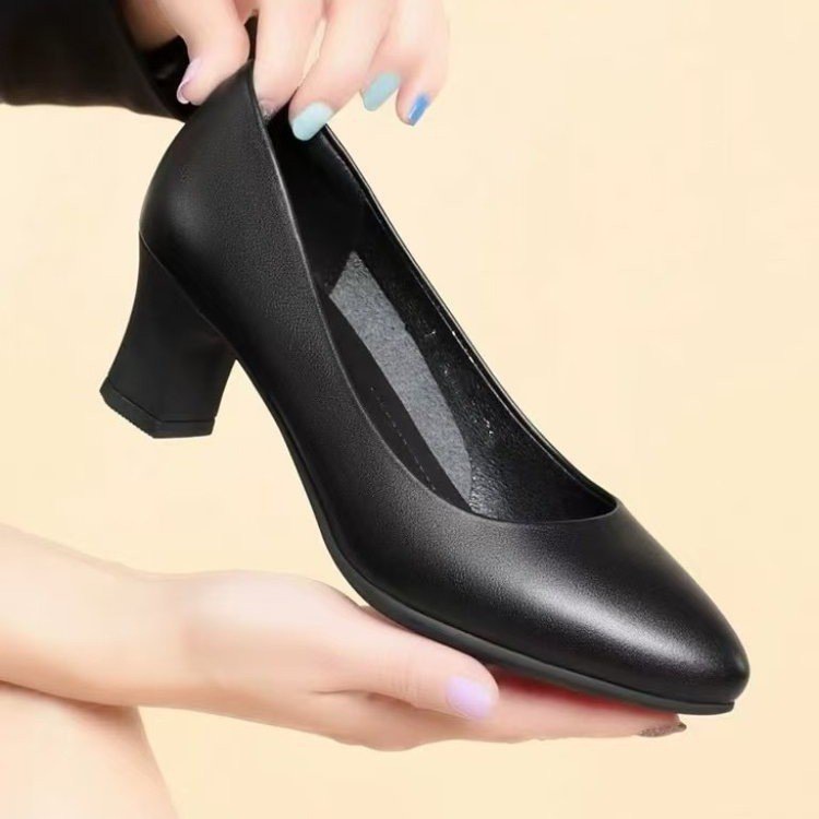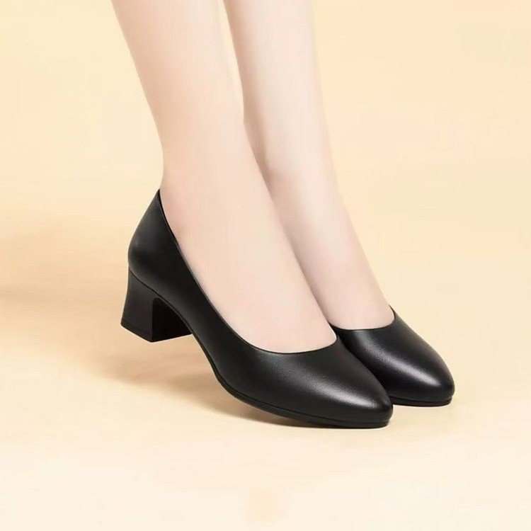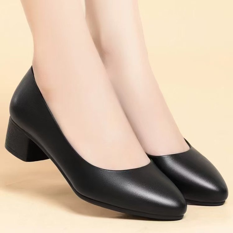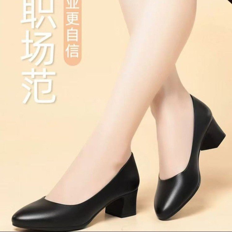 봄 작업 신발 블랙 전문 여성 싱글 신발 여성의 낮은 굽 작은 가죽 신발 여성의 중간 굽 정장 원피스 낮은 굽 스튜어디스 여성스토어 가기