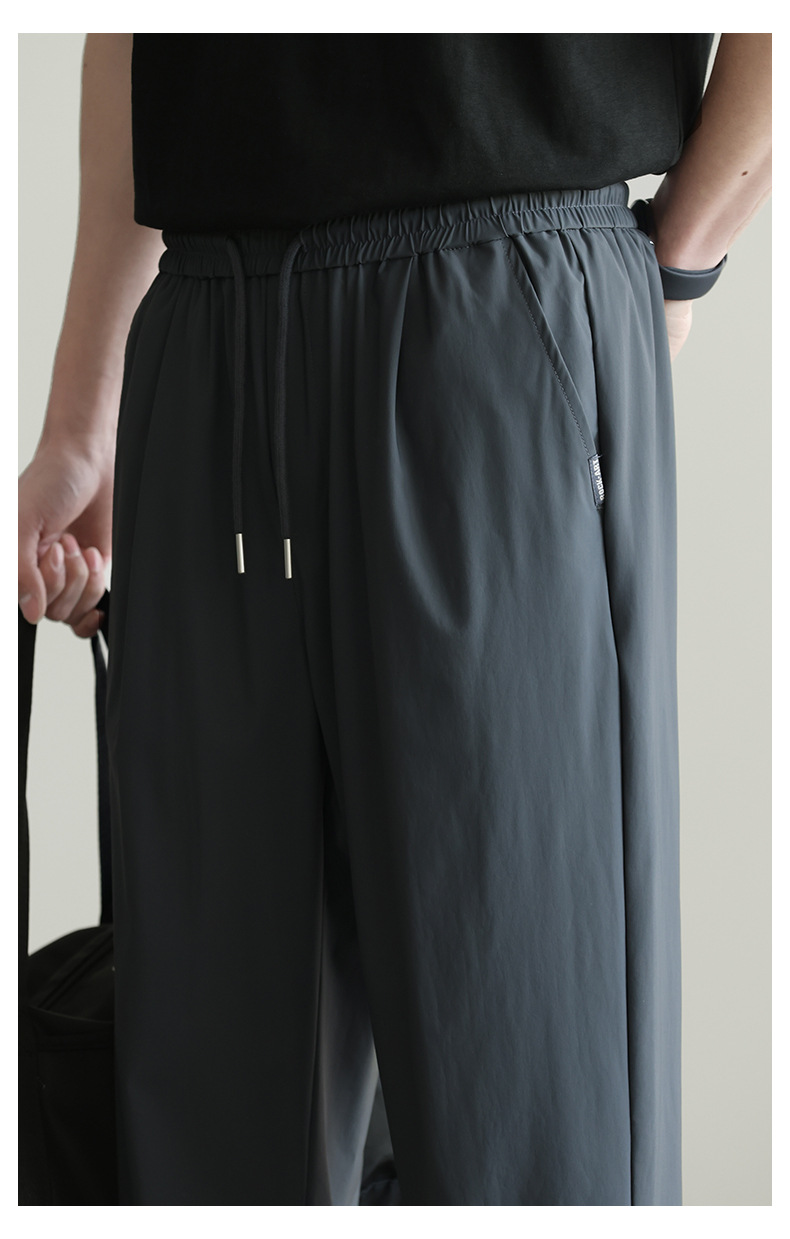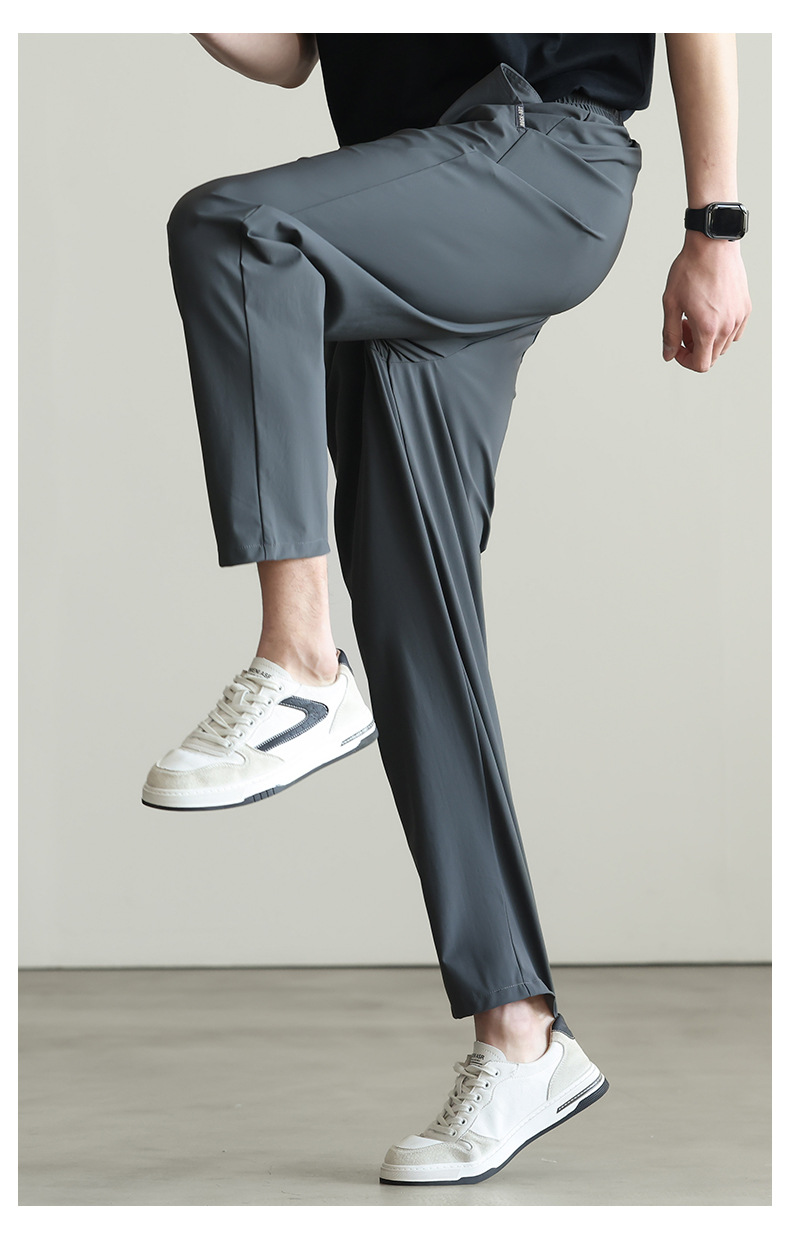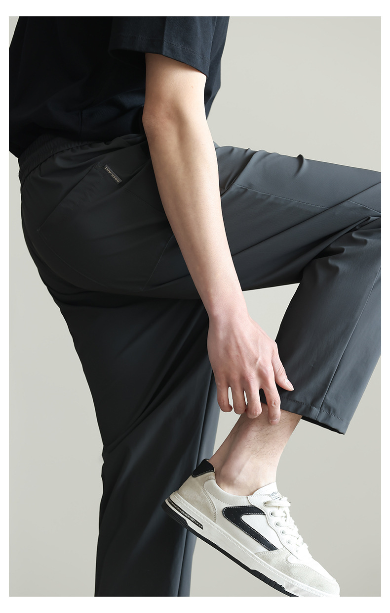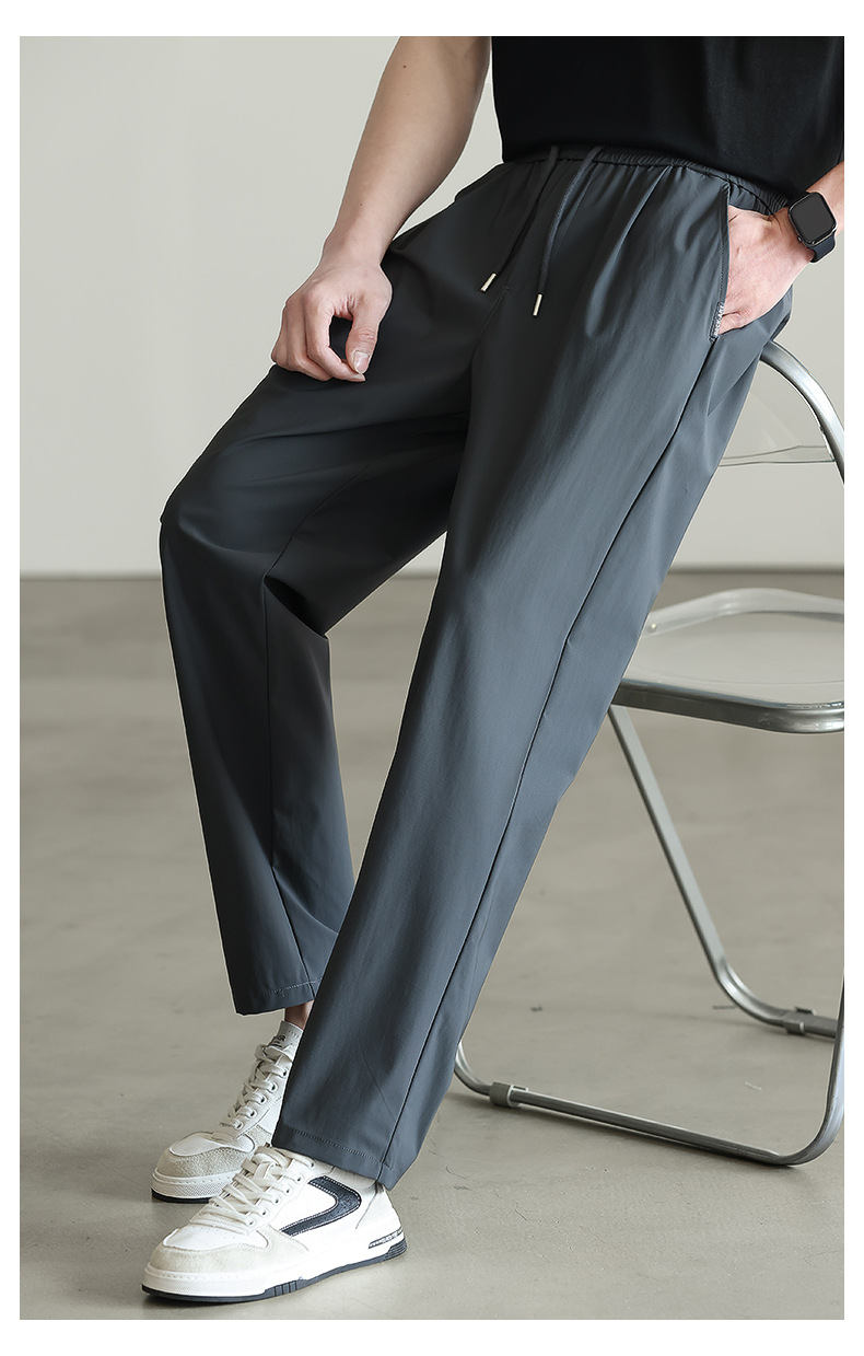 무 압력 시원한 느낌 얼음 실크 빠른 건조 캐주얼 바지 남성 2025 년 봄과 여름 스포츠 통기성 탄성 허리 얇은 자른 바지스토어 가기