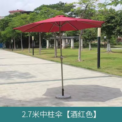 • 버건디 2.7m 싱글 탑 센터 컬럼 우산 + 대리석 베이스